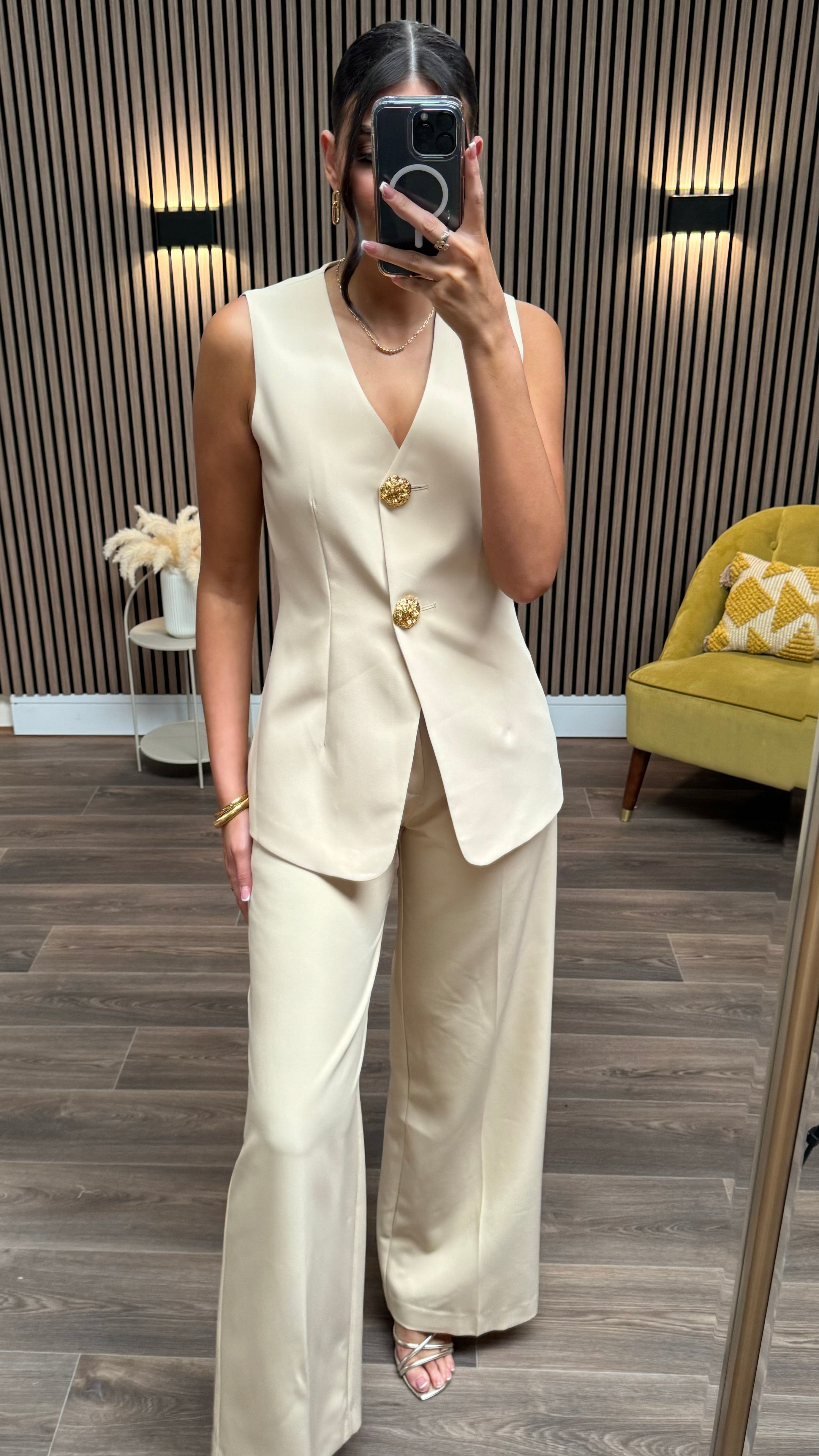 Shop the matching top: https://getthattrend.com/products/jordan-beige-fitted-longline-waistcoat