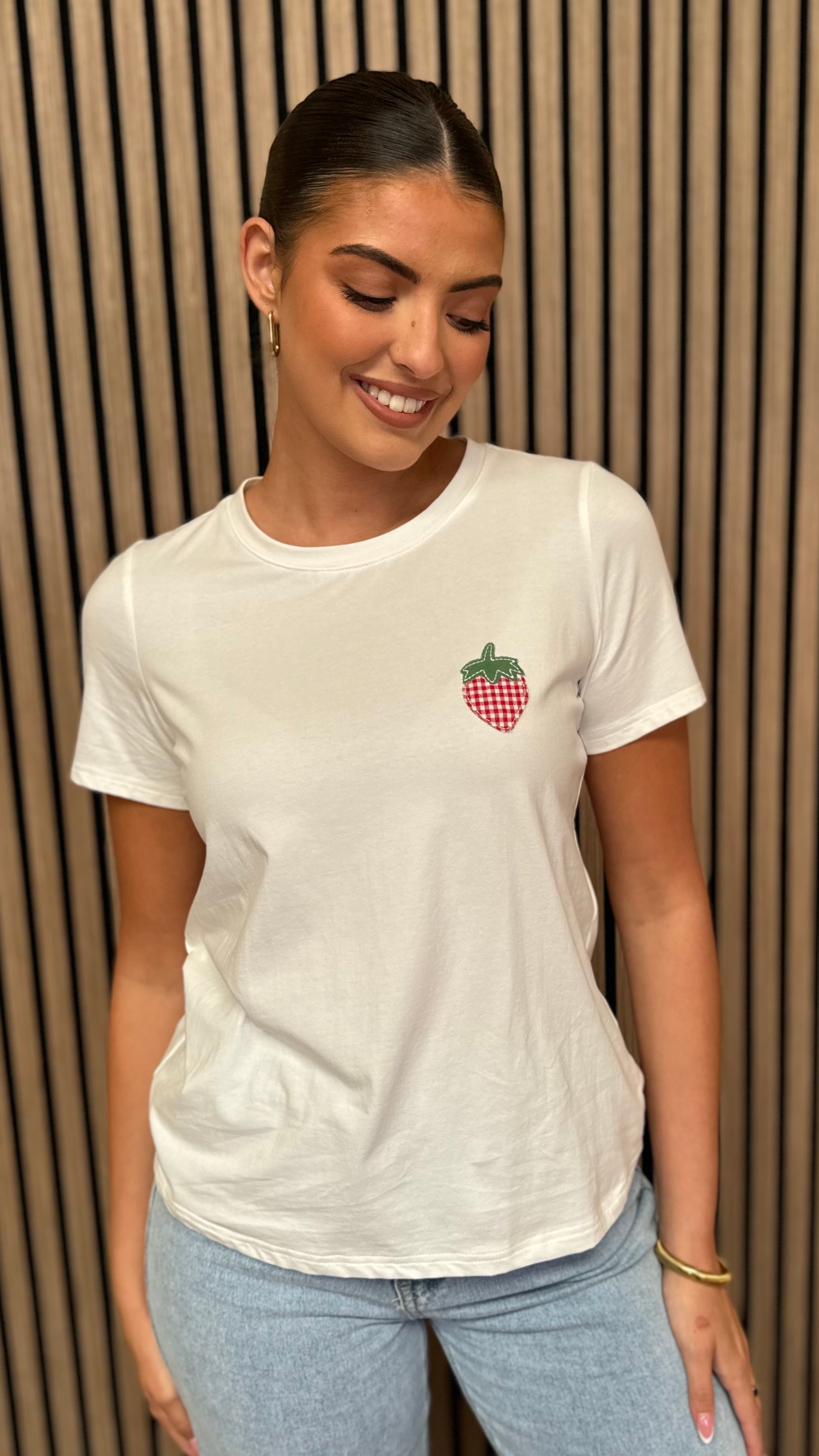 Autumn Beige Strawberry Detail T-Shirt