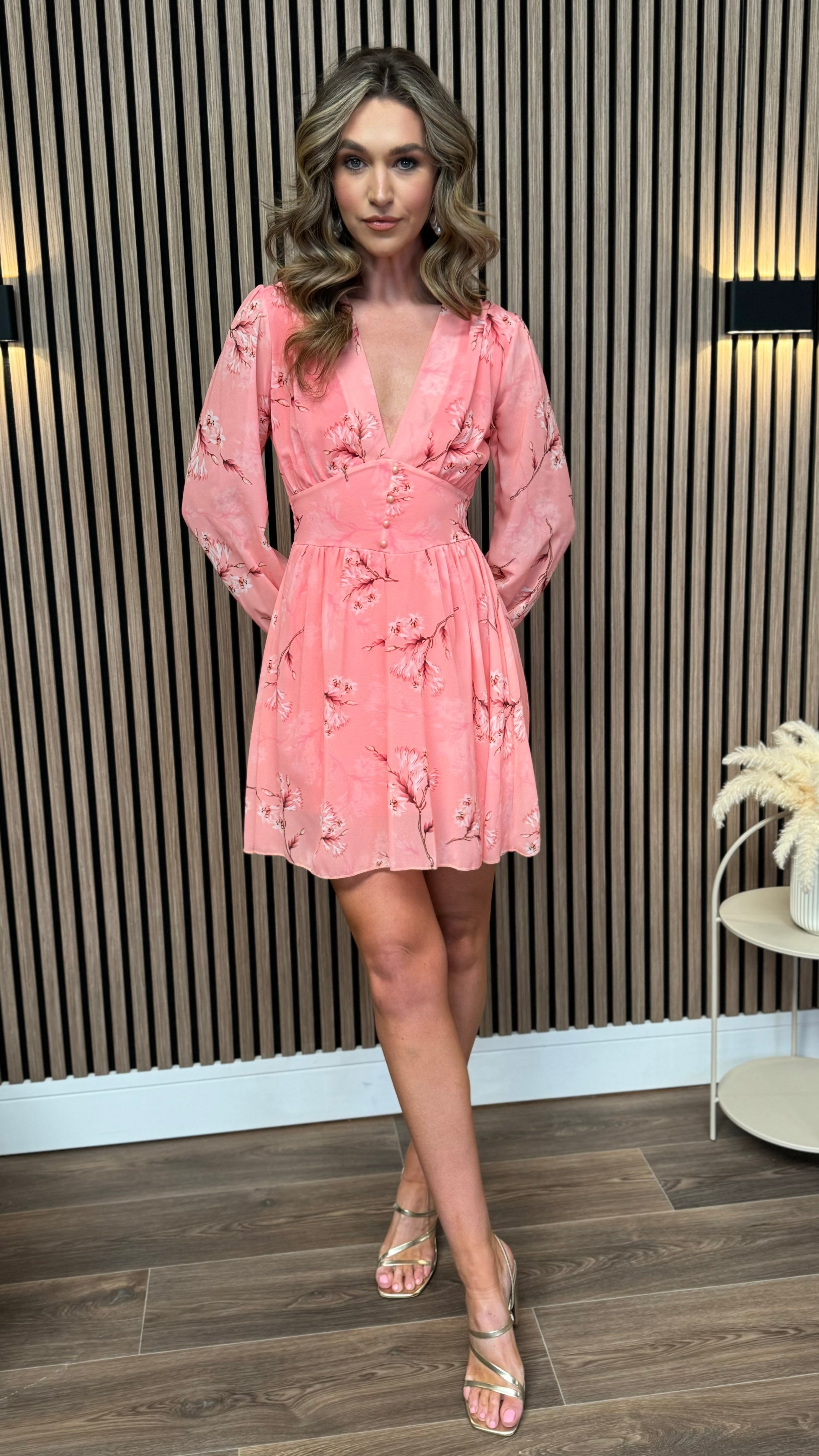 Brighten your day with the Aylin Peach Floral Printed Mini Dress! Bursting with vibrant peach hues and playful floral patterns, this dress is perfect for sunny outings and fun gatherings. Its flirty mini length adds a touch of charm, making every step feel light and lively. Get ready to turn heads and spread good vibes wherever you go! 🌸🧡✨