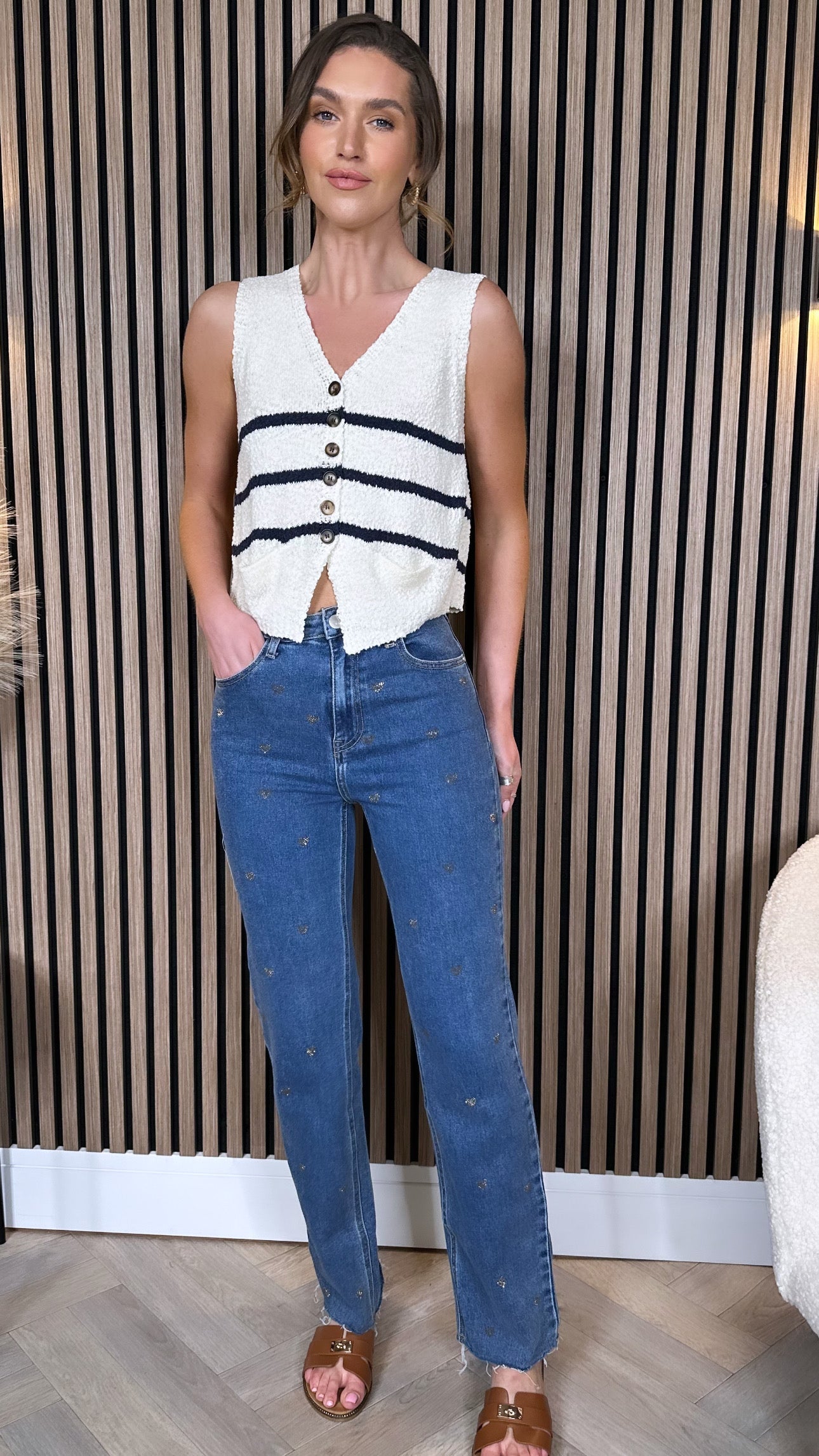 Bella Dark Blue Straight Fit Jeans With Hearts