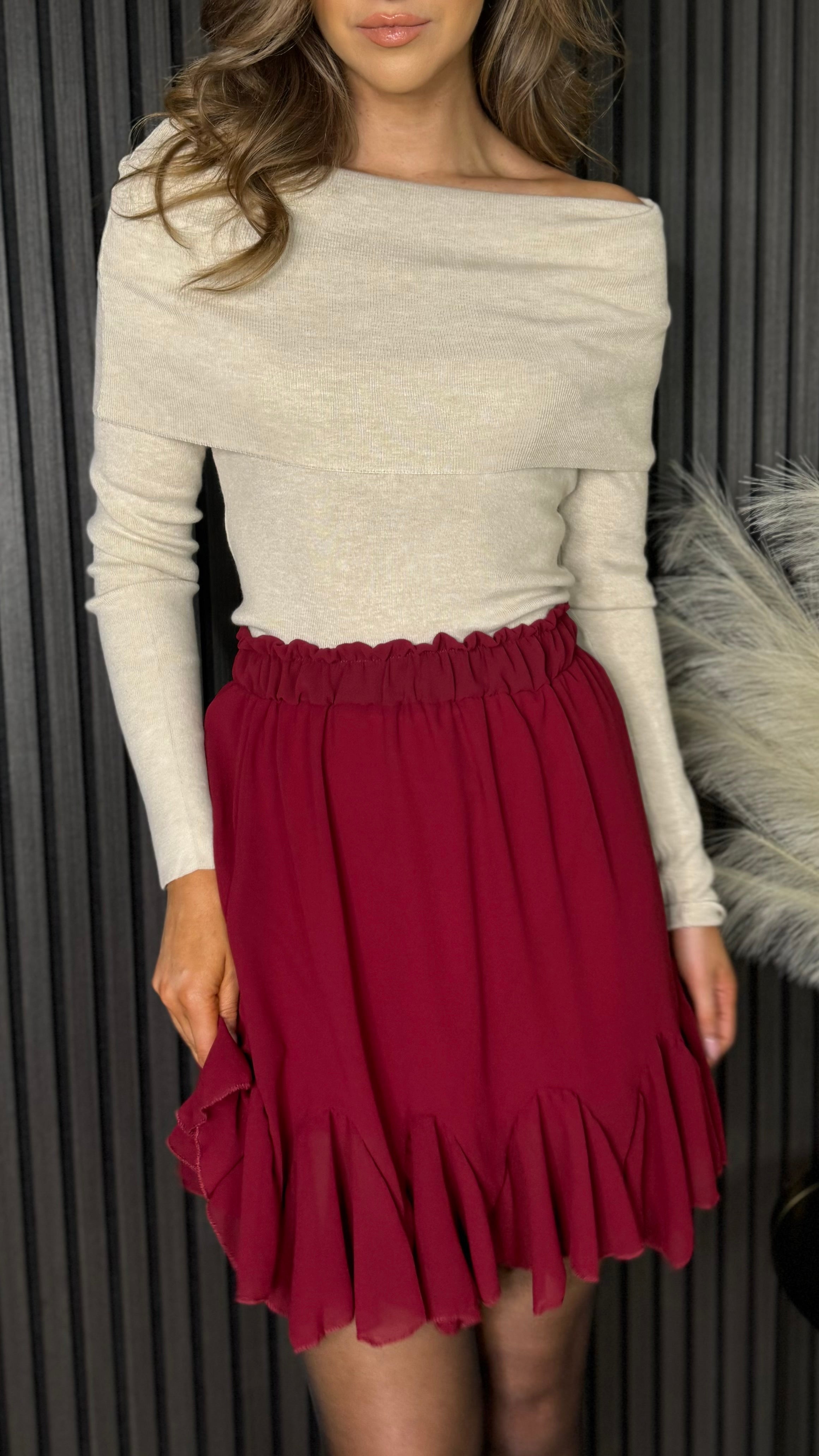 Get cozy and stylish with the Bianca Beige Soft Knit Bardot Jumper. This fine knit jumper boasts a unique Bardot folded neckline and long sleeves, perfect for showcasing your playful and stylish side. Say goodbye to boring sweaters and hello to this quirky and fun addition to your wardrobe.