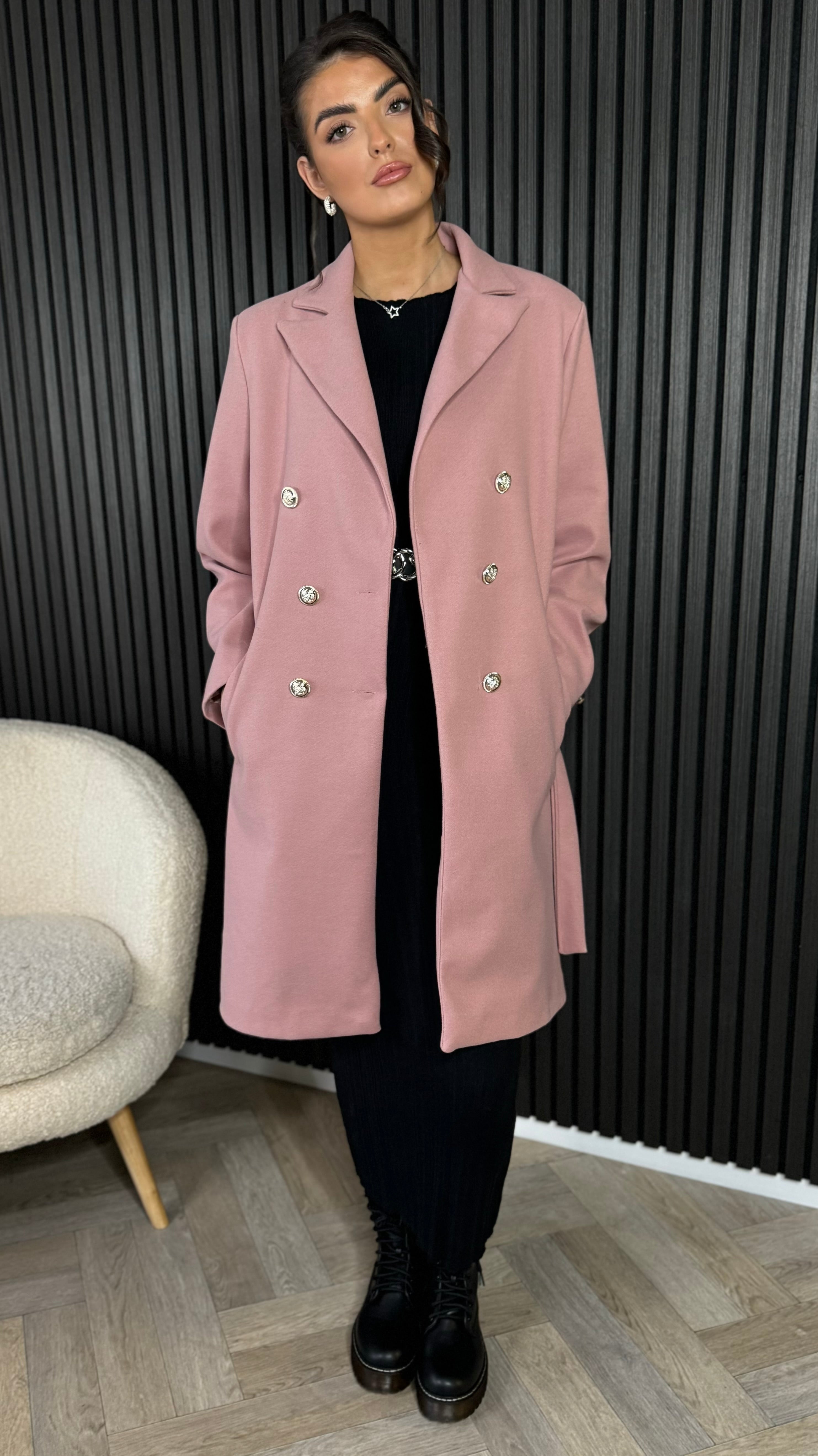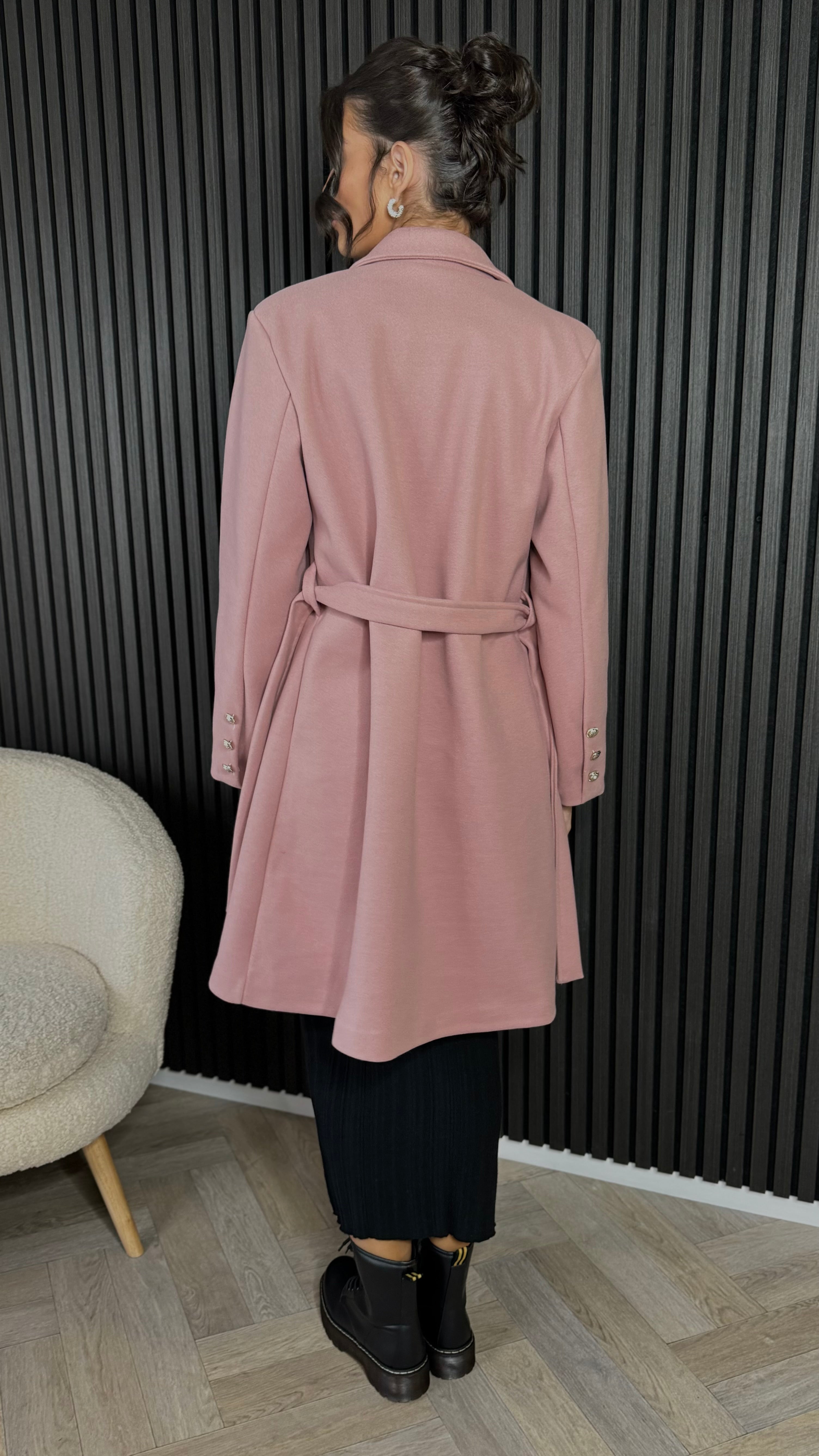 Bonne Rose Pink Belted Midi Coat