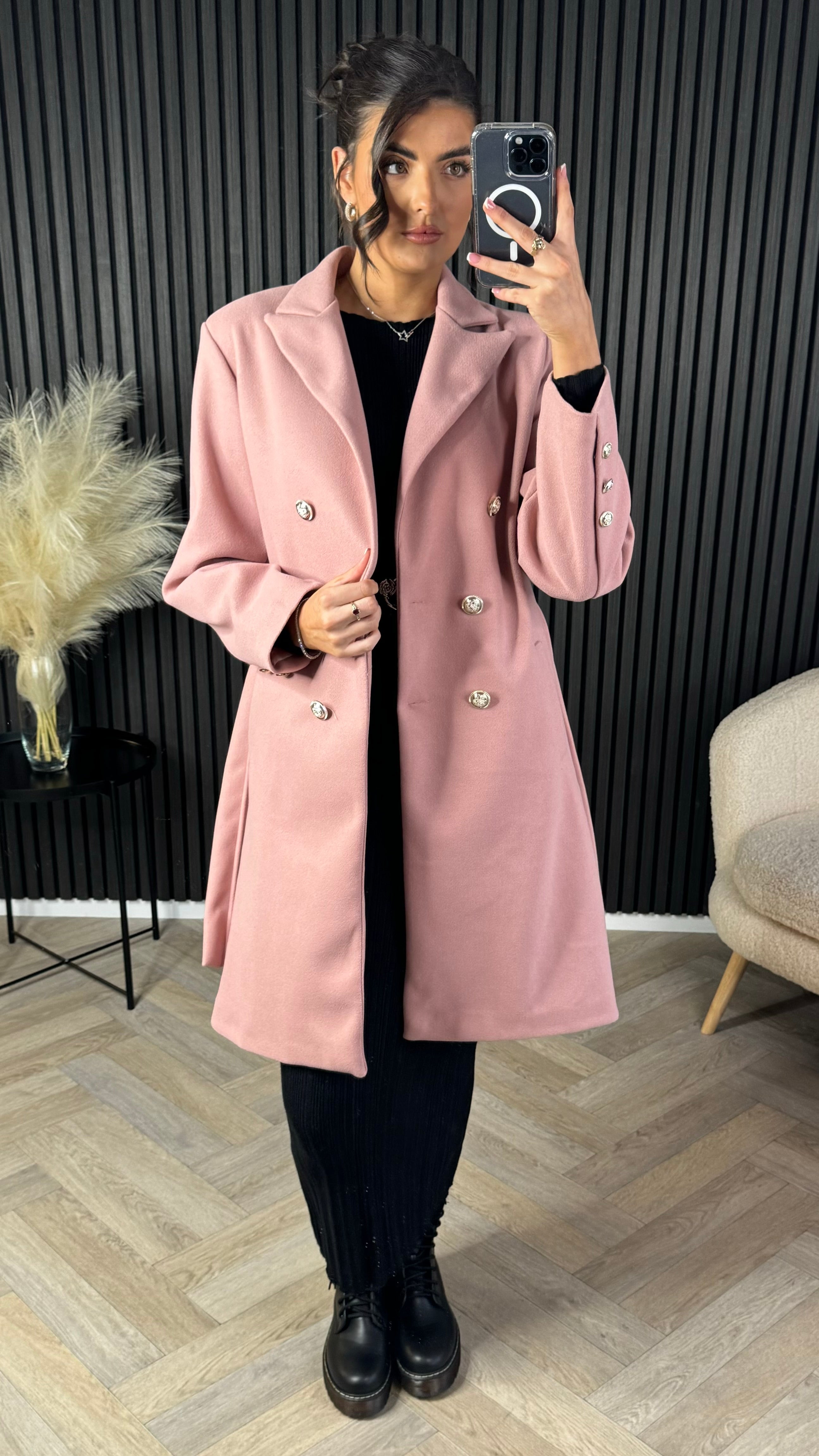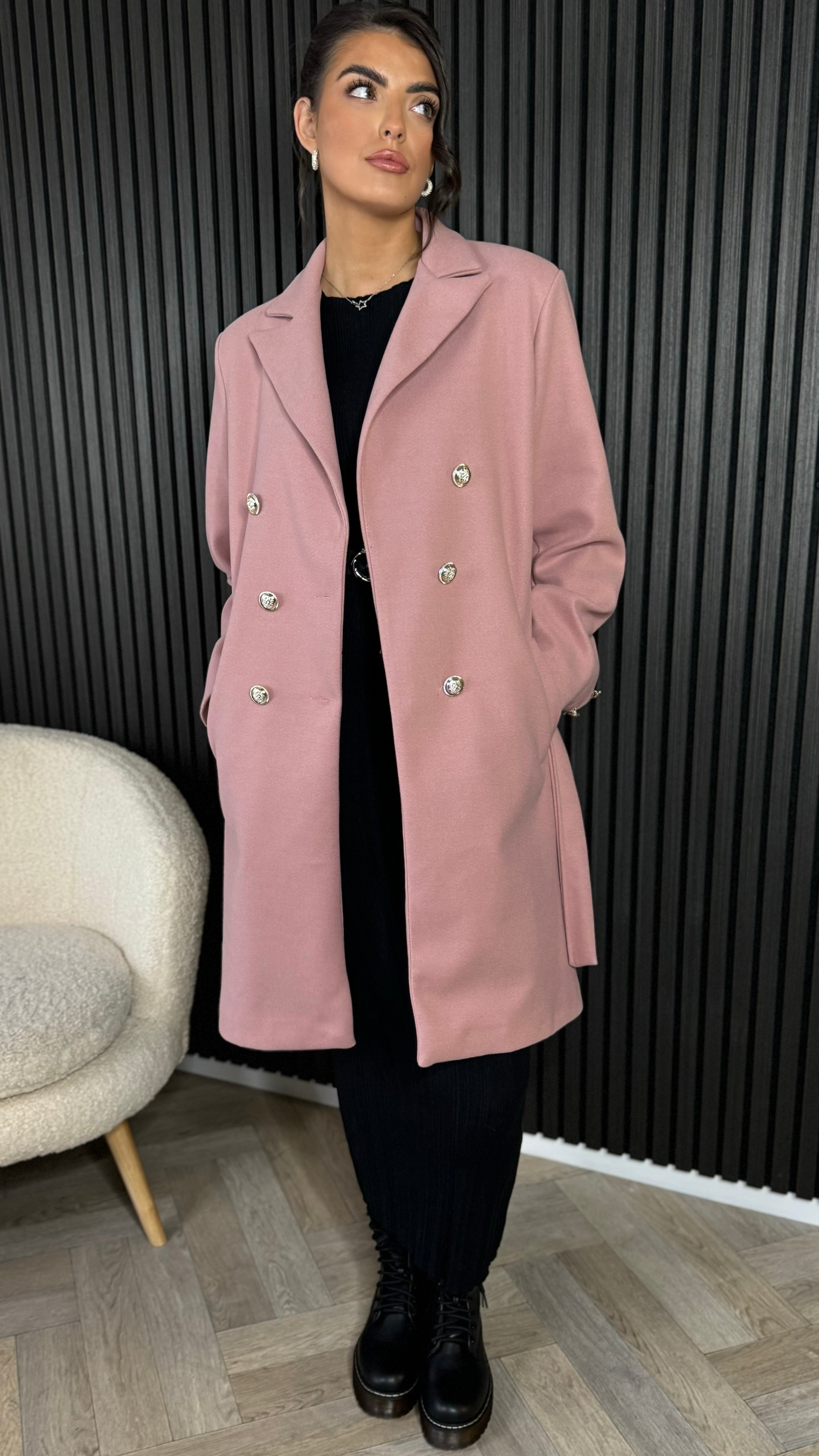 Wrap up in style with the Bonne Rose Pink Belted Midi Coat. This chic coat features a flattering belted waist, luxurious lining, and a classic collared neckline. Finished with elegant silver buttons, it's the perfect addition to any wardrobe. Stay warm and stylish all season long!