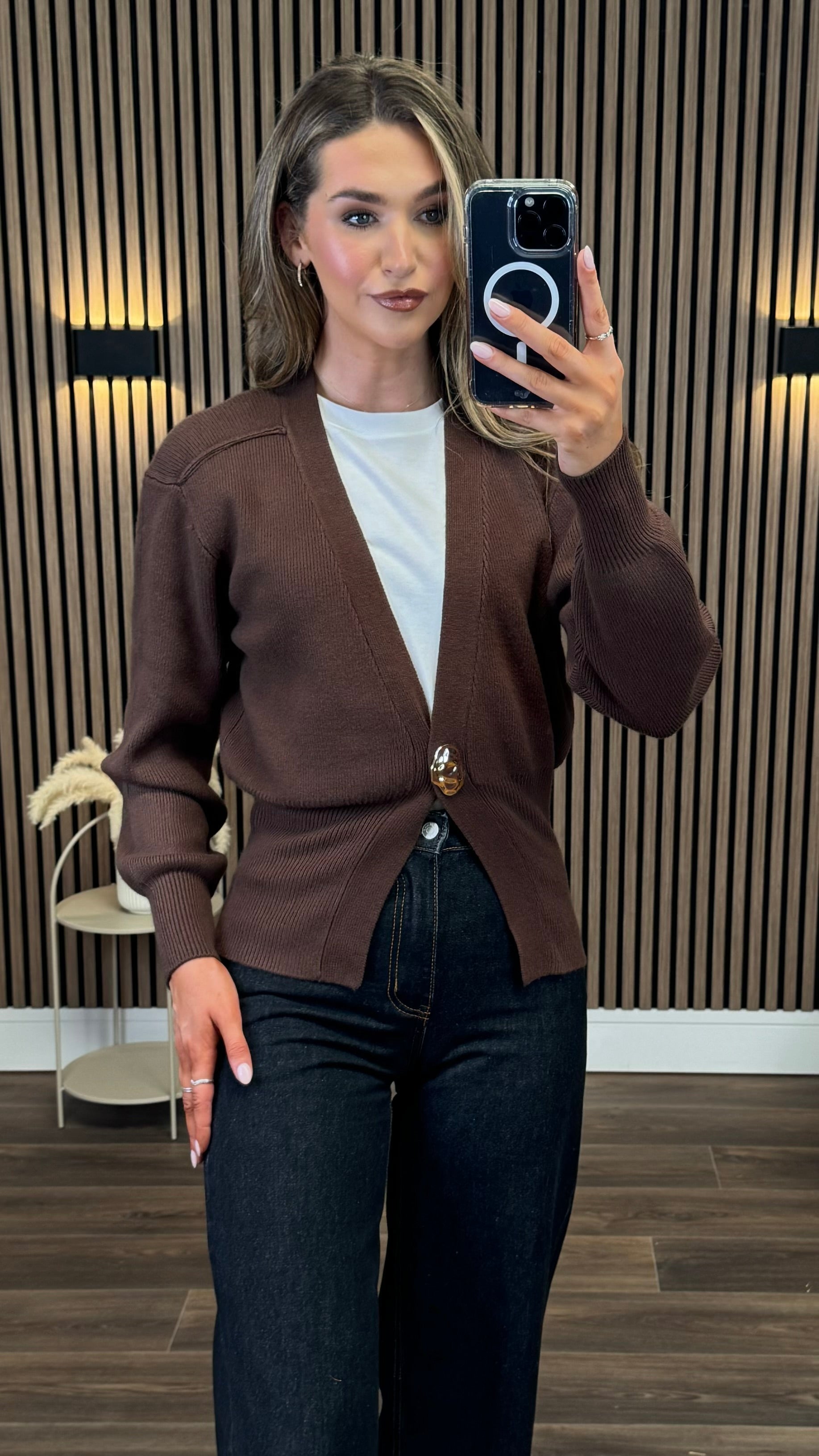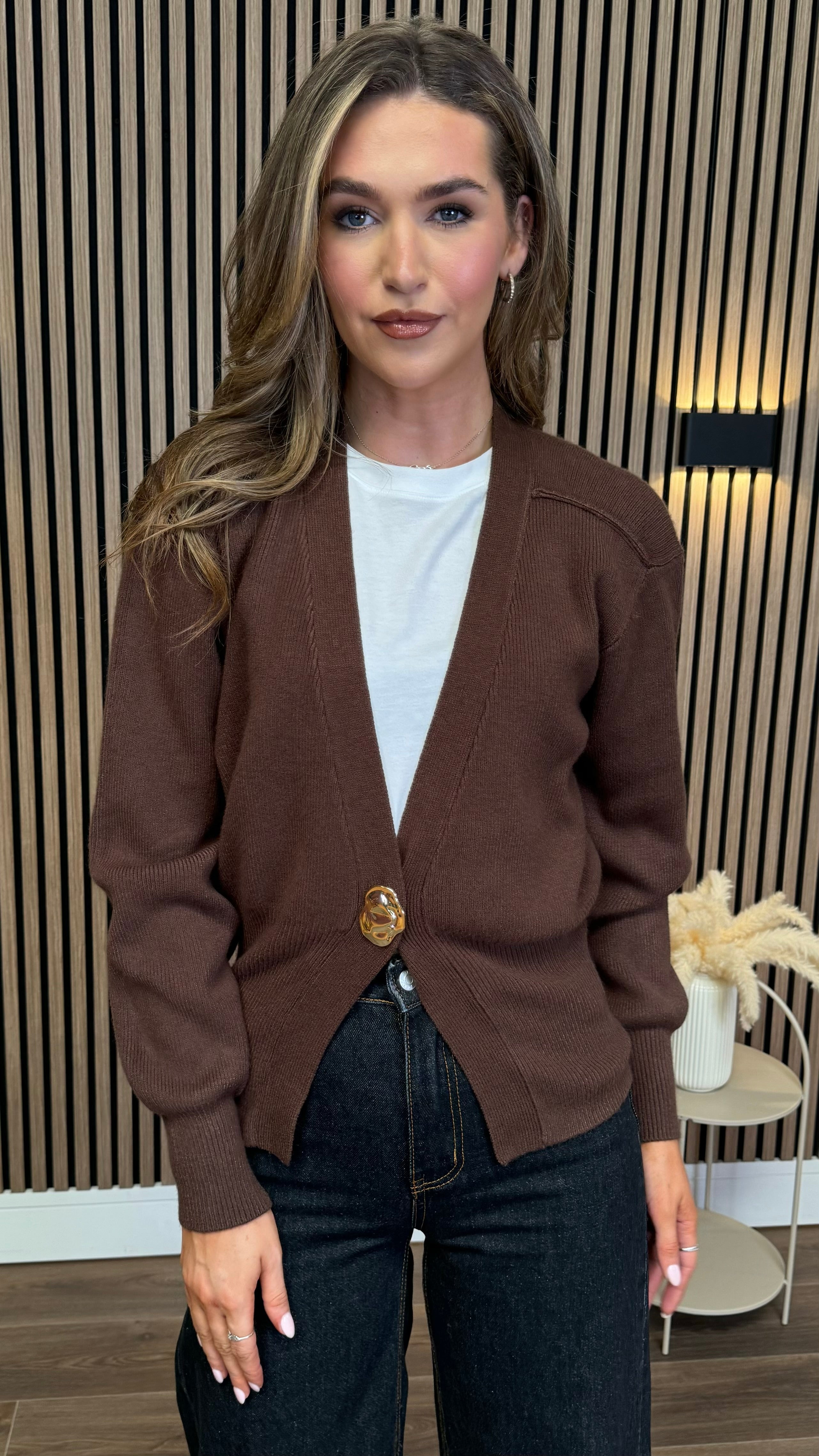 Brinley Brown Gold Button Cardigan