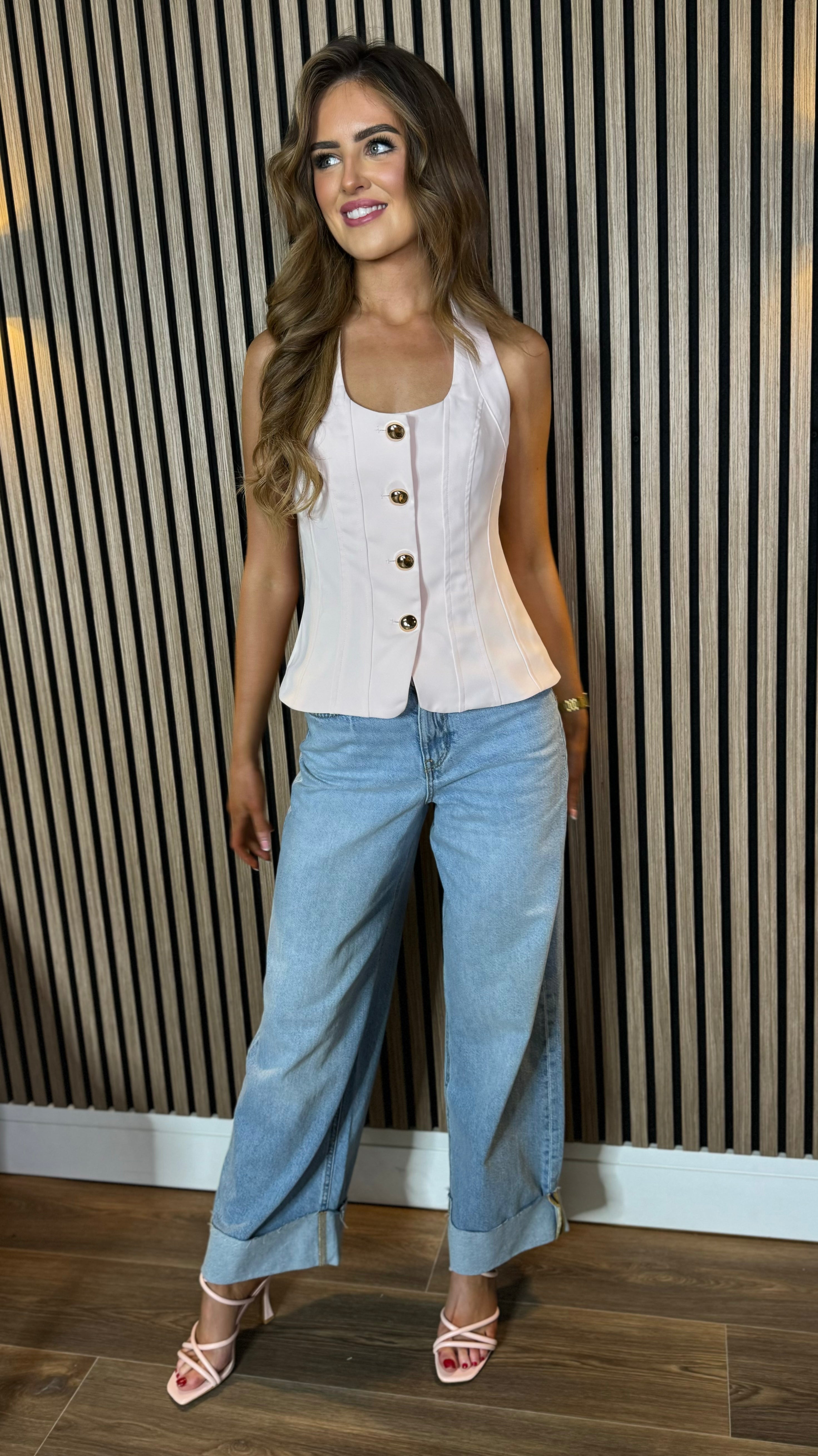 Be the ultimate fashionista with the Rowan Pink Halter Neck Button Down Waistcoat! This stylish waistcoat features a fitted design and a slight flared bottom for a flattering silhouette. Perfect for adding a pop of color to any outfit. 💁‍♀️🌸