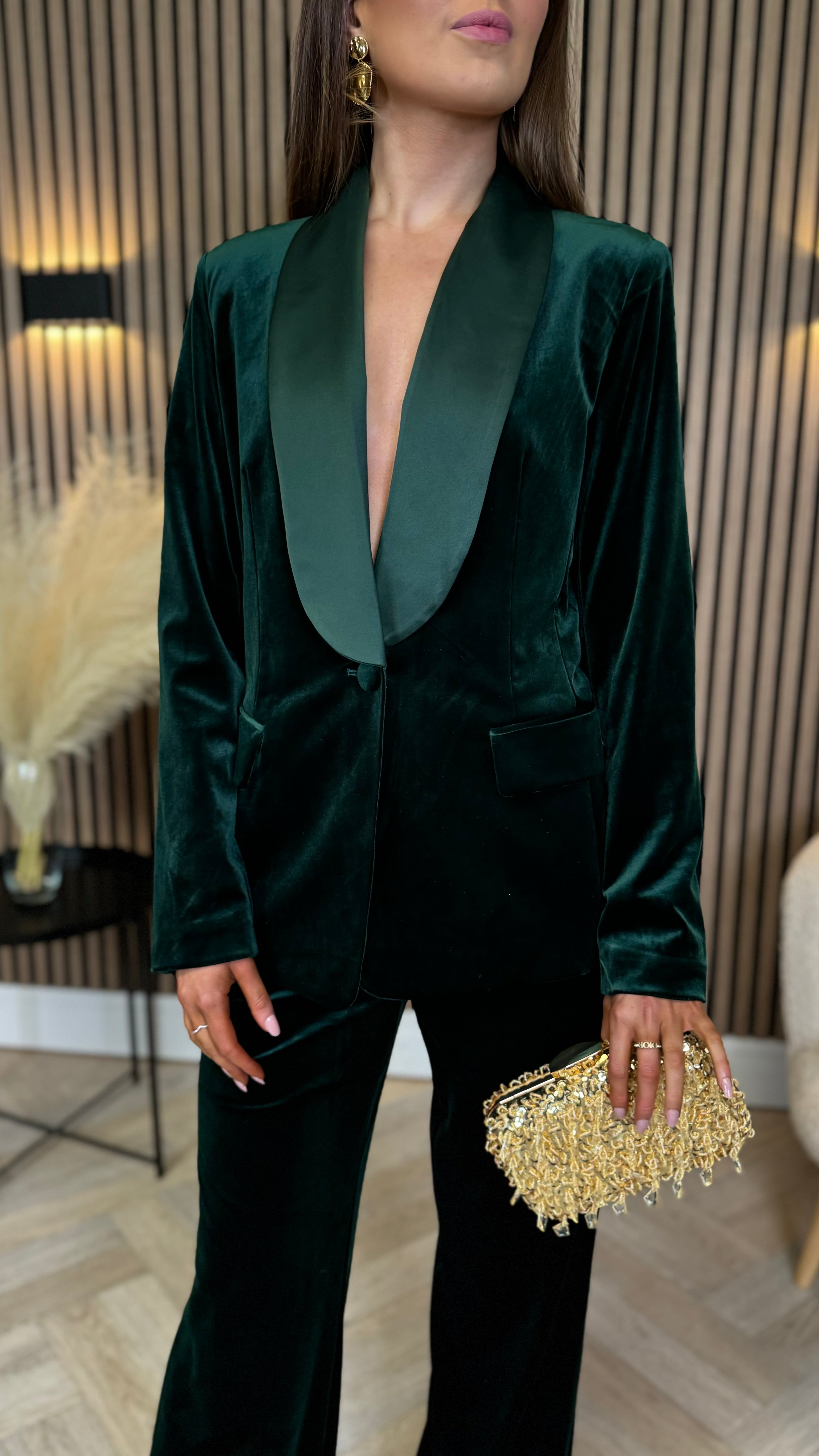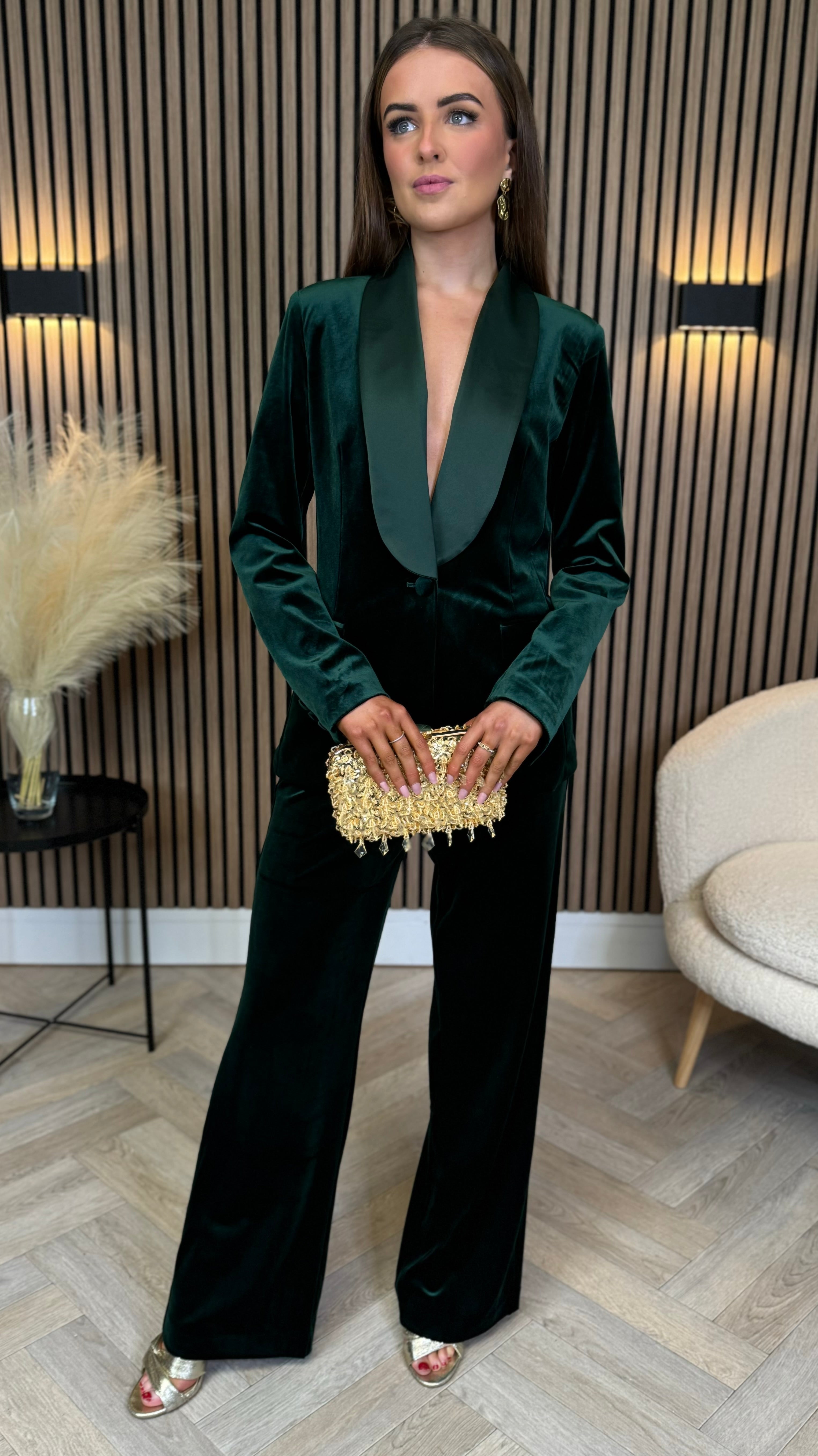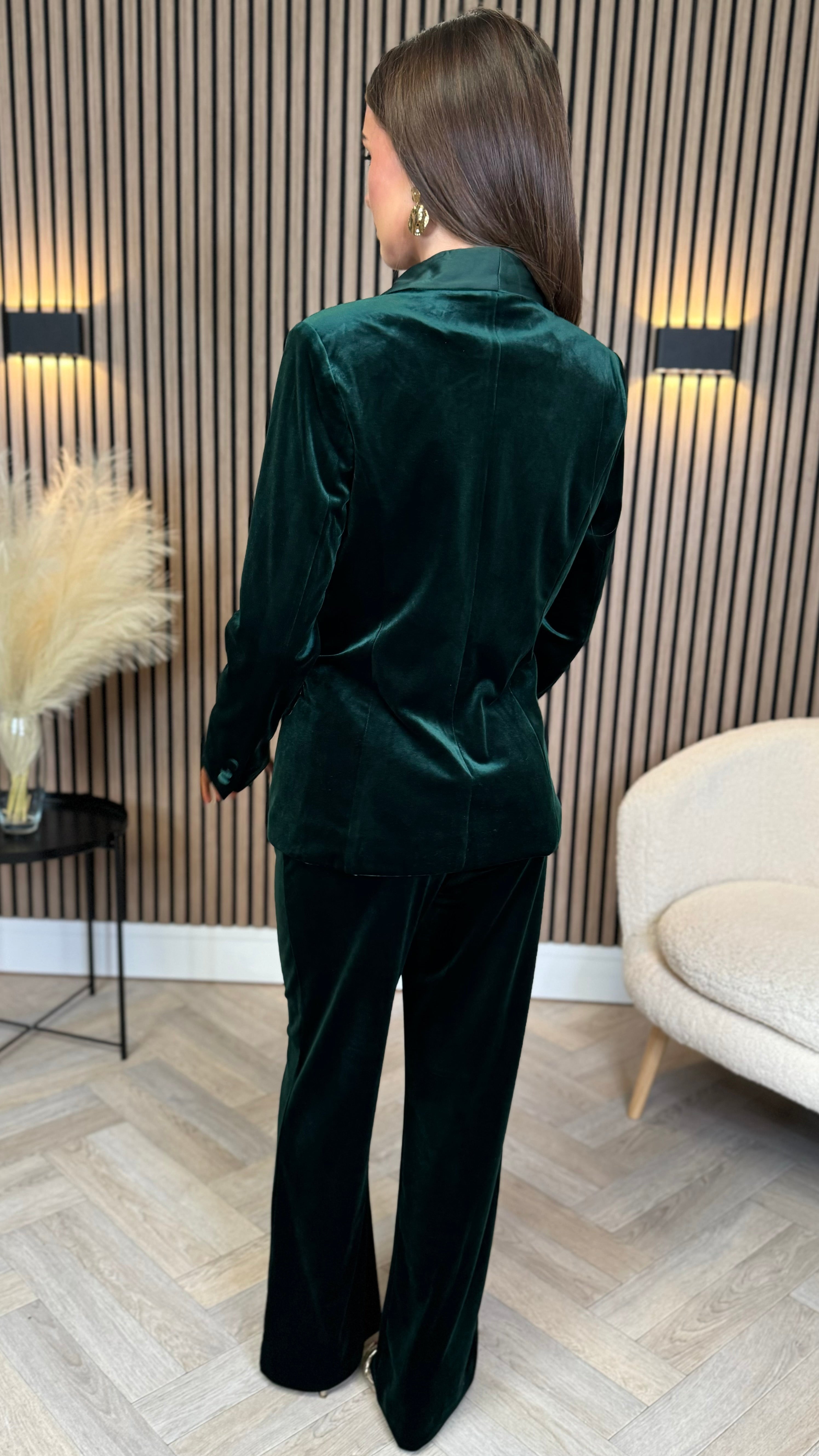 Carina Forest Green Velvet Trousers & Blazer Co-Ord