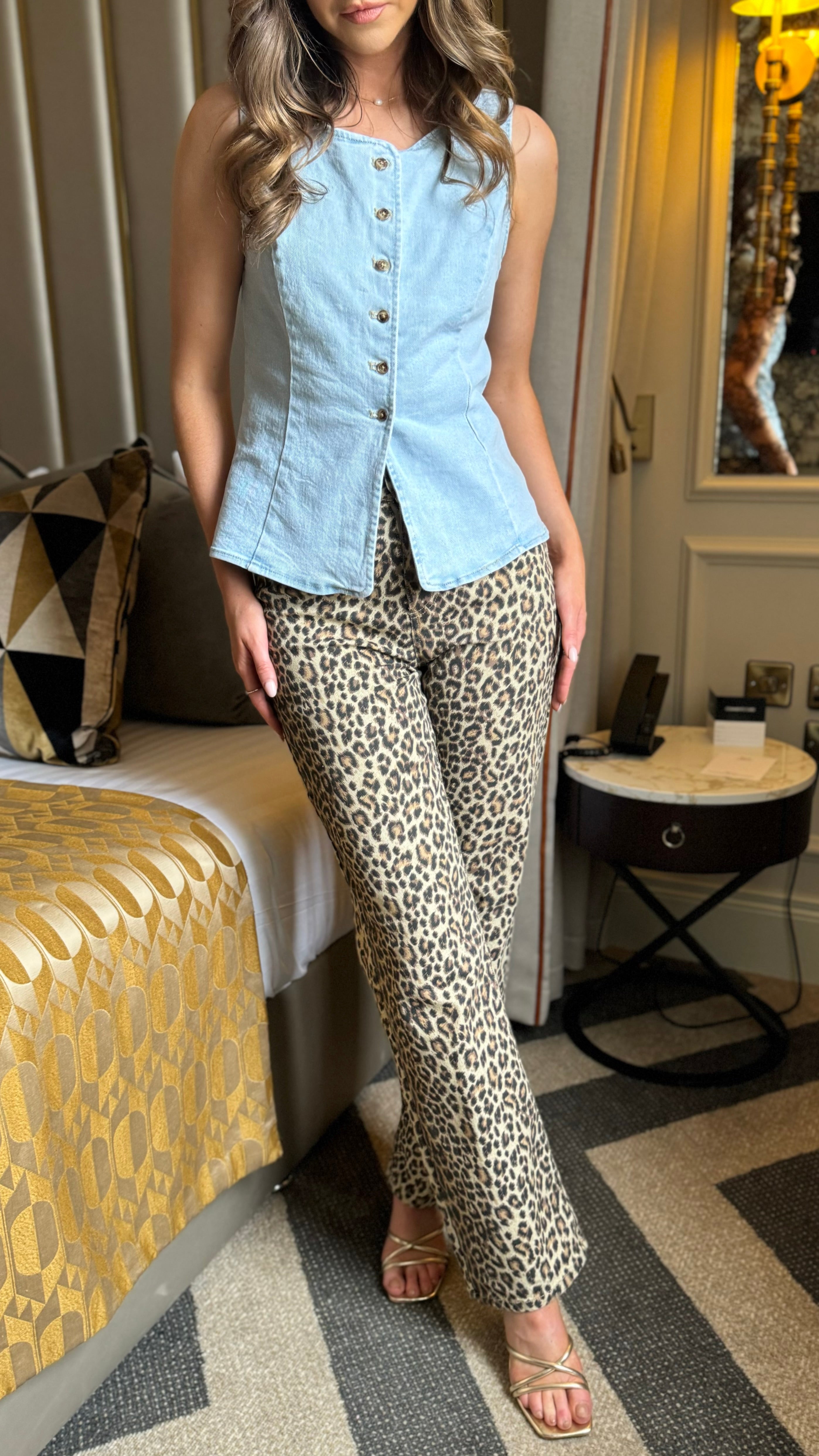 Rock the denim look with the Cassia Light Blue Denim Button Down Waistcoat. Featuring a playful round neckline and small button down detail, this waistcoat is sure to turn heads. Add it to your wardrobe for a touch of quirky style.