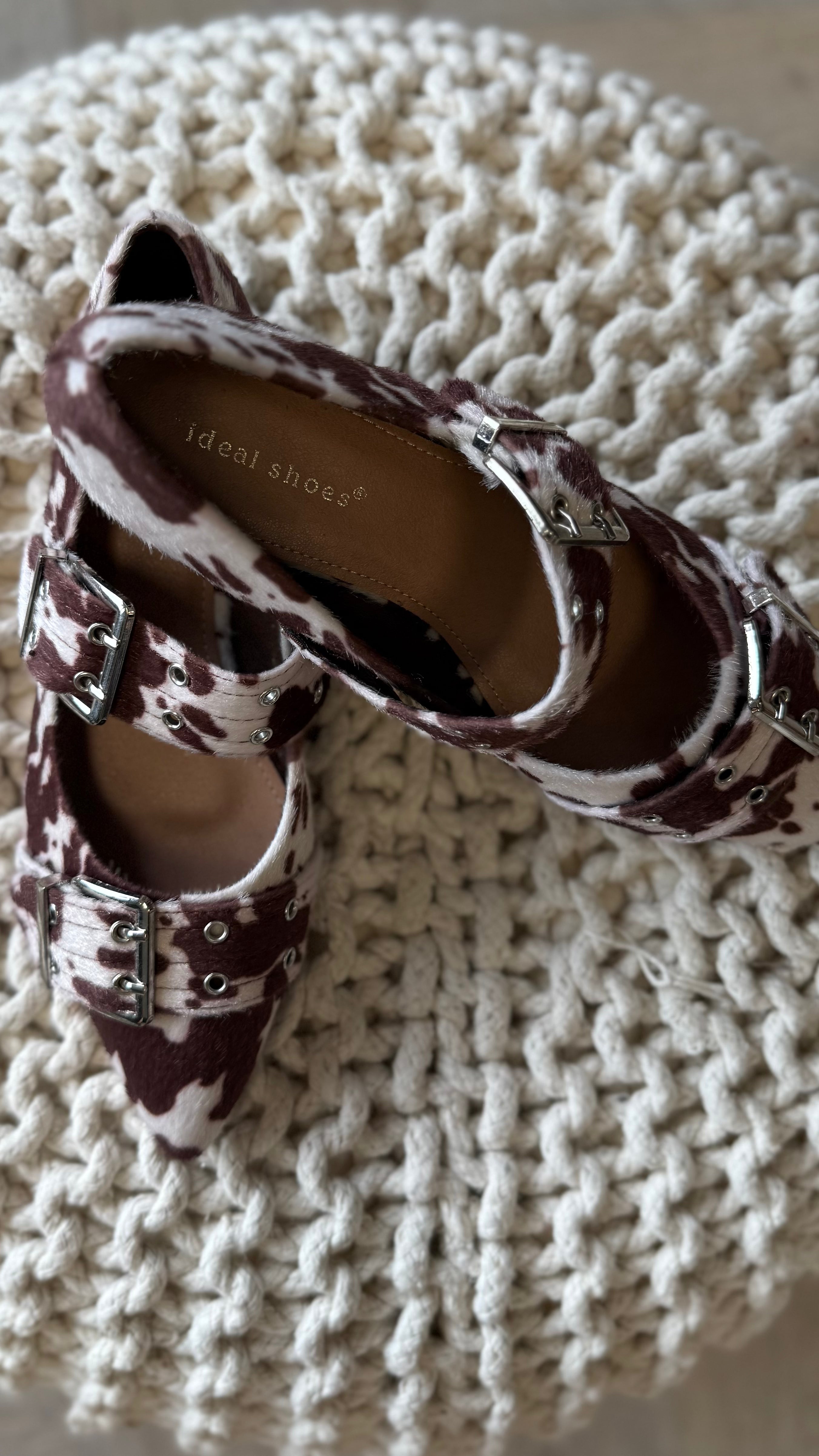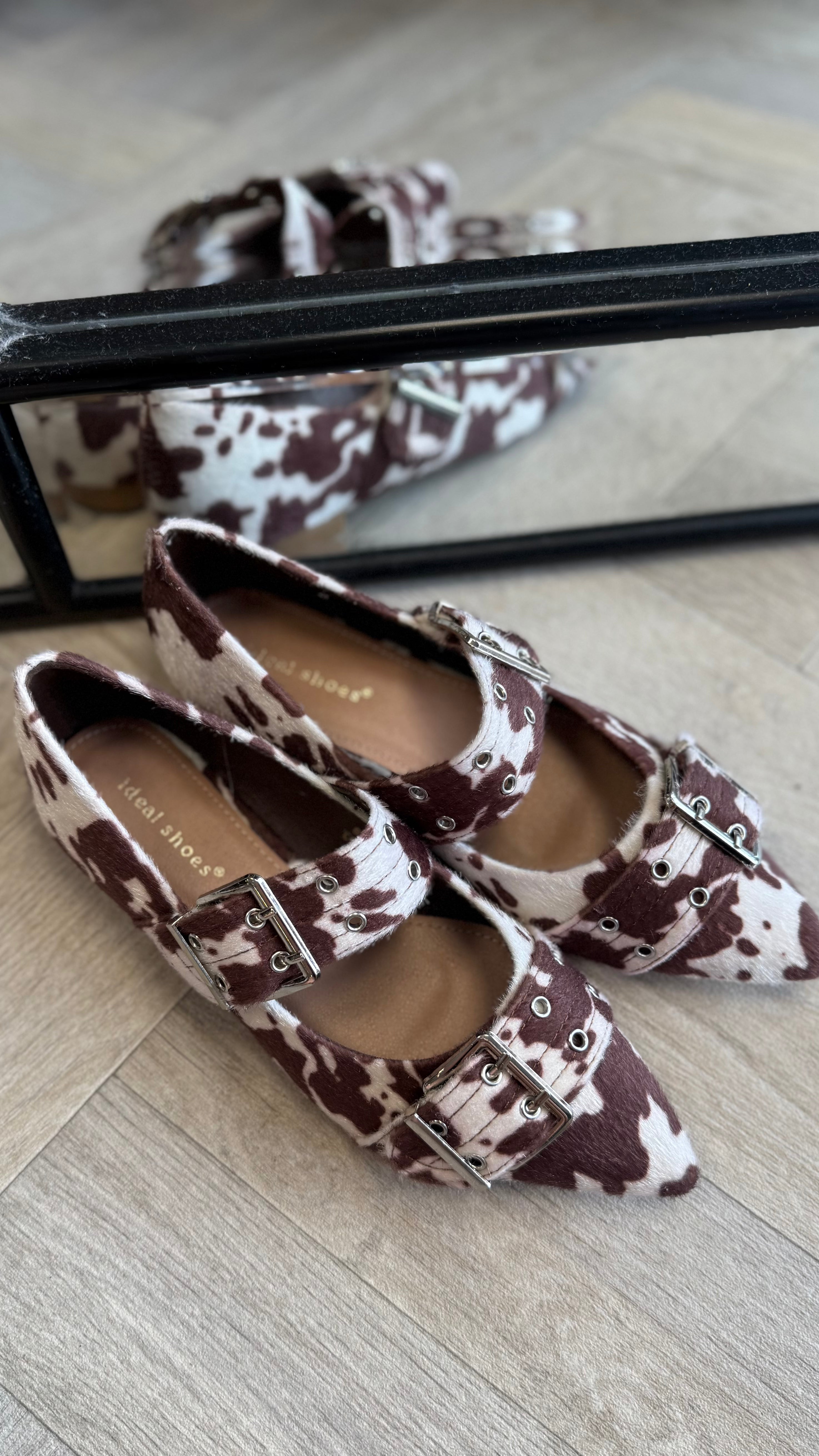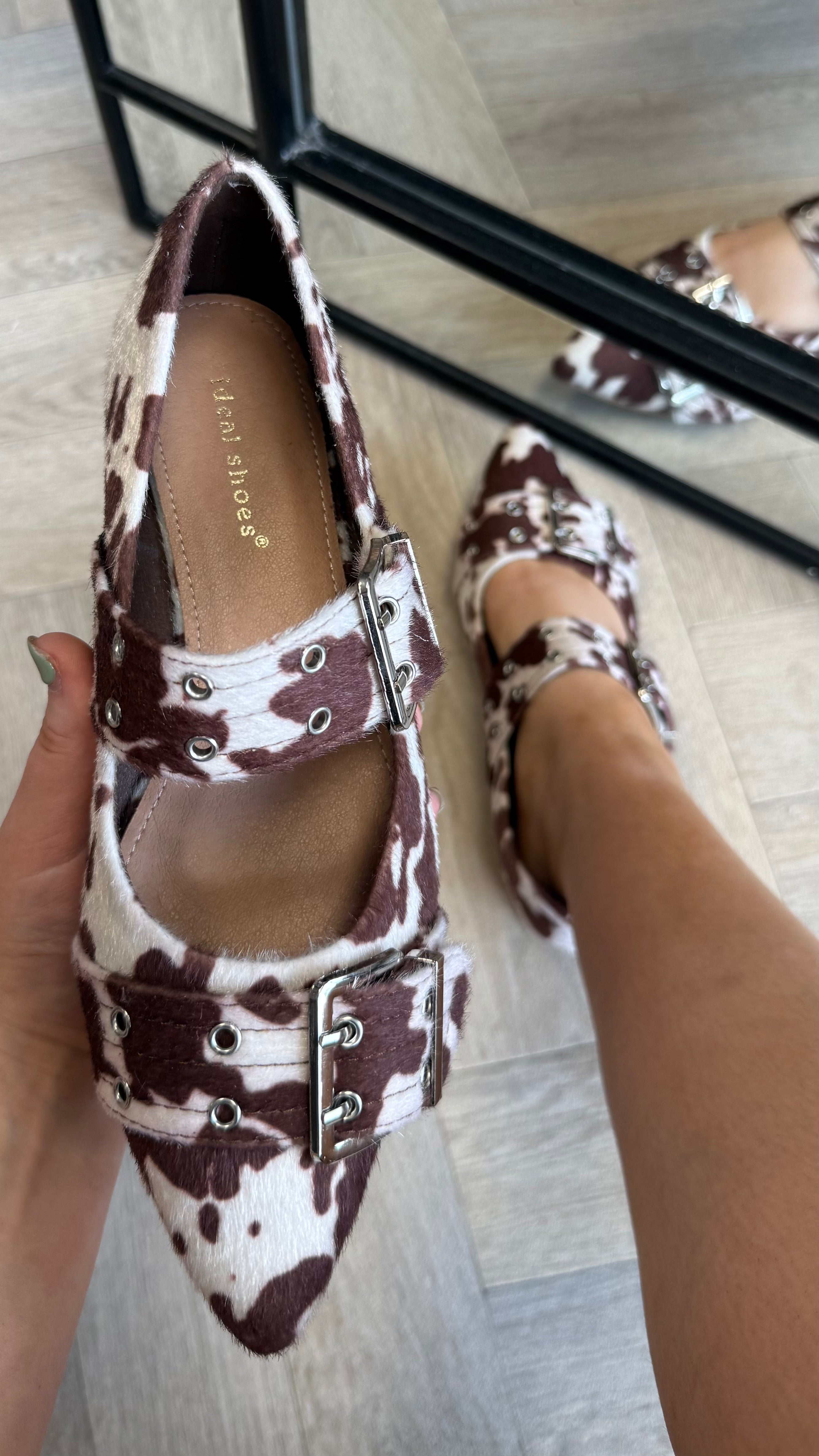 Cheyenne Cow Print Strap Detail Pointed Toe Flats