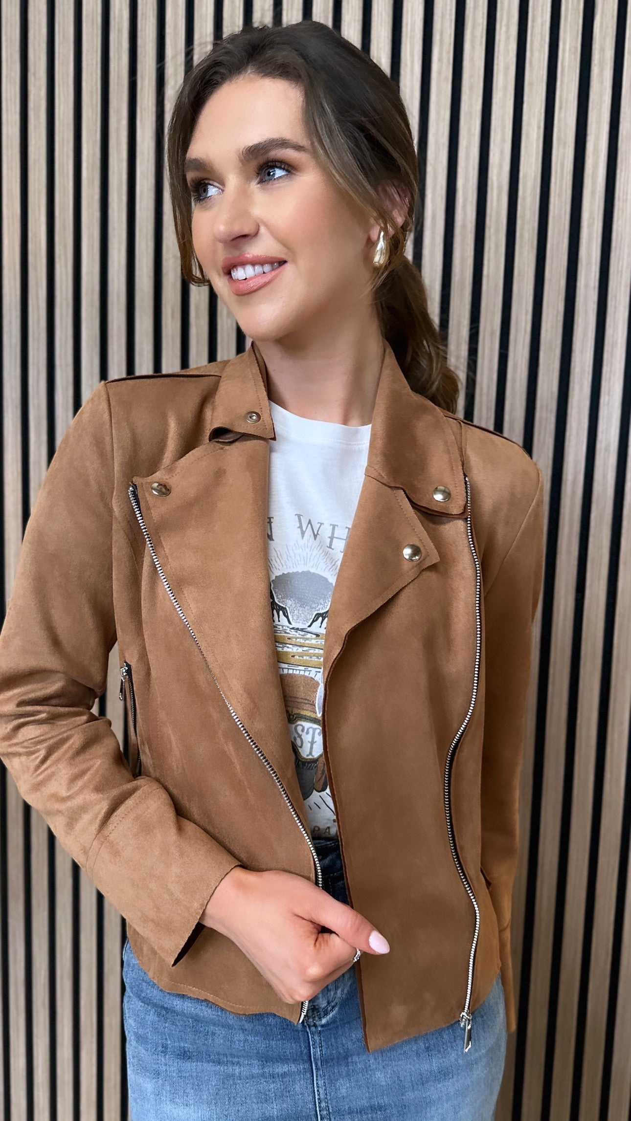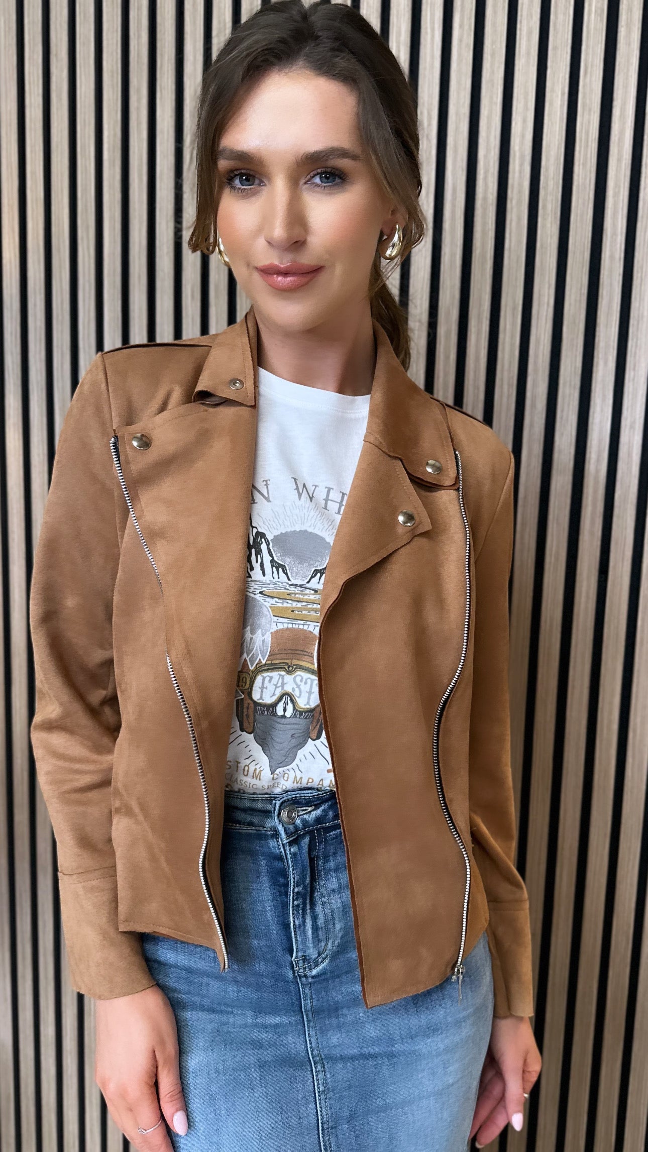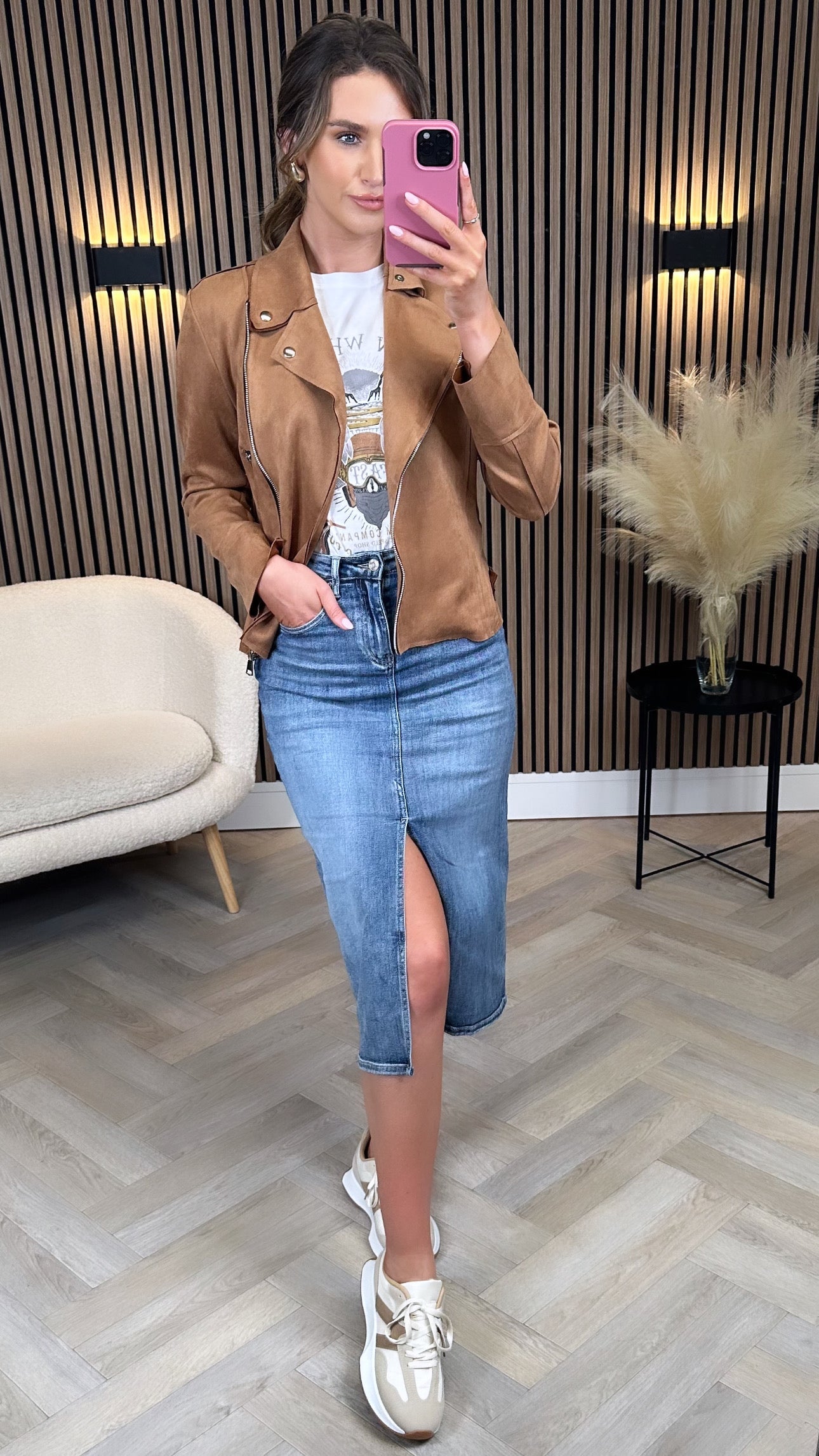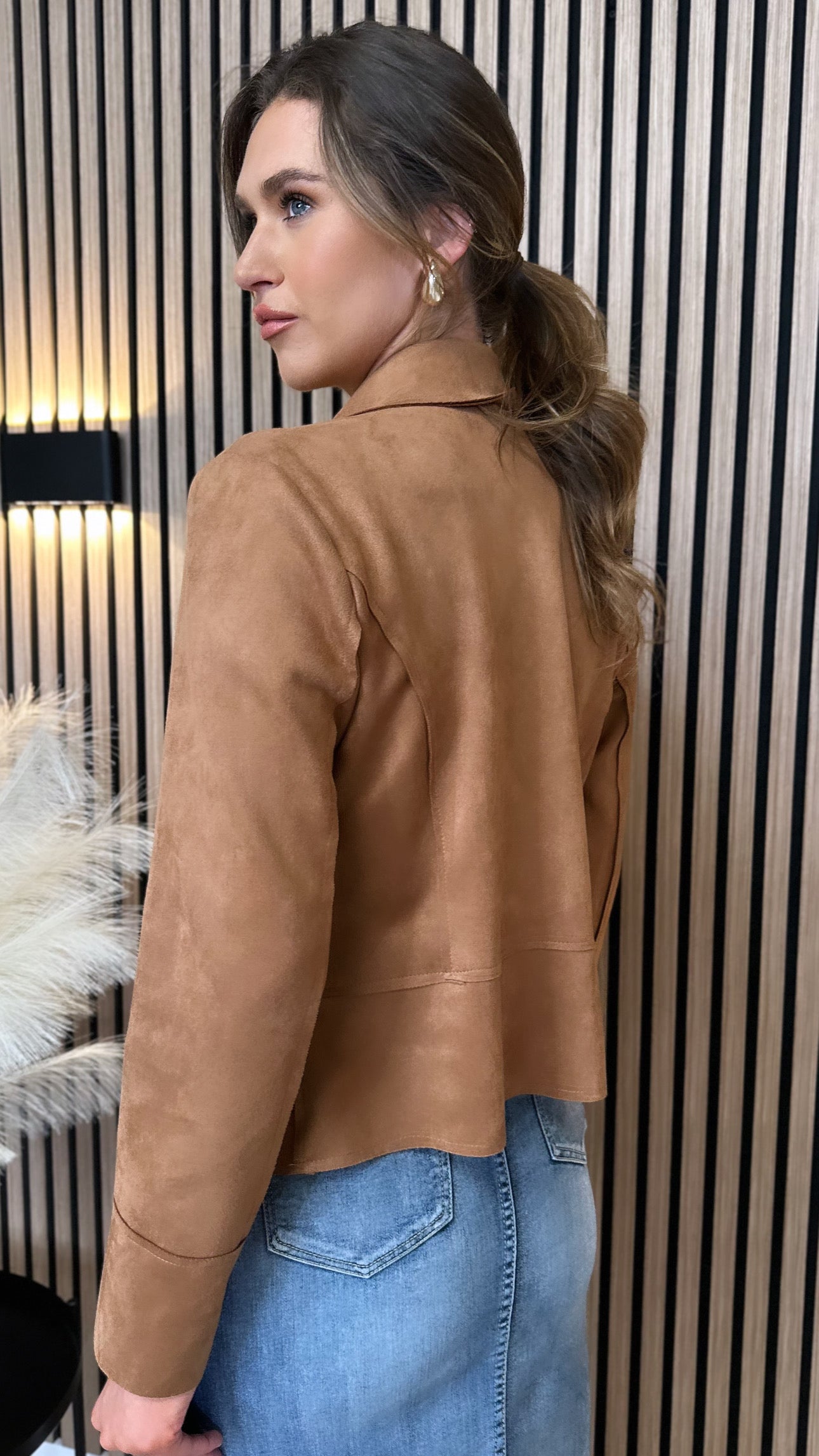 Zip up your style game with the Cora Khaki Suede Finish Collared Jacket! This fitted jacket features zip detailing for a touch of edge. Perfect for adding a playful twist to any outfit! 🧥💥