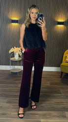 Corey Burgundy Velvet Finish Straight Leg Trousers