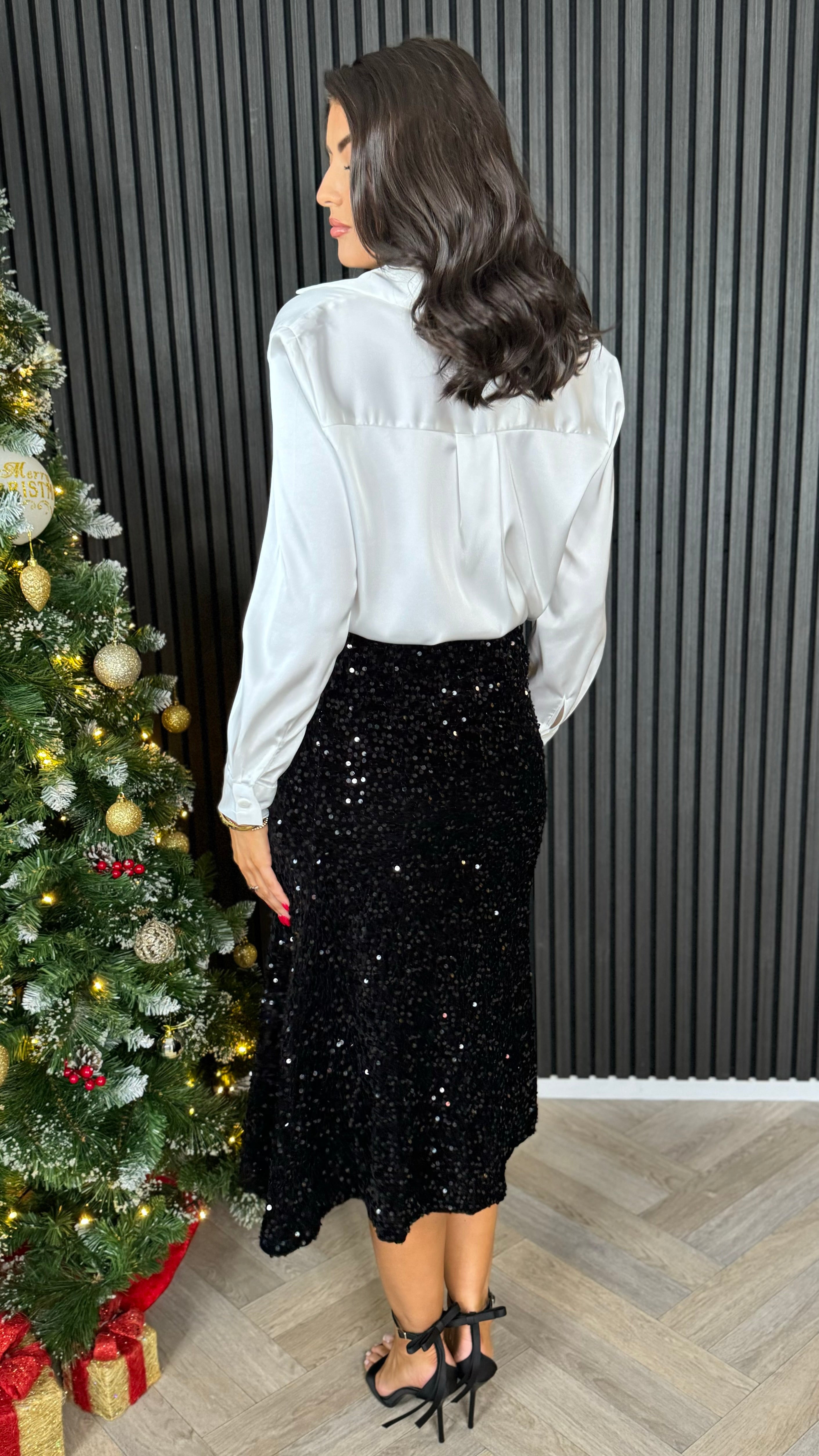 Dara Black Sequin Midi Skirt