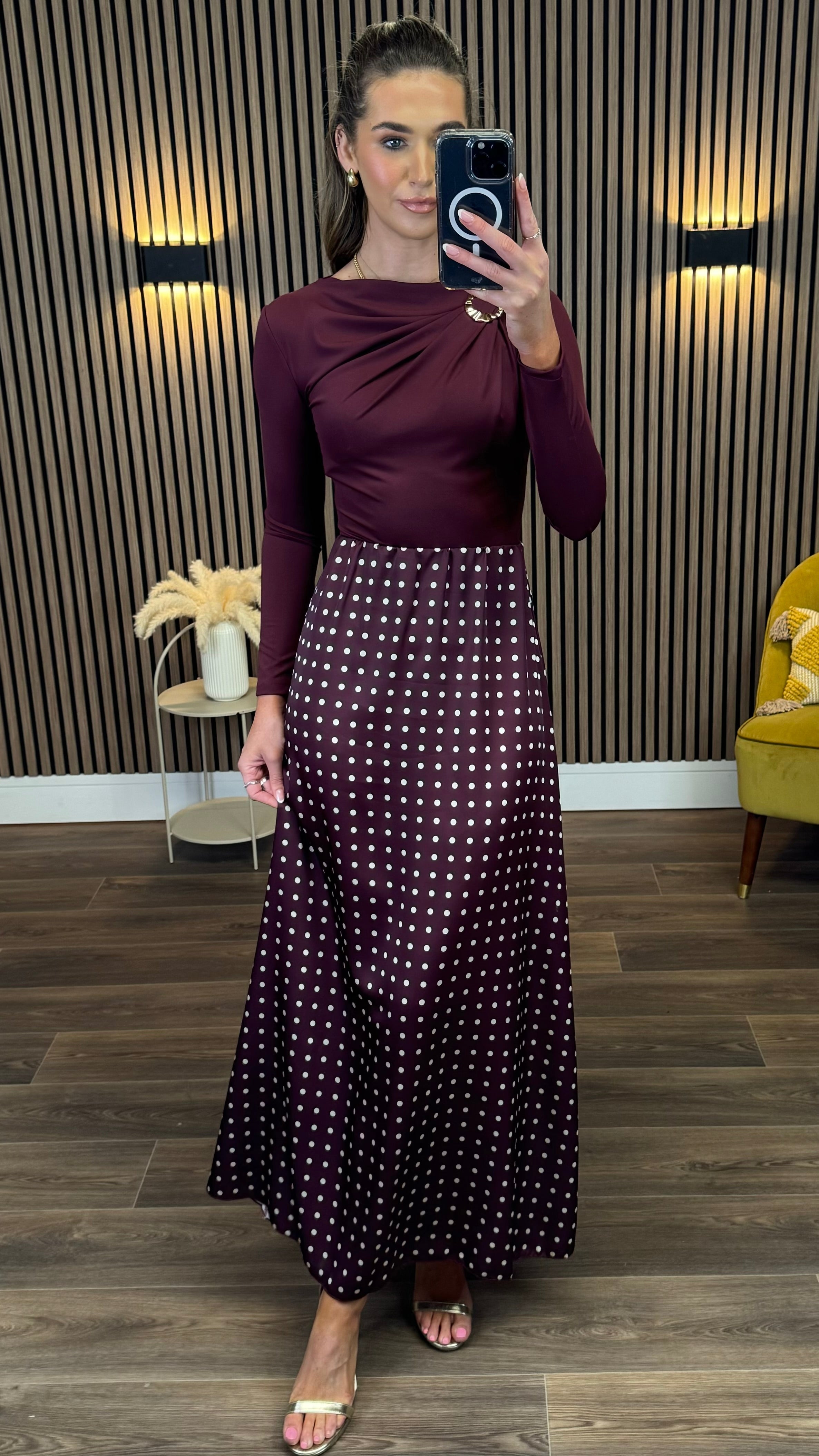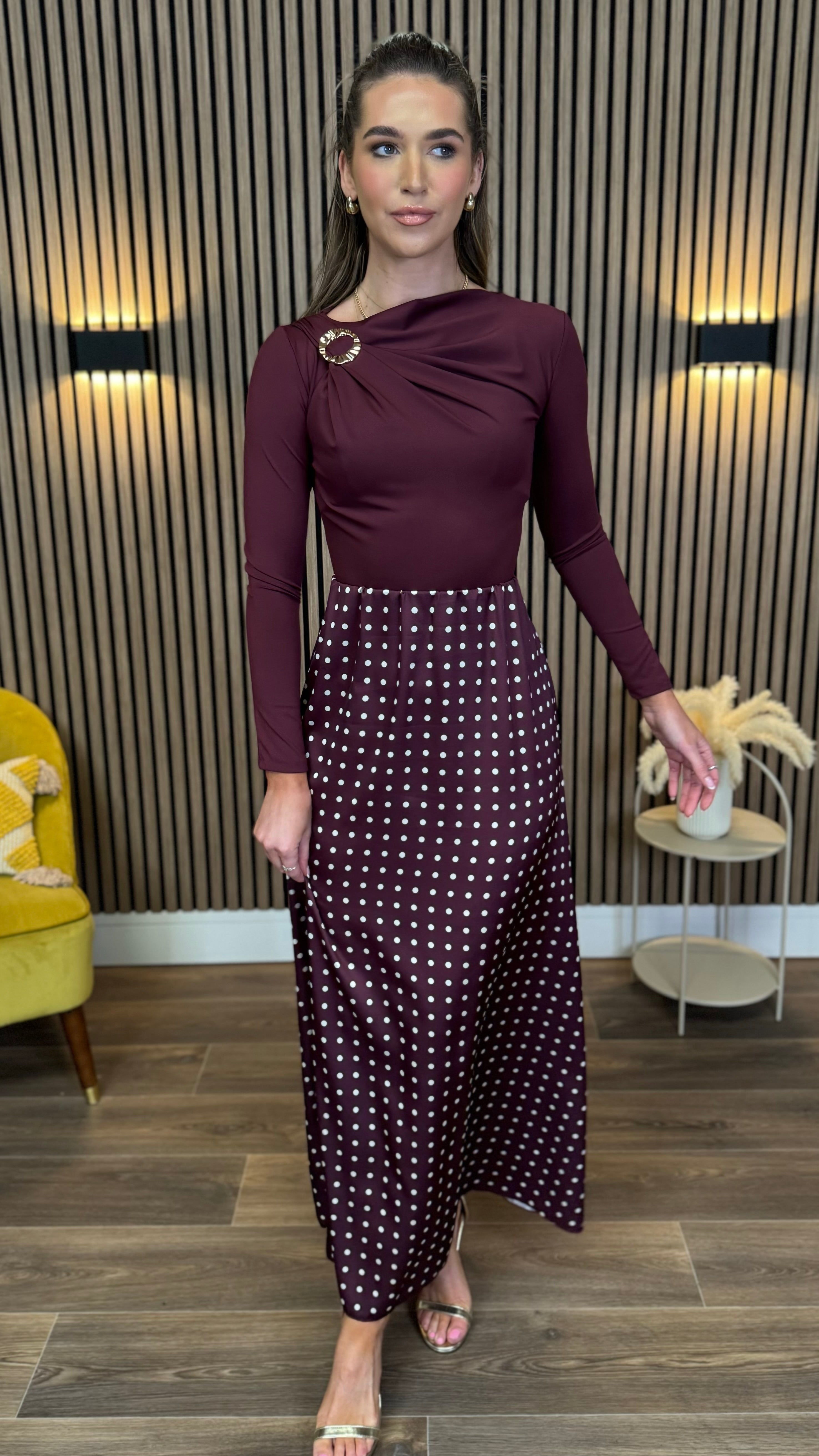 Deedee Burgundy Ruched Gold Detail Bodysuit