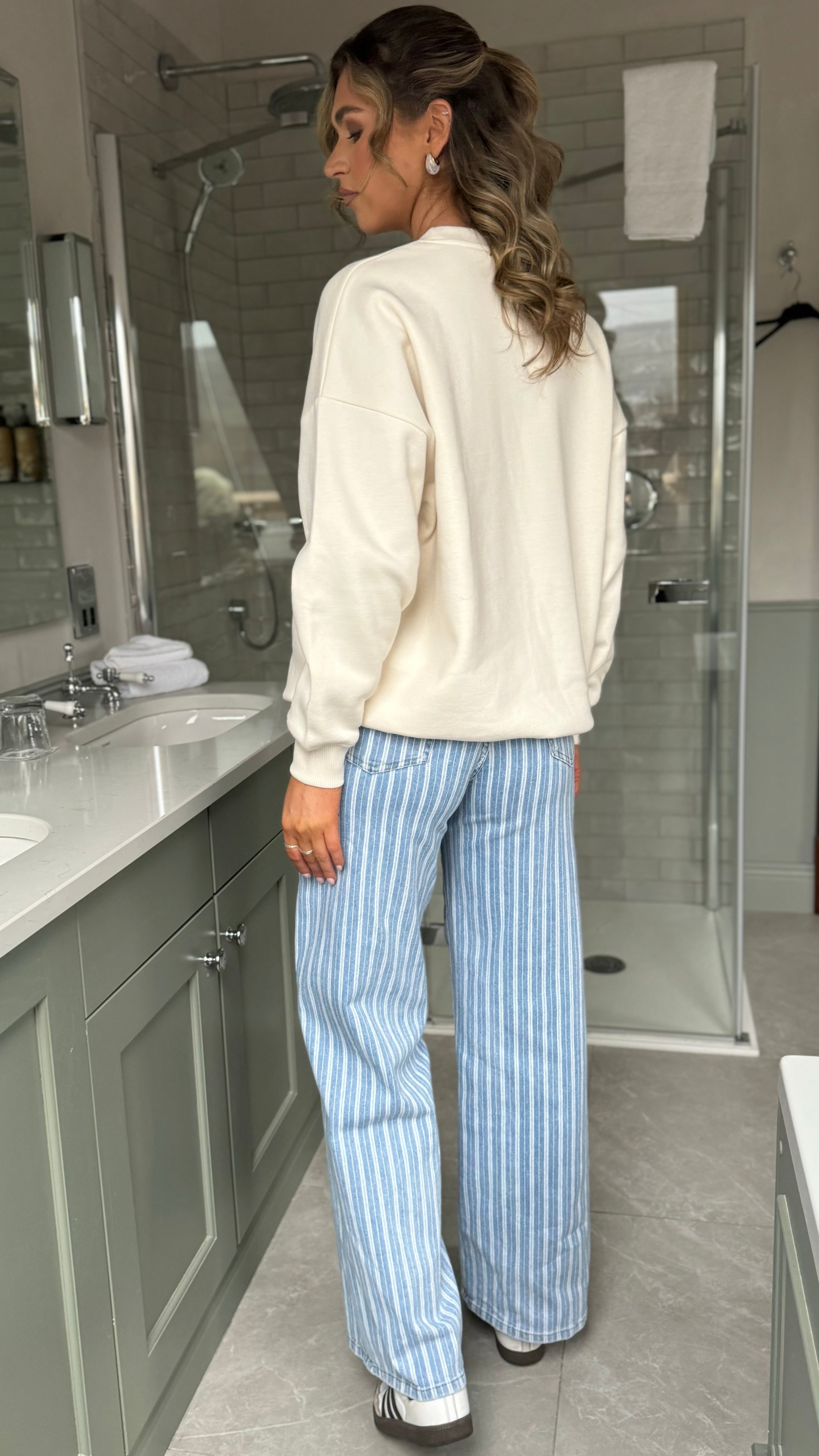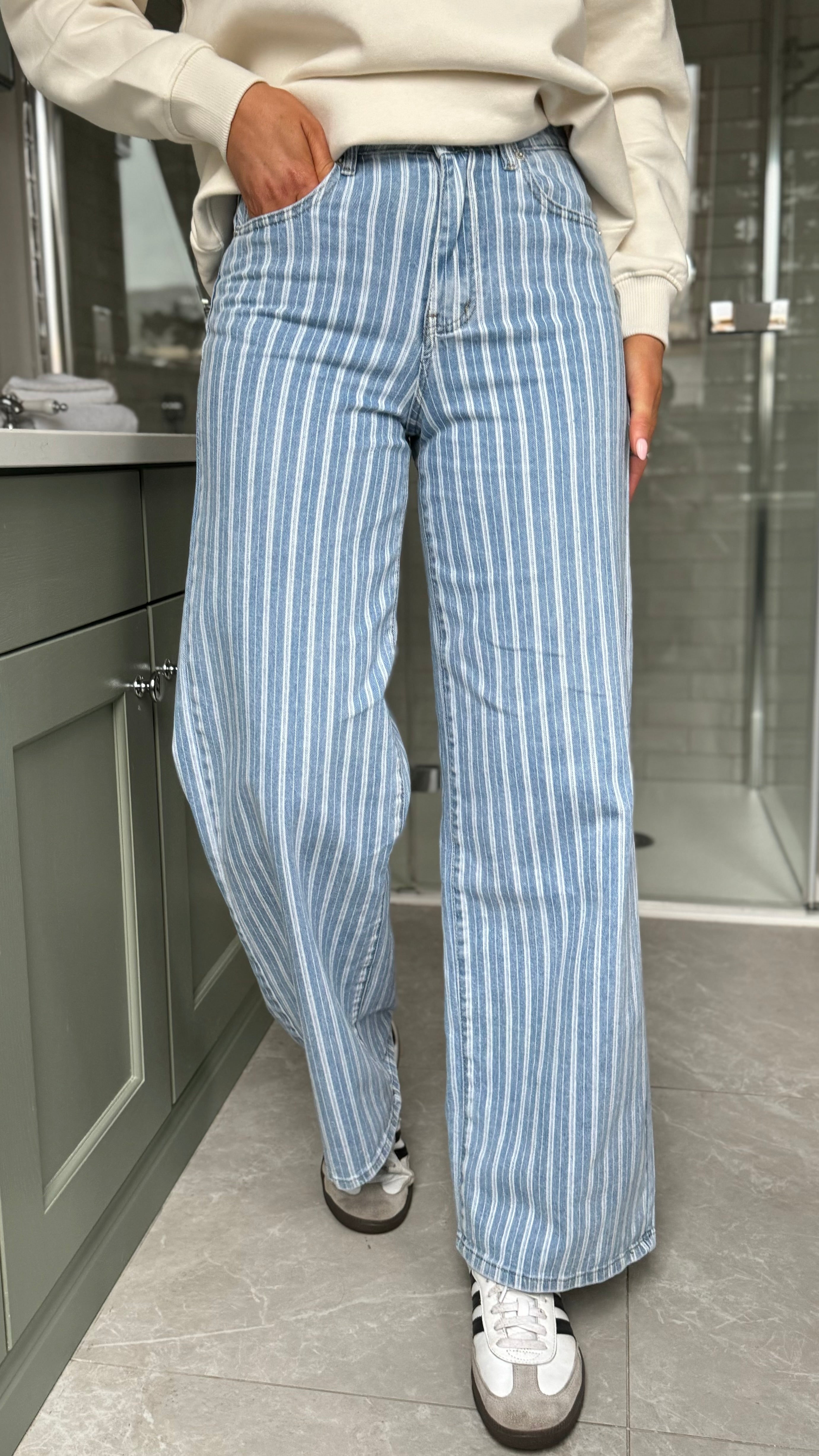 Introducing the Dorothea Light Denim Pinstripe Straight Leg Jeans – your new wardrobe MVP! These beauties feature a chic pinstripe pattern that adds instant sophistication to any outfit. With a flattering high-waisted cut, functional front and back pockets (because who doesn't love extra storage?), sturdy belt loops, and a reliable zip fly fastening, they're as practical as they are stylish. The timeless straight leg silhouette works with everything from sneakers to heels, making these jeans the versatile piece you'll reach for again and again.