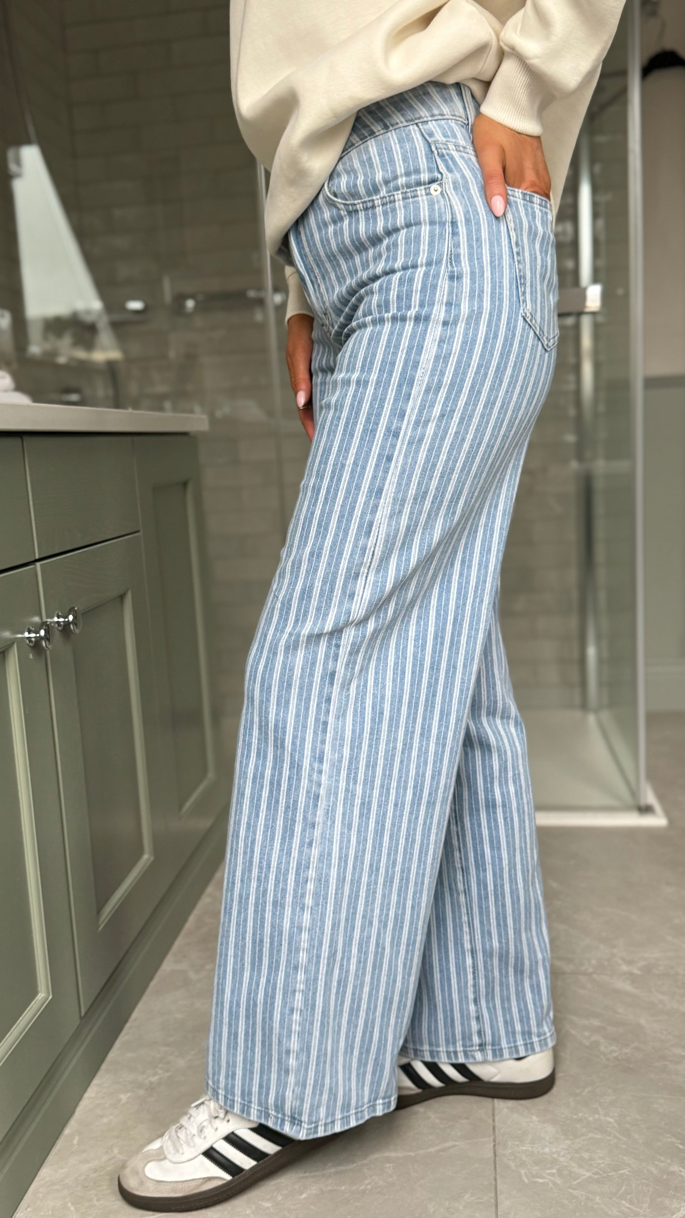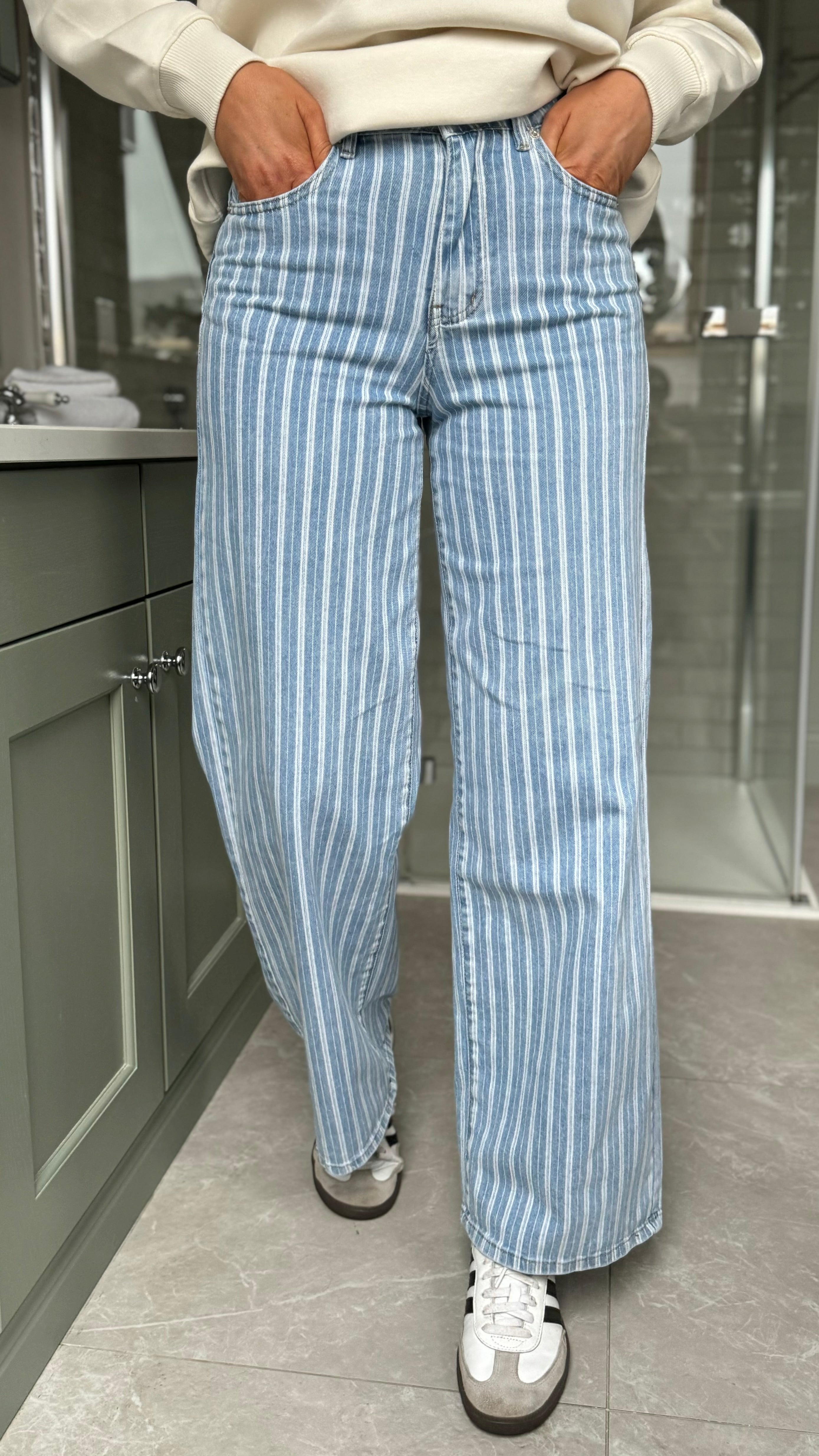Dorothea Light Denim Pinstripe Straight Leg Jeans