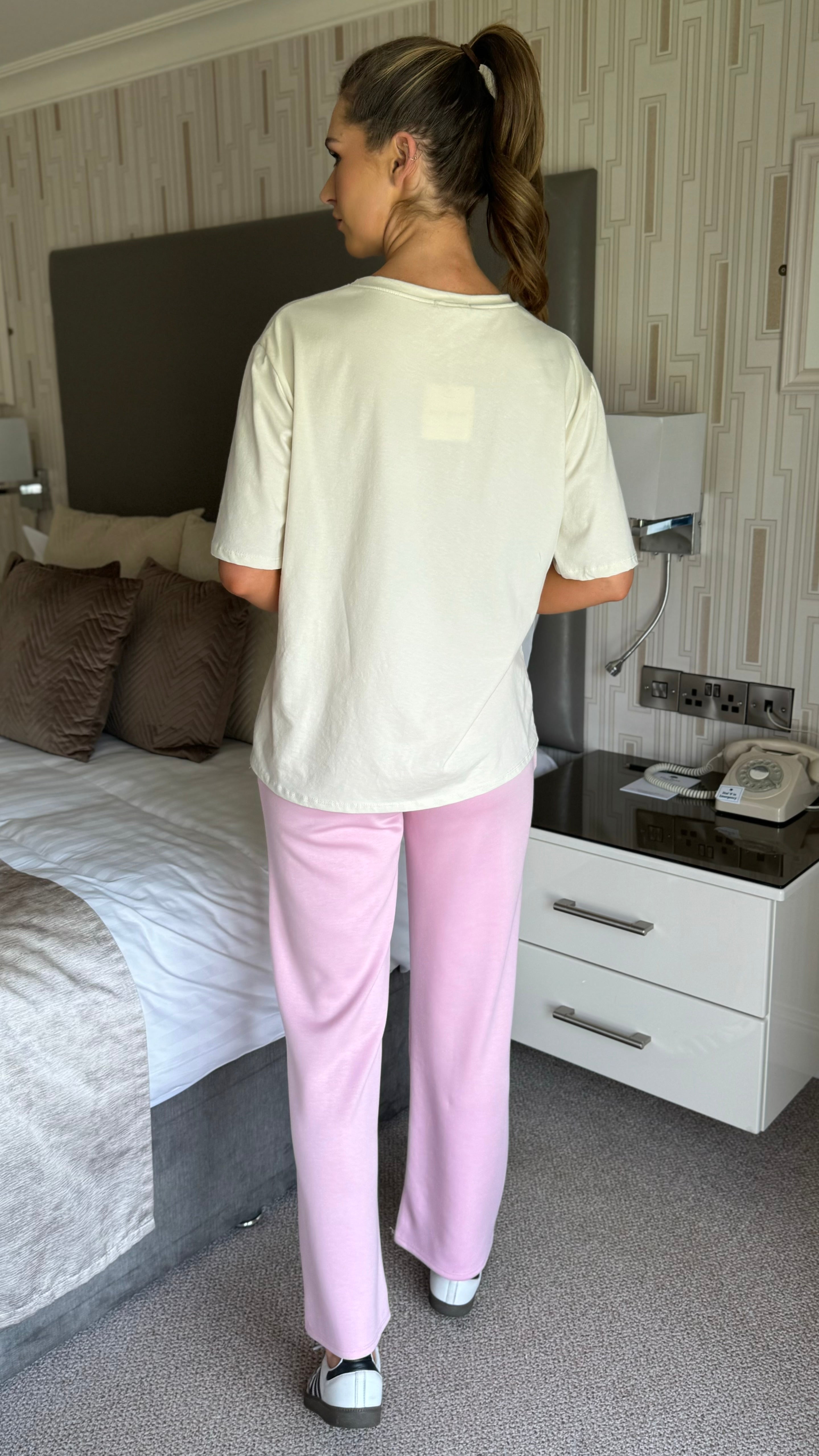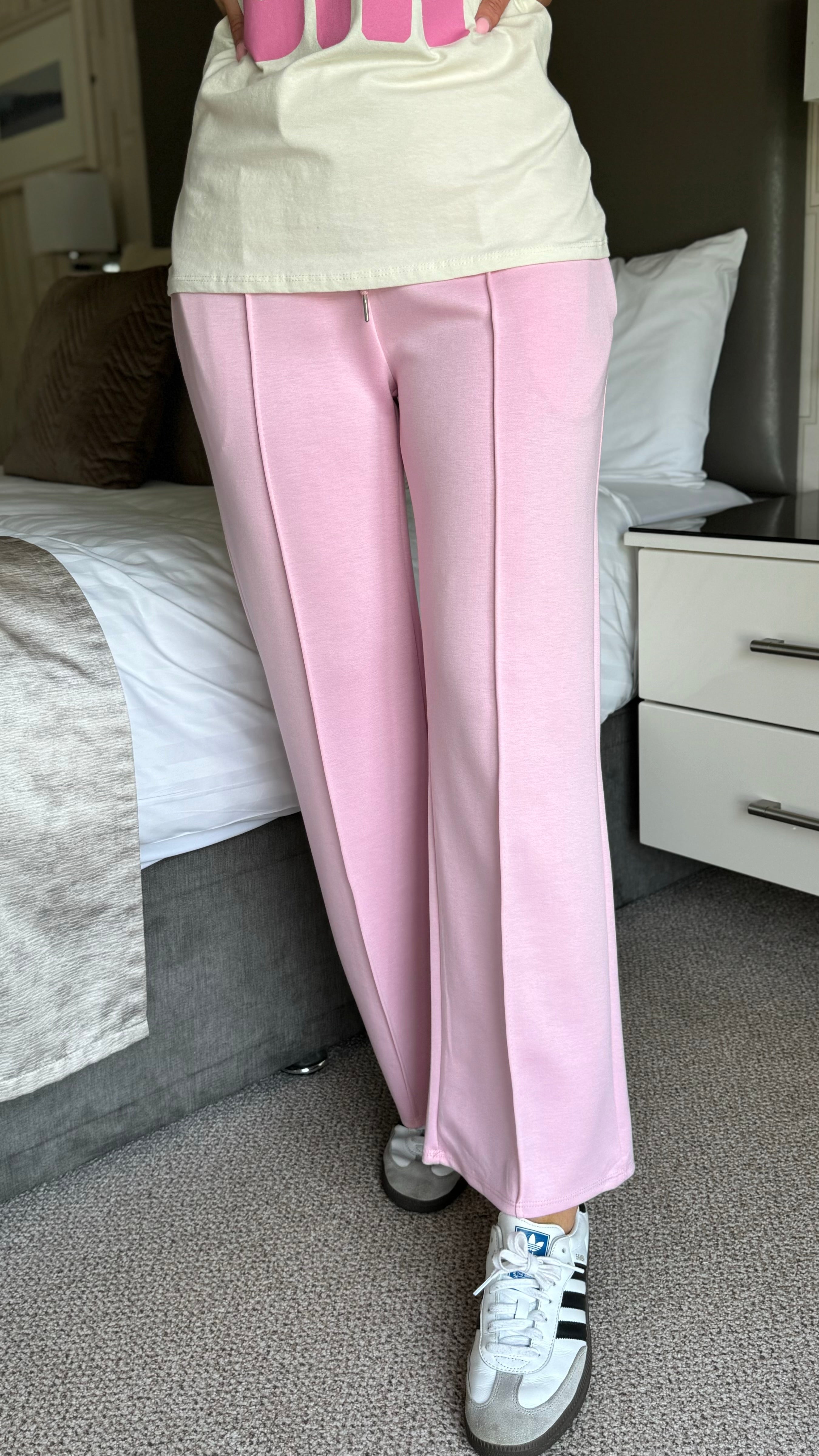 Dympna Pink Jersey Elasticated Waist Straight Leg Joggers