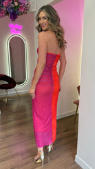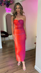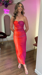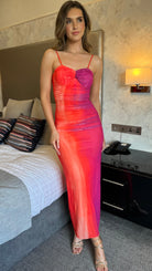 Elina Red & Purple Ombre Printed Cami Strap Midi Dress