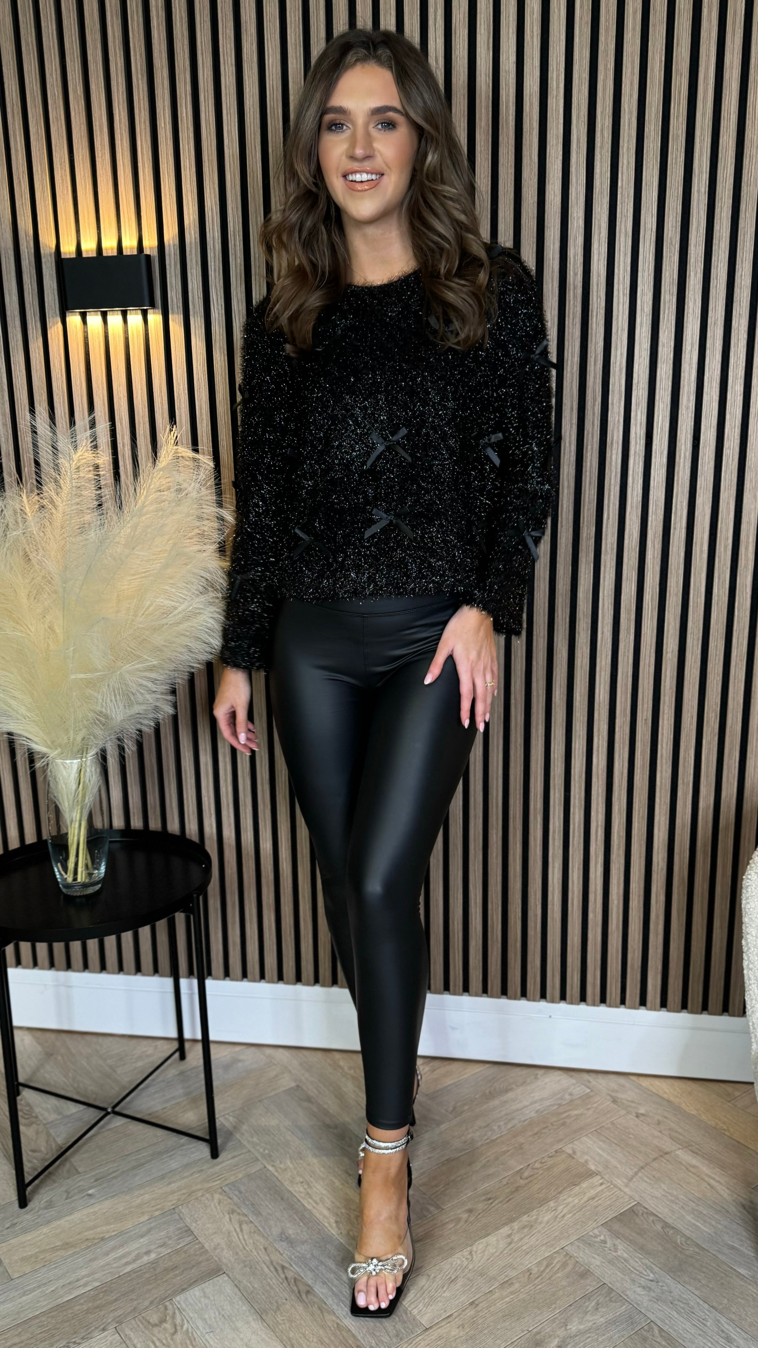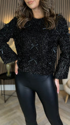 This Elliott Black Bow Detailed Knit Jumper adds a playful touch with its charming bow and cozy chenille detail. Stay warm and stylish this season with this unique knit jumper.