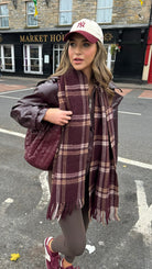 Ethel Burgundy, Beige & Taupe Tartan Scarf