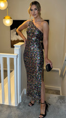Figaro Black Multi Colour Sequin One Shoulder Maxi Dress