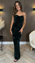 Dazzle in the Ripley Green Velvet Sequin Occasion Maxi Dress. Luxurious soft velvet and sparkling sequins make this dress the perfect choice for special occasions. With timeless elegance and a touch of envy, you'll be the belle of the ball! ✨
