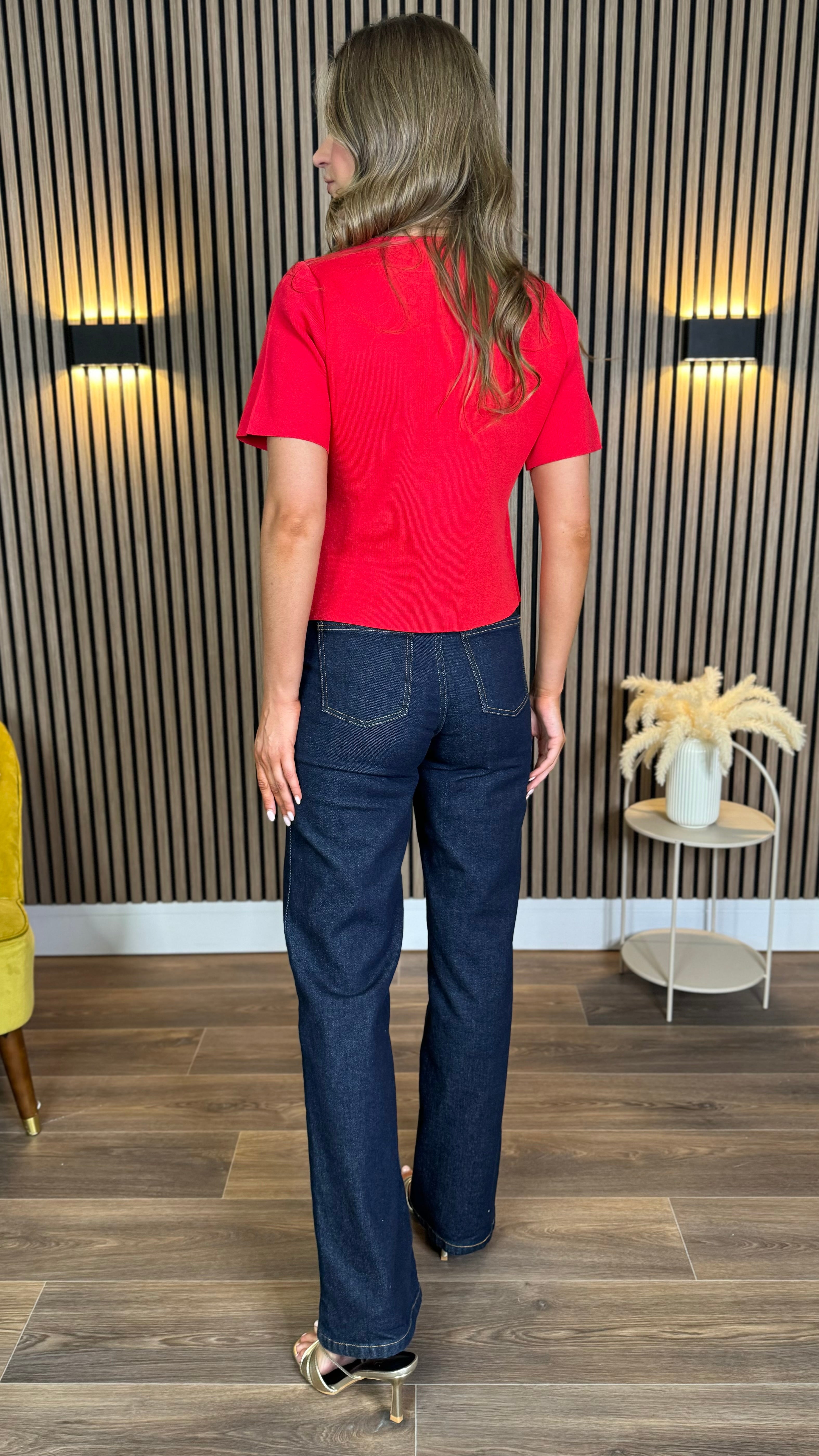 This Gemma Red Top features a refined ribbed texture and short sleeves, complemented by elegant gold button details that add a touch of luxury. Its rich red hue brings warmth and sophistication to your wardrobe, perfect for both day and evening occasions. Pair it effortlessly with tailored trousers or a sleek skirt for a polished look. ✨