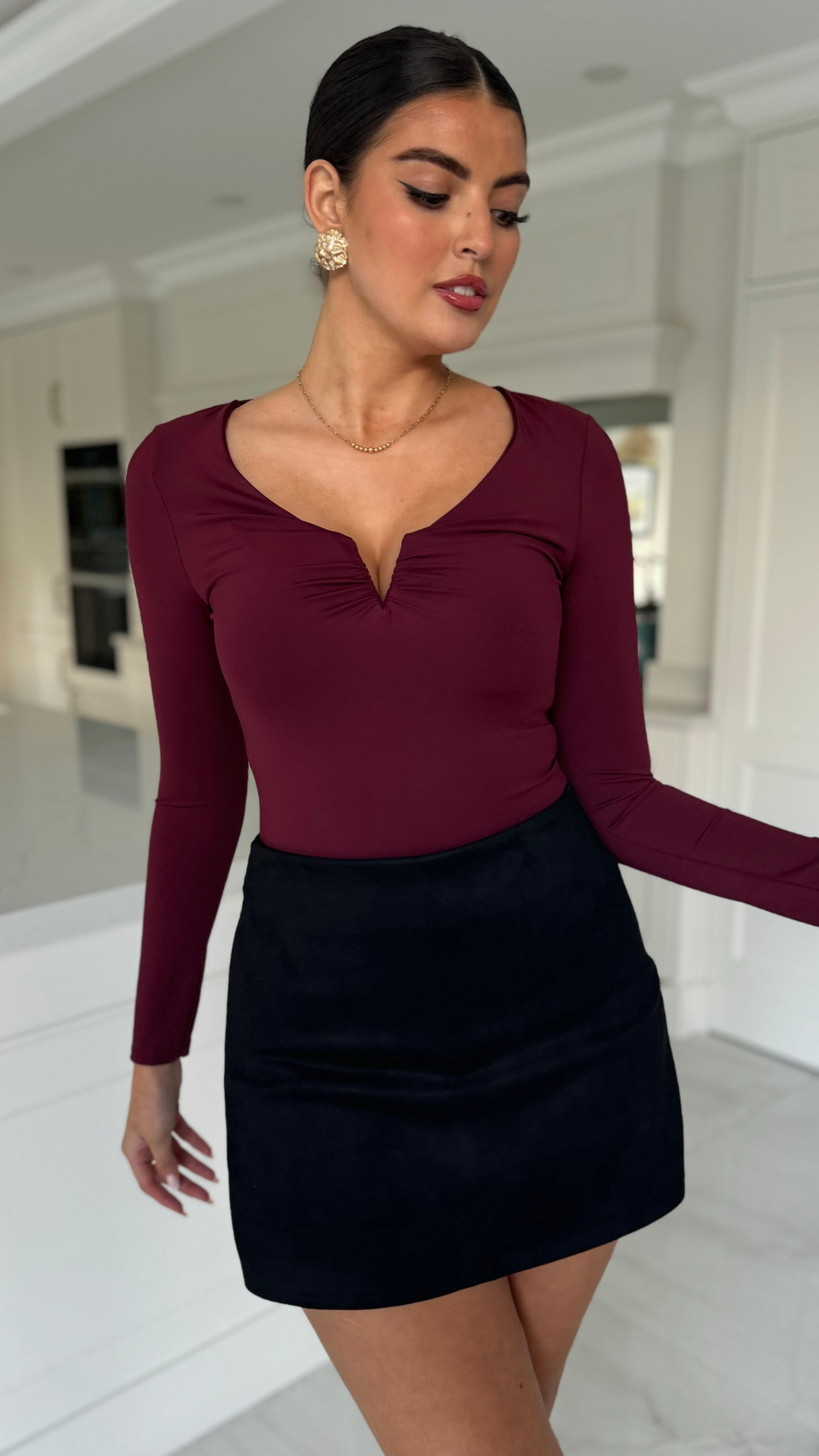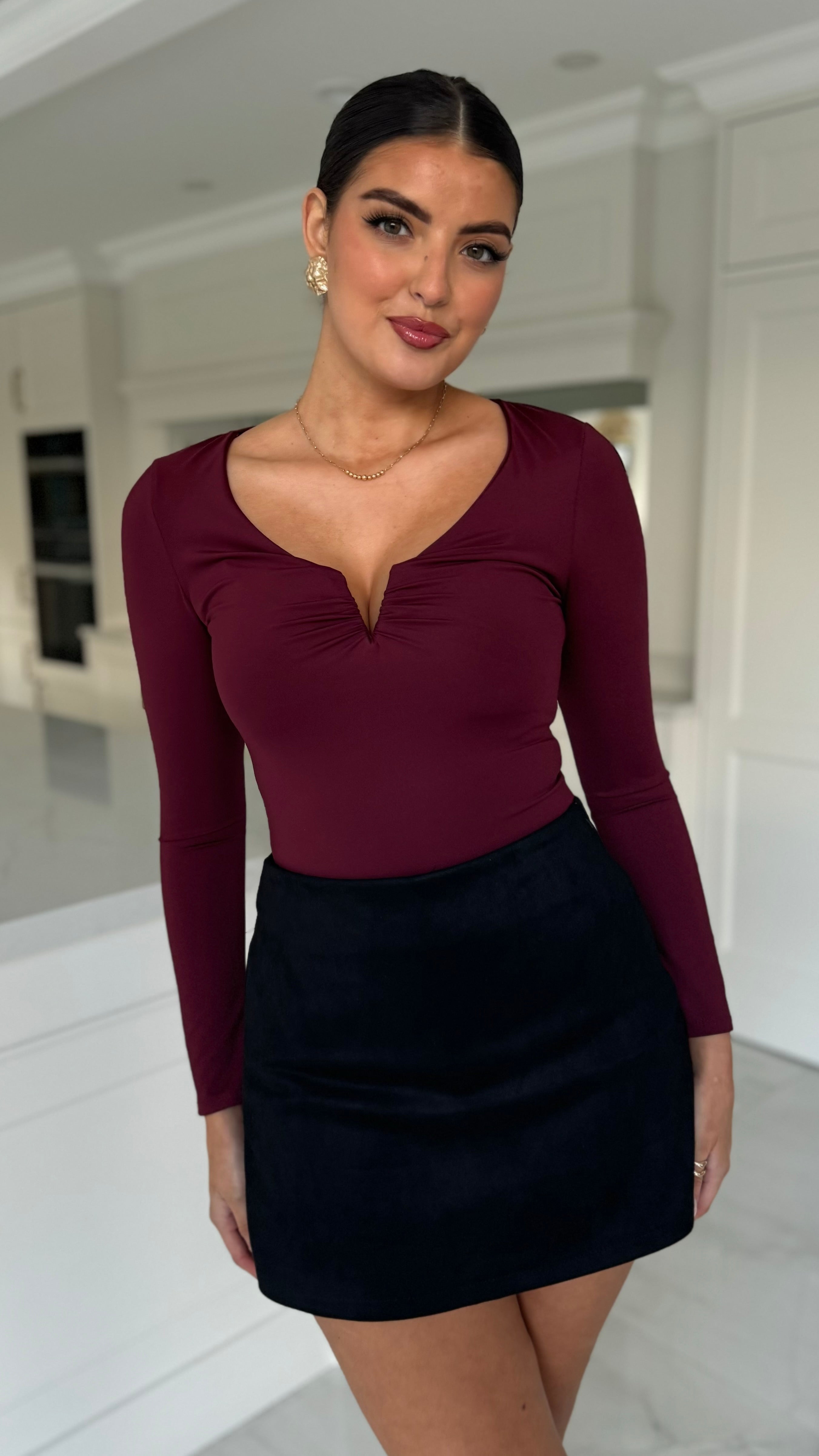 Goldie is your go-to skort for effortless style! This mini beauty features a structured high waist that flatters and a sleek straight cut in luxe faux suede. The concealed side zip keeps things streamlined while the black tone pairs with literally everything. Perfect for those days when you want shorts comfort with skirt vibes.