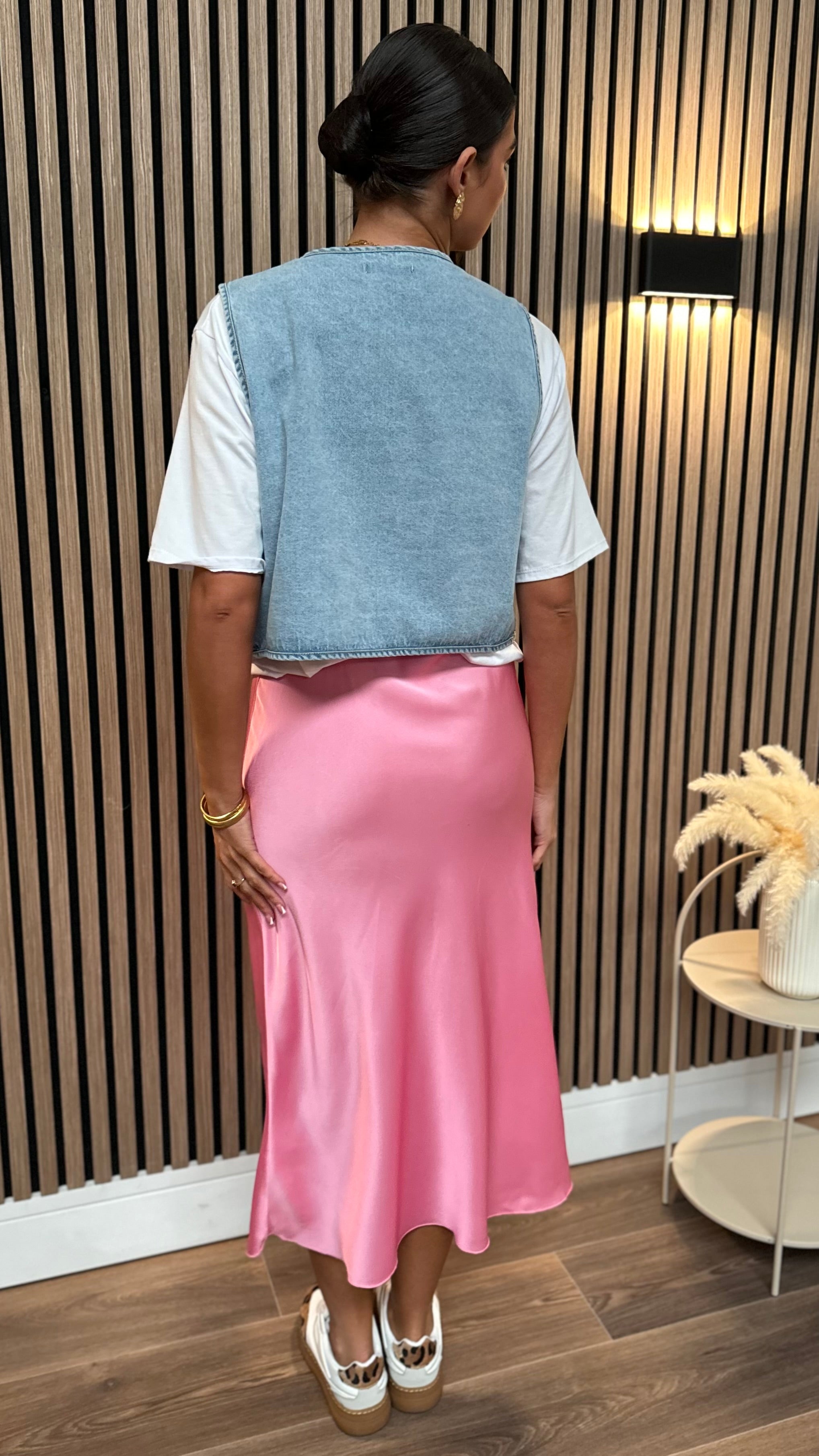 Gracen Light Blue Denim Tie Detail Waistcoat