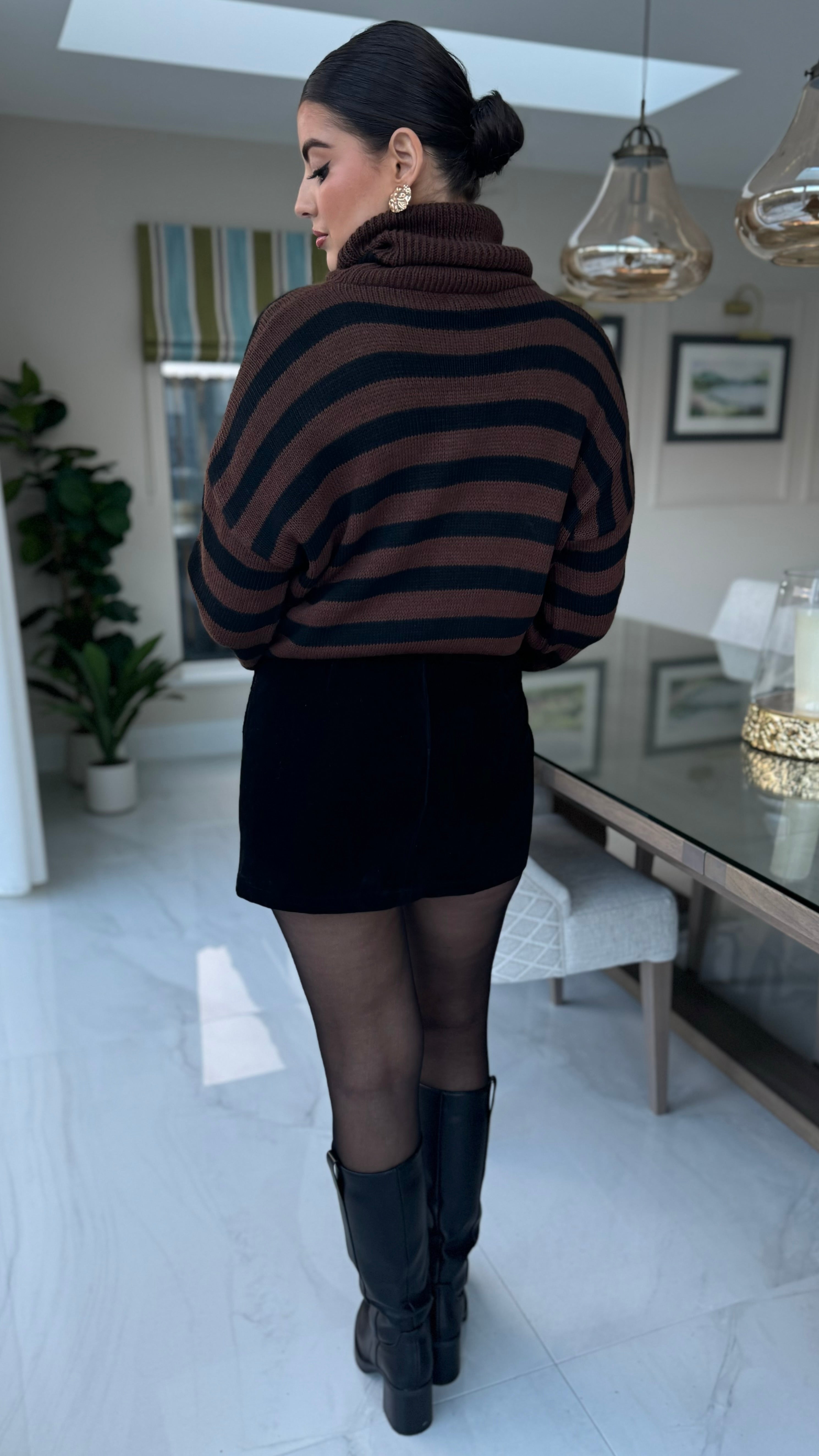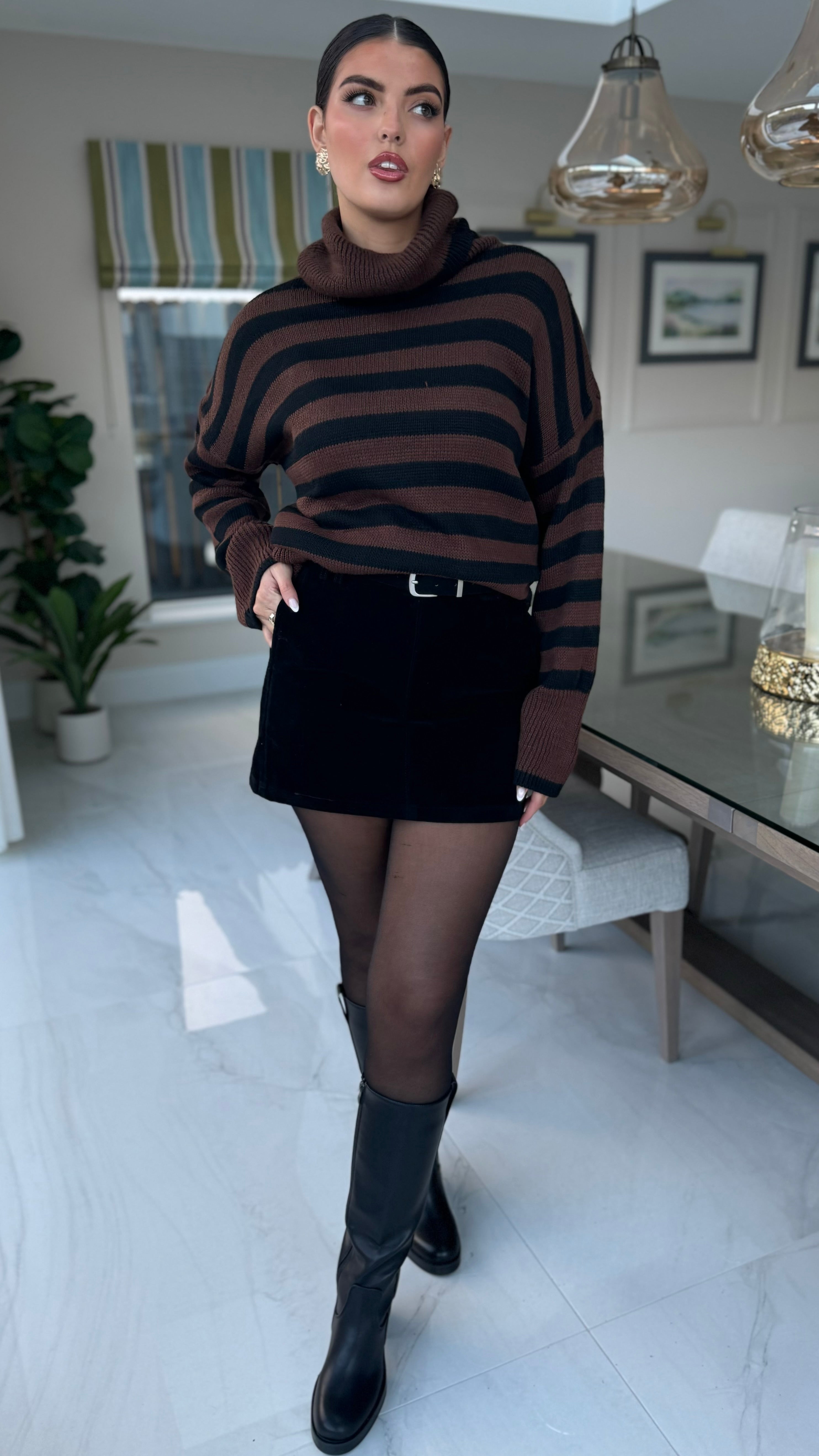 Step out in style with the Gwyneth Black Belted Mini Skirt. Crafted from soft suede, this playful mini features a flattering belt with shiny silver hardware and handy pockets for a touch of practicality. Perfect for adding a chic edge to any outfit while keeping things fun and flirty.