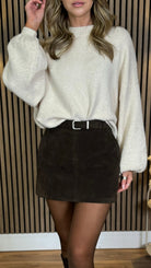 Step out in style with the Gwyneth Chocolate Brown Belted Mini Skirt. Crafted from soft suede, this playful mini features a flattering belt with shiny silver hardware and handy pockets for a touch of practicality. Perfect for adding a chic edge to any outfit while keeping things fun and flirty.