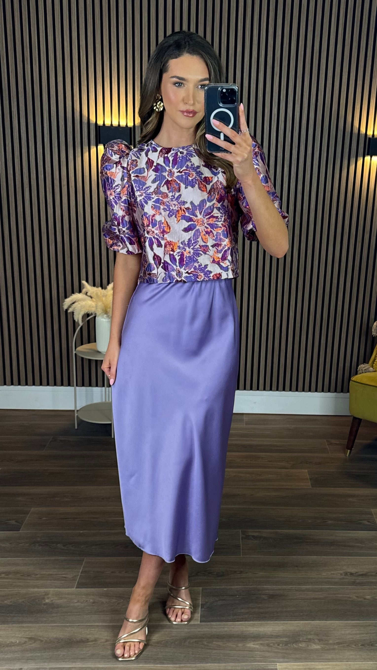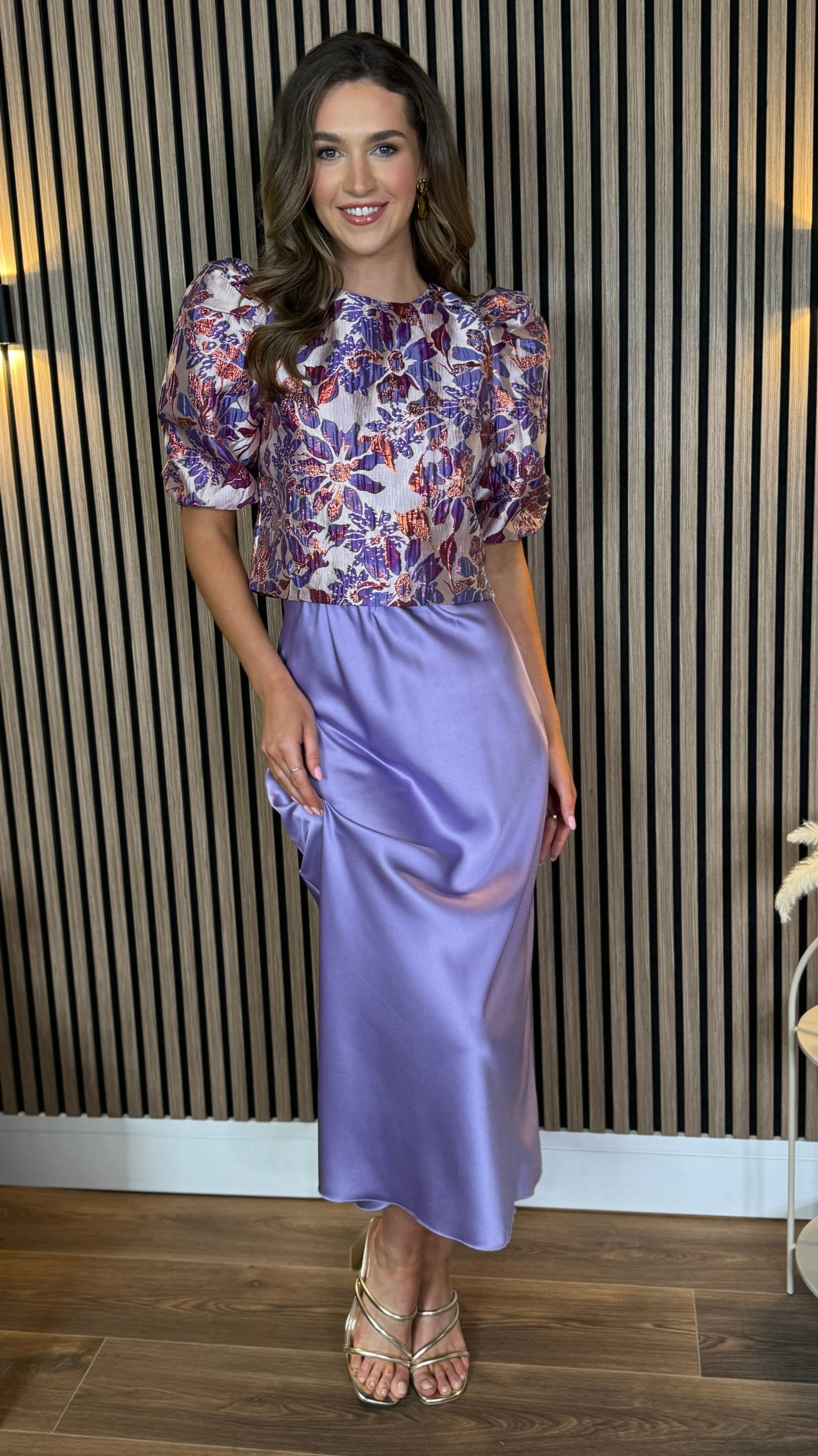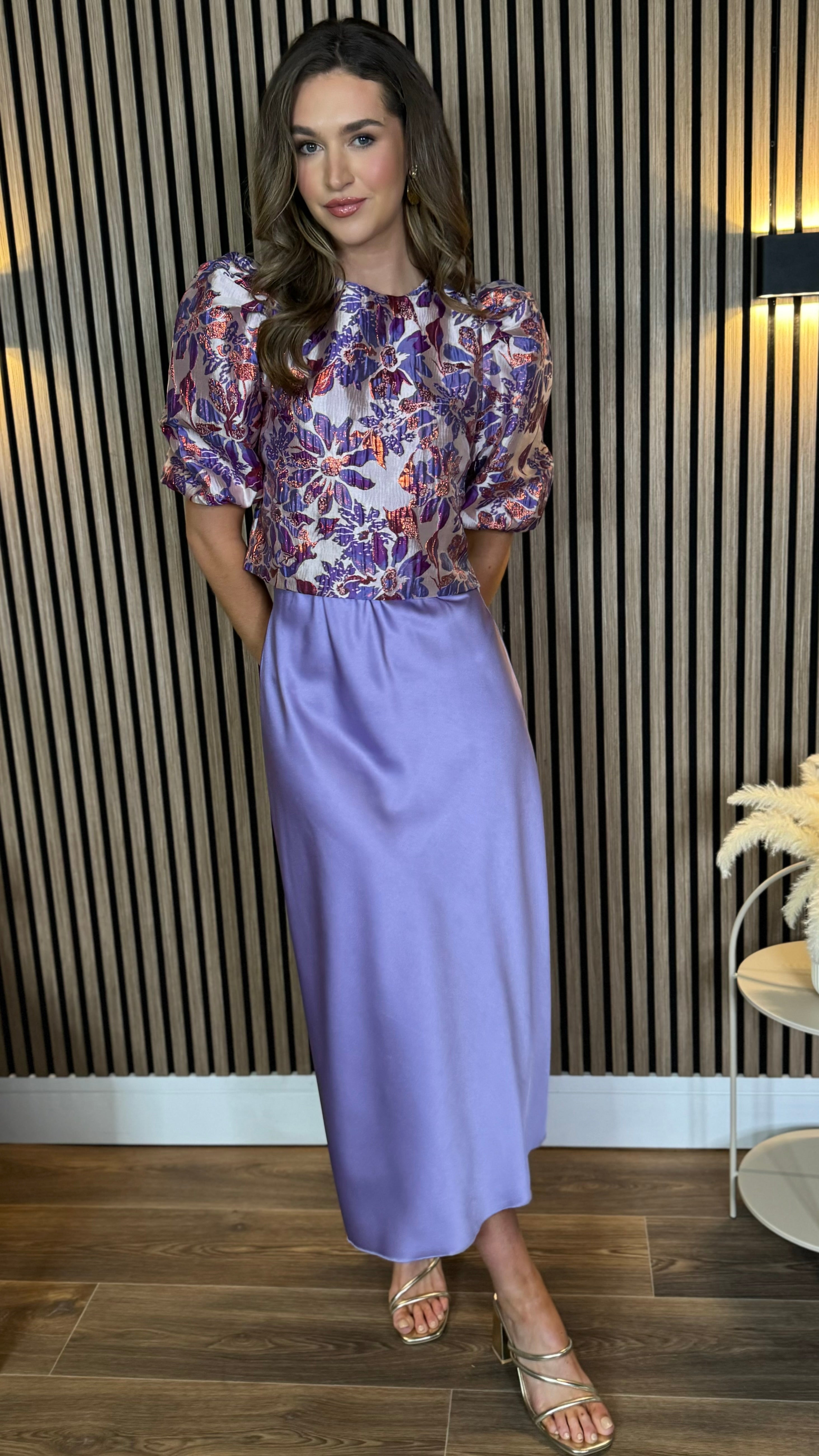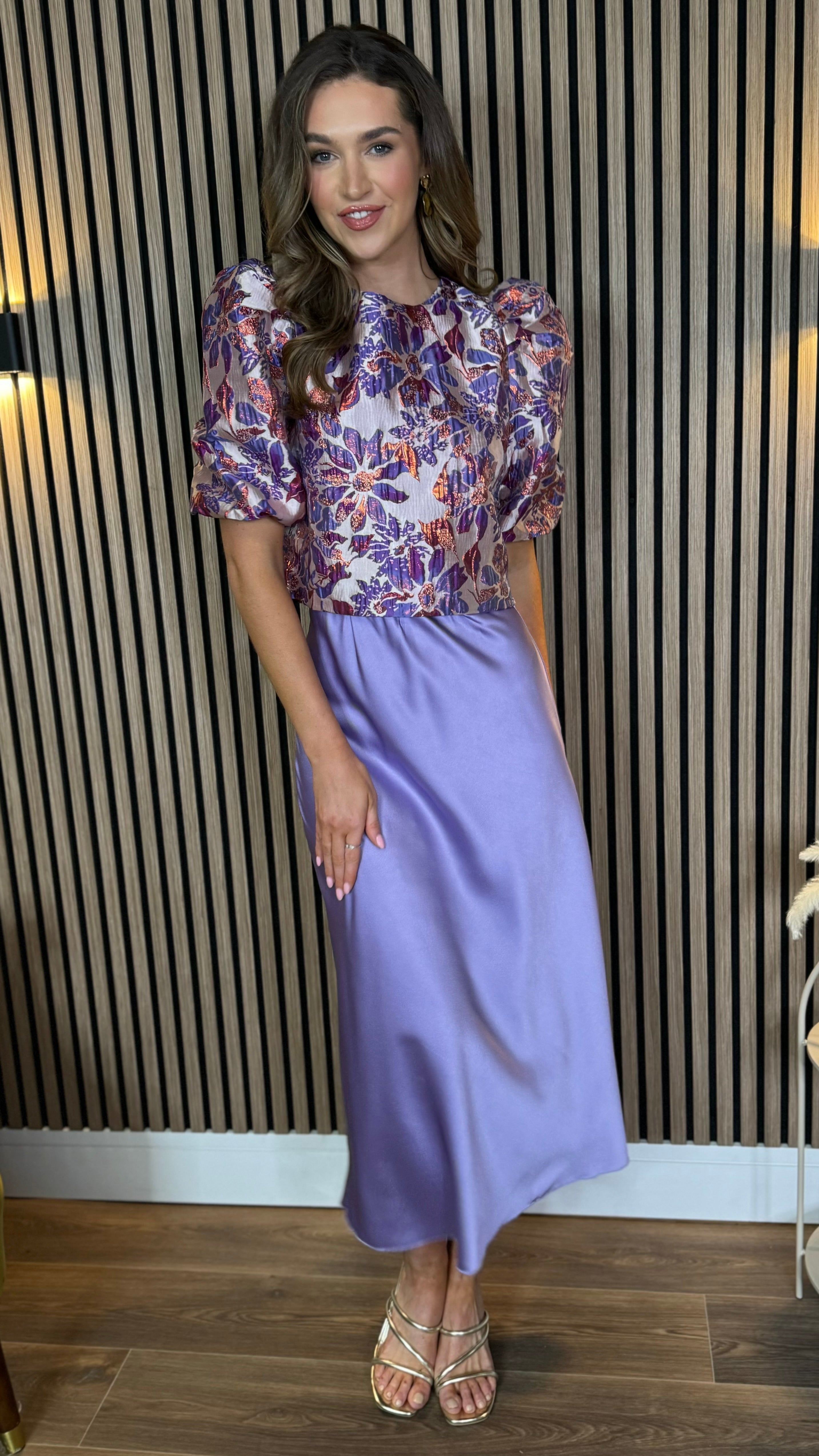 Harper Purple & Orange Floral Printed Puff Sleeve Top