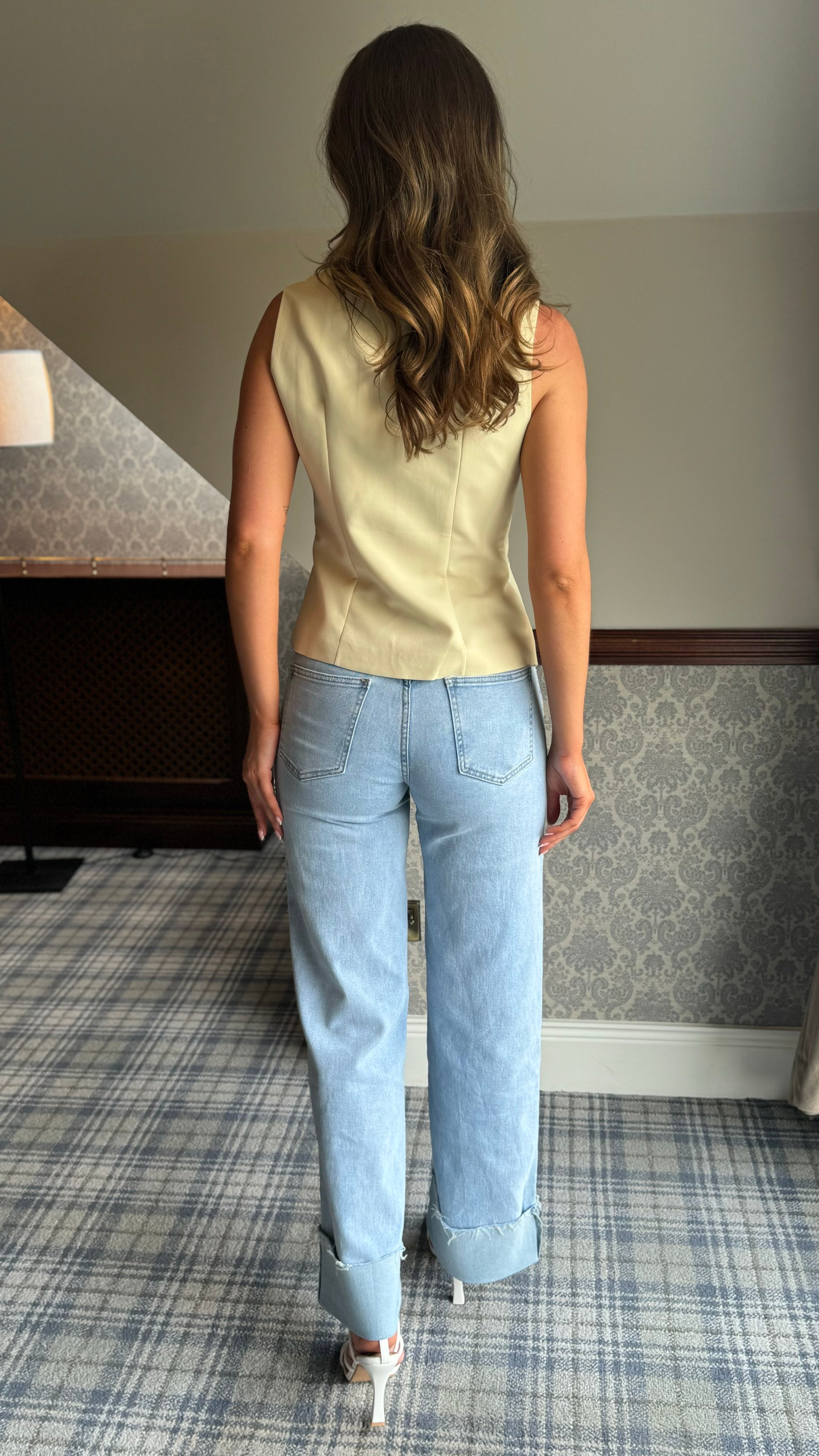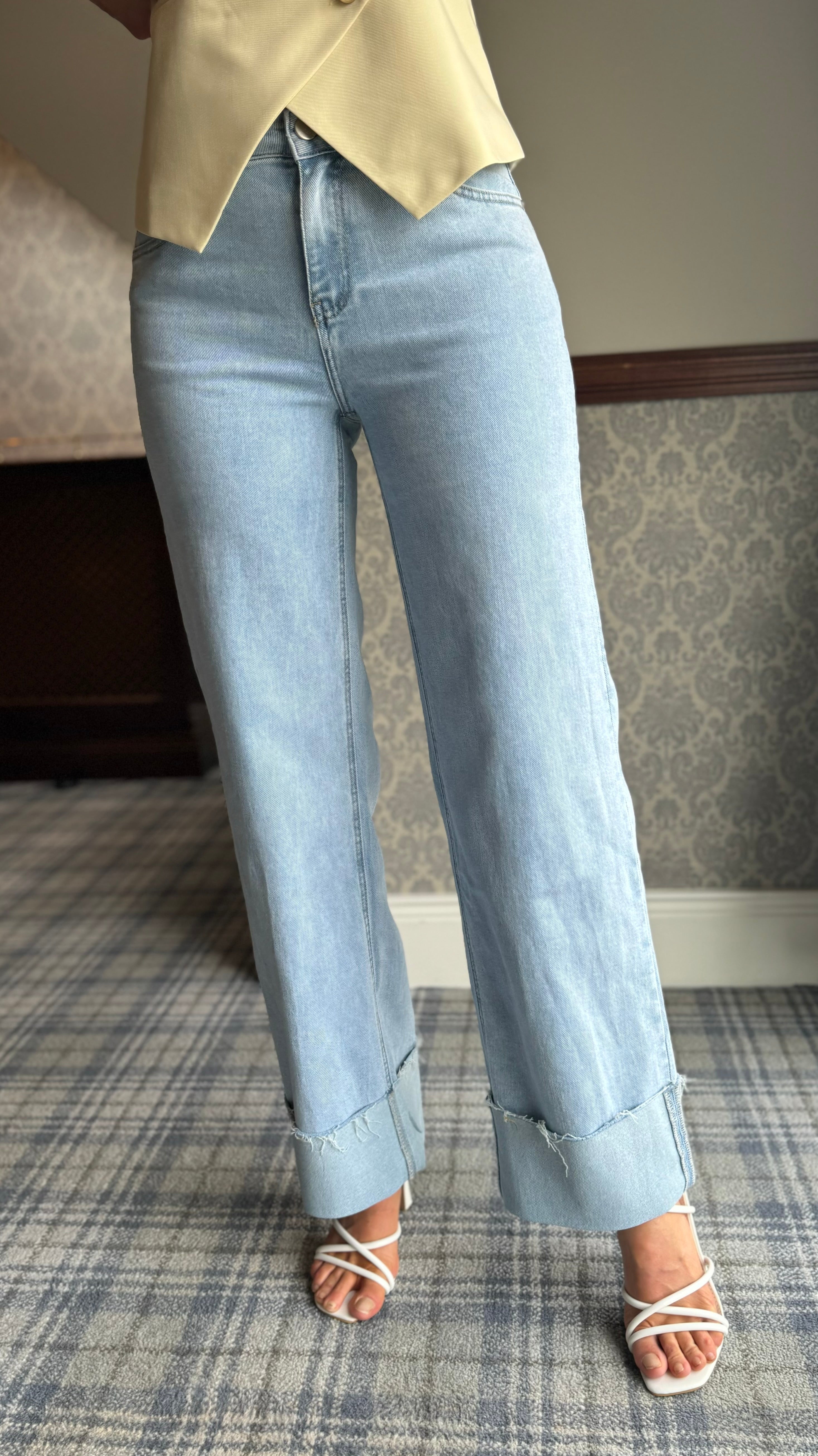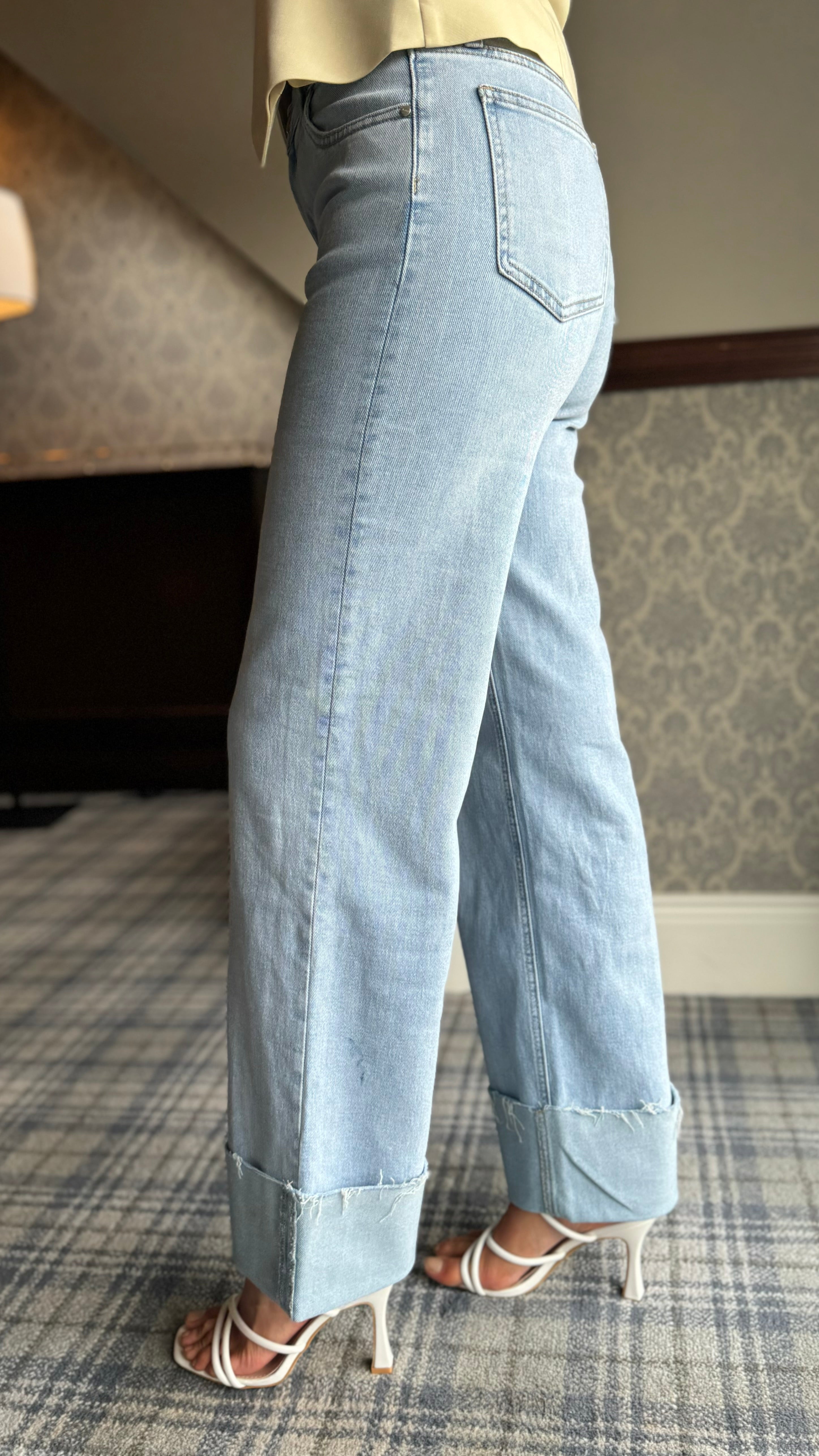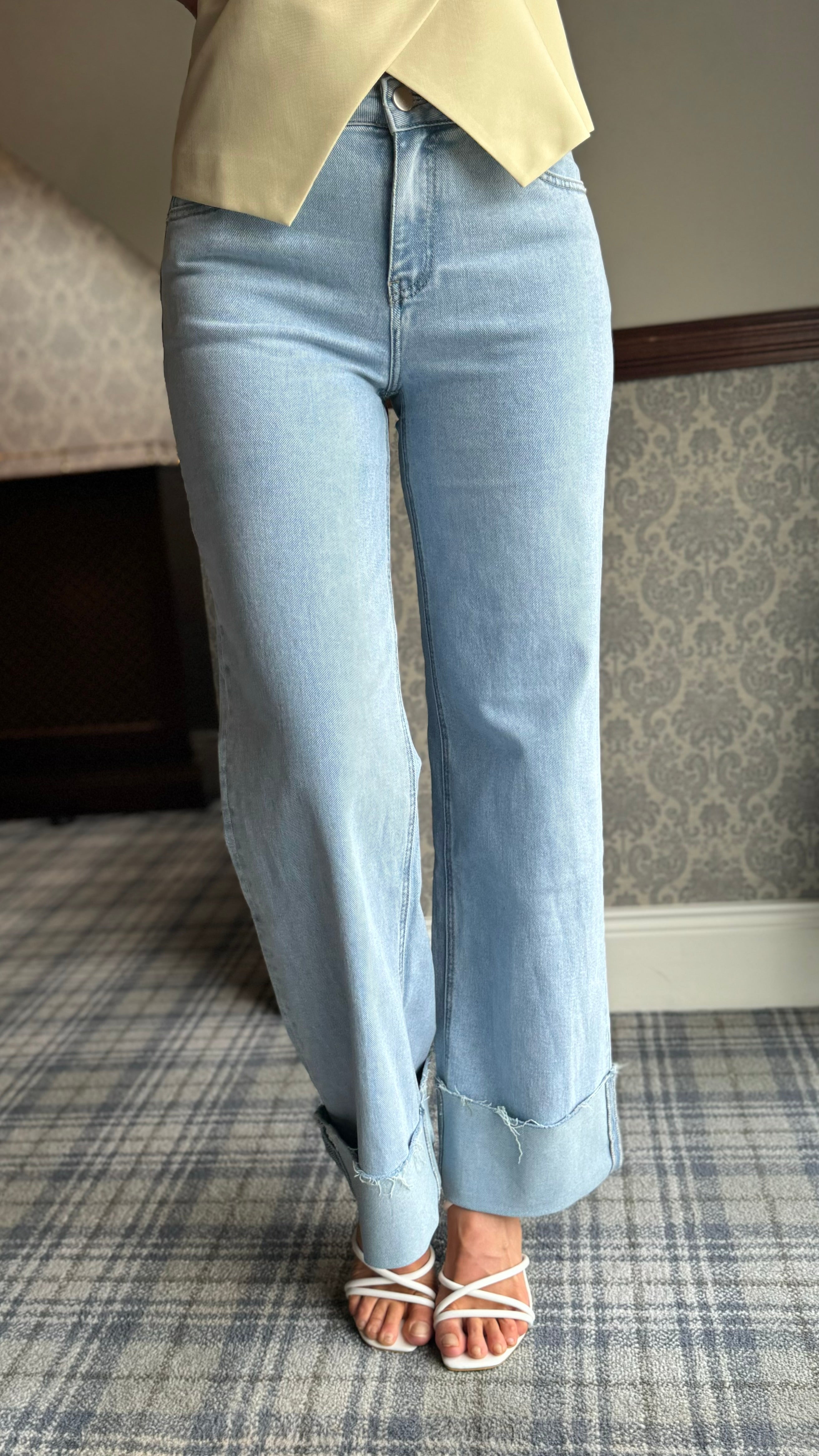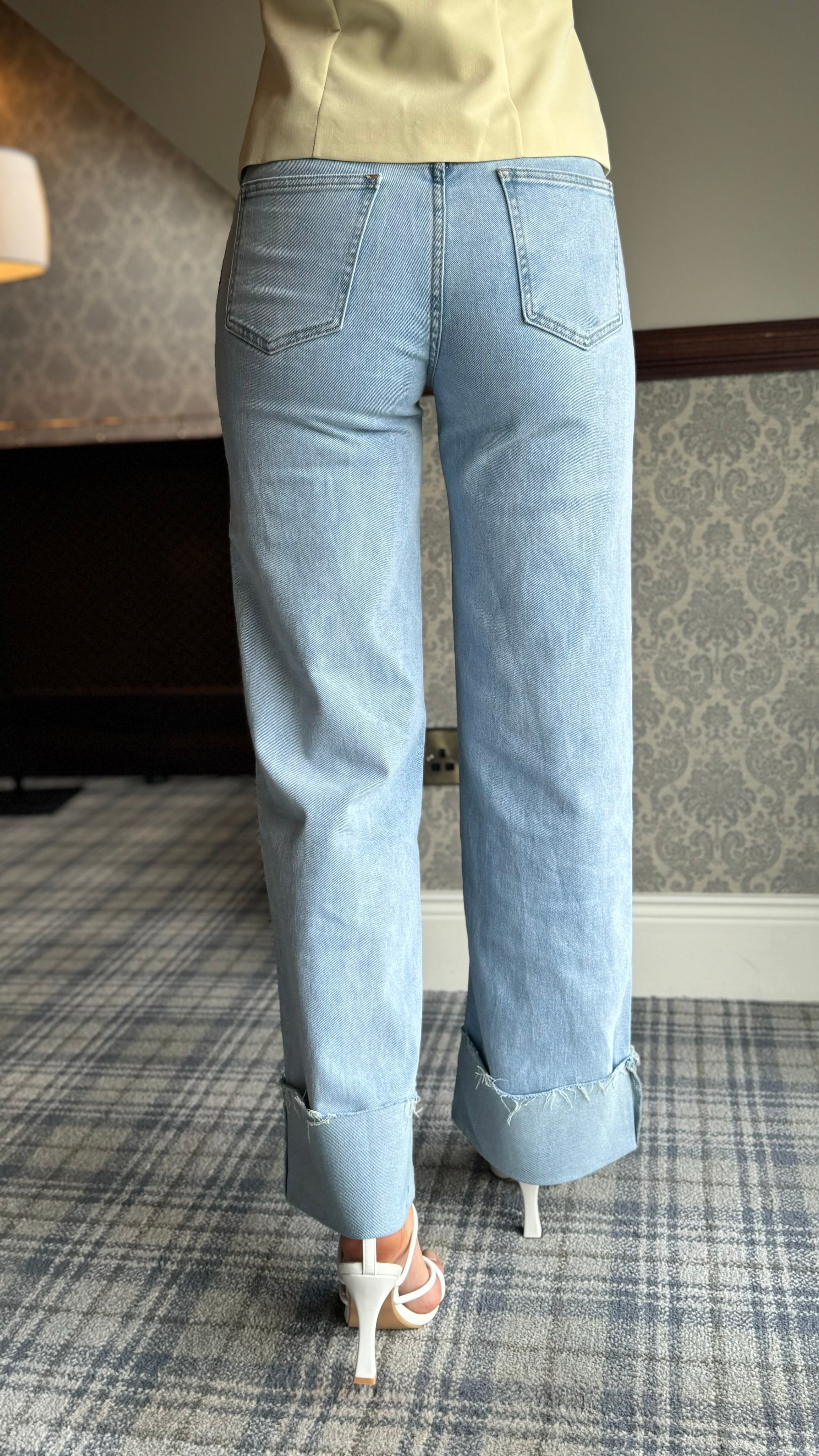 Huxley Light Blue Wide Leg Turn Up Detail Jeans