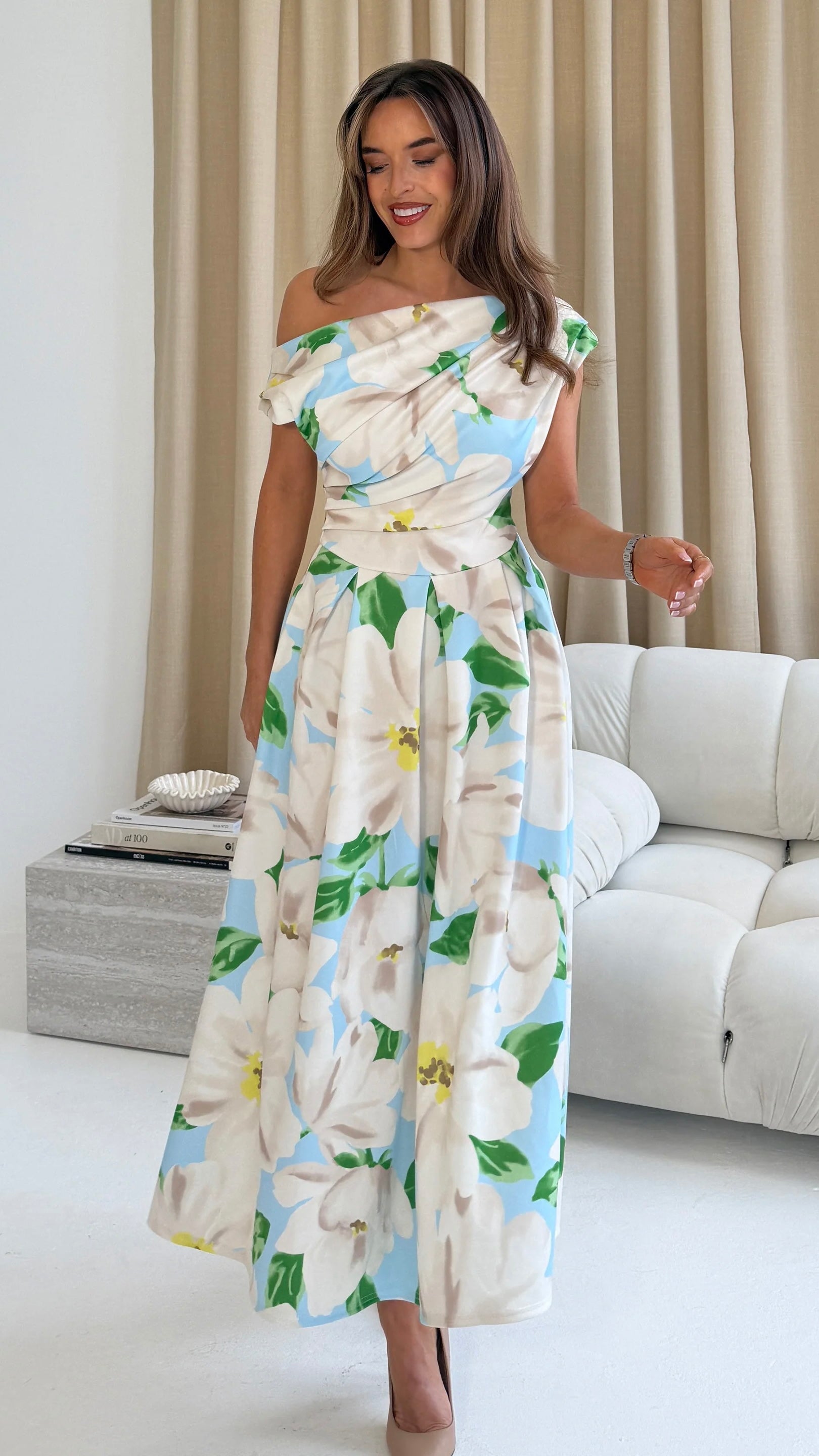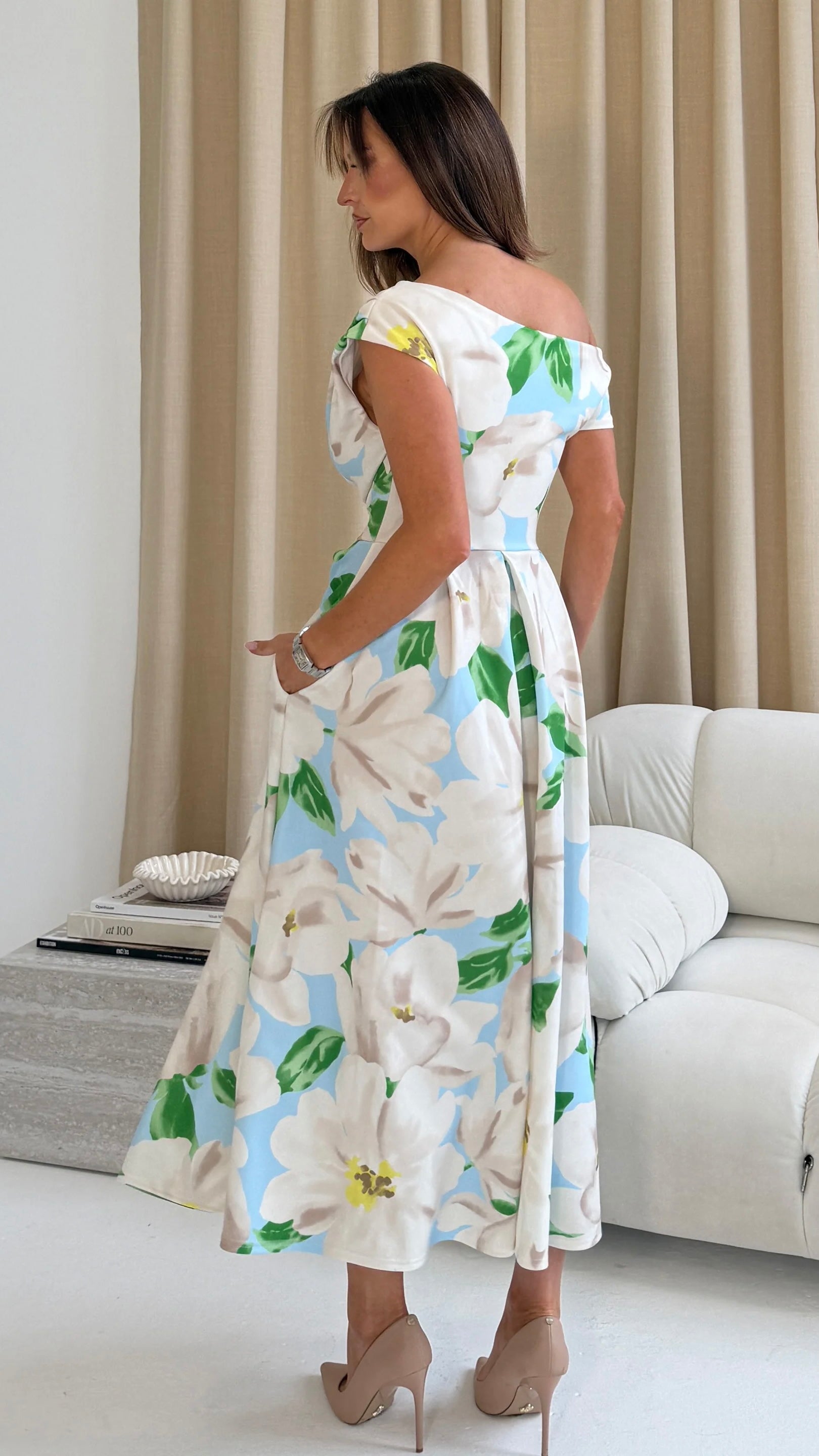 Turn heads with the Jezebel Light Blue with White Floral Details Asymmetric Neck Skater Dress. Featuring a fun asymmetric neckline and a flattering skater skirt, it brings playful charm to any occasion. The concealed zip fastening keeps your silhouette sleek, while handy pockets add a touch of practicality to this flirty, vibrant dress. Perfect for dancing the night away or a spontaneous adventure!