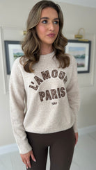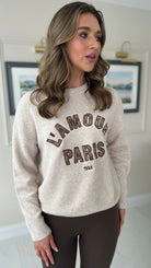 Cozy up in the Jill Beige Slogan Printed Jumper, featuring a comfy round neckline and snug ribbed hem and cuffs. Its soft, cosy fabric makes it perfect for lounging or layering in style, adding a fun twist to your casual wardrobe.