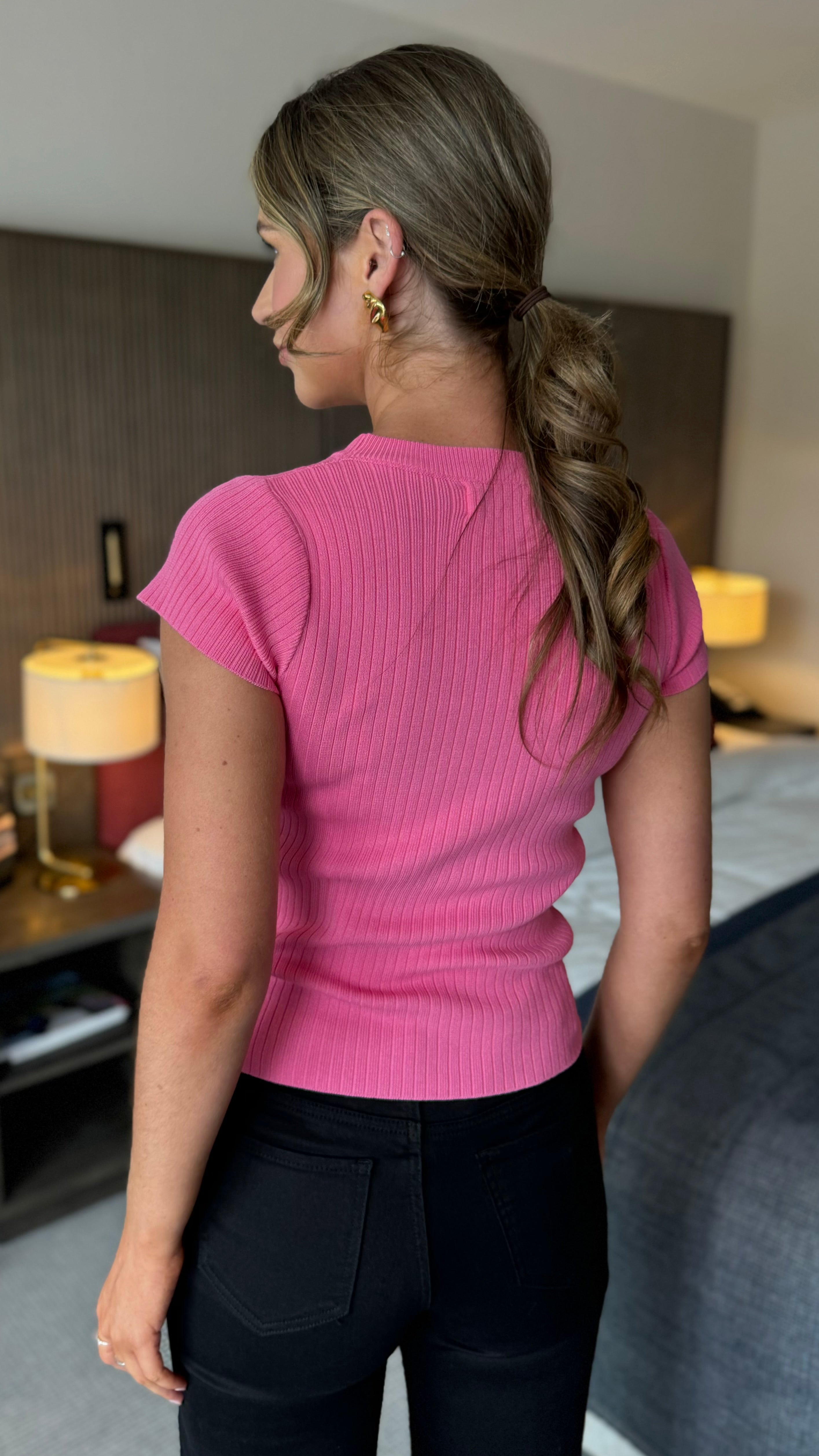 Jimena Fuchsia Ribbed Short Sleeve Round Neck Top