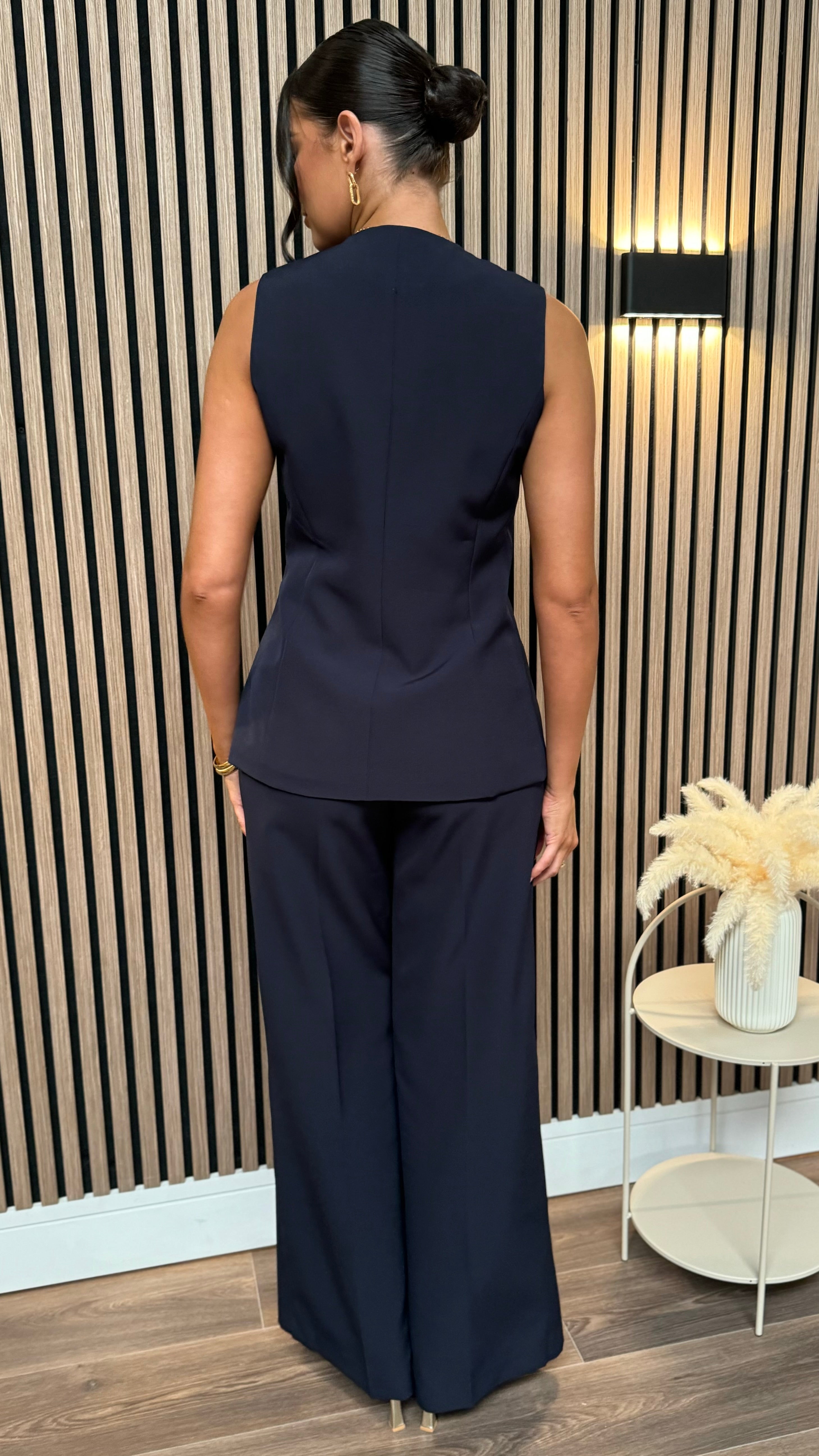 Shop the matching trousers: https://getthattrend.com/products/ashton-navy-wide-leg-flare-detail-trousers