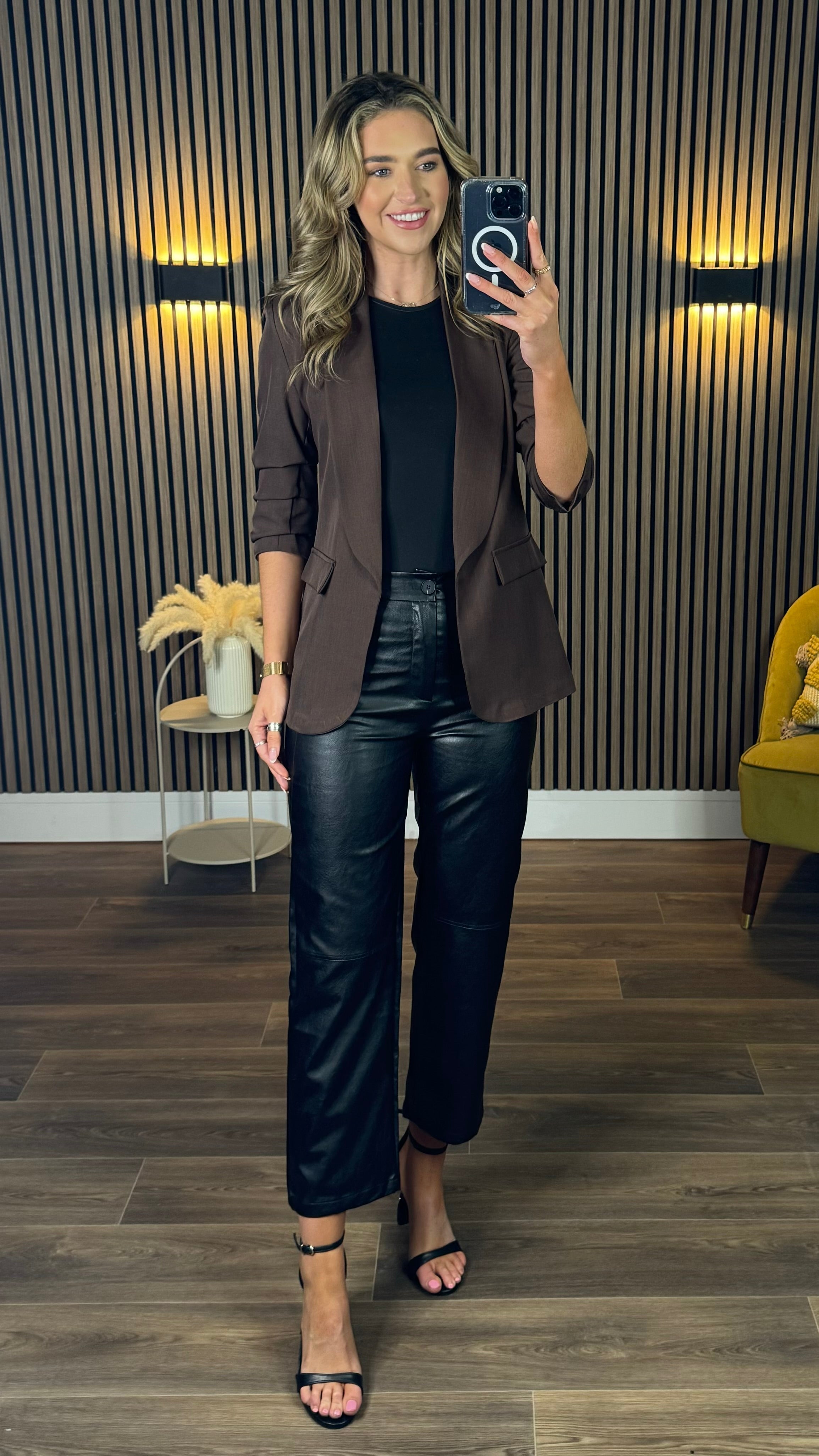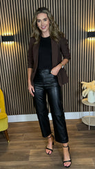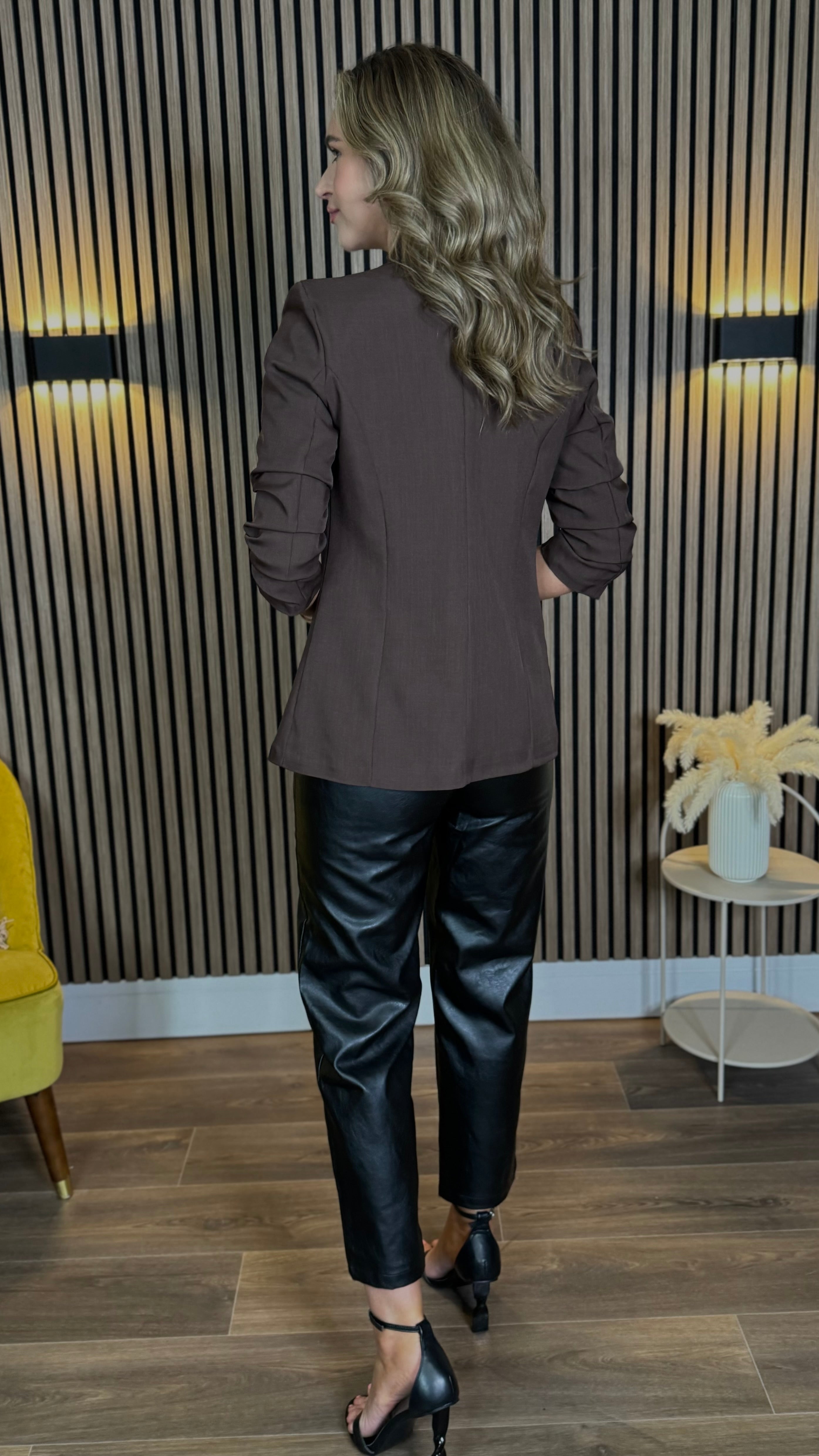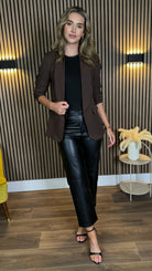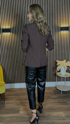 Joy Dark Brown Ruched Sleeve Blazer