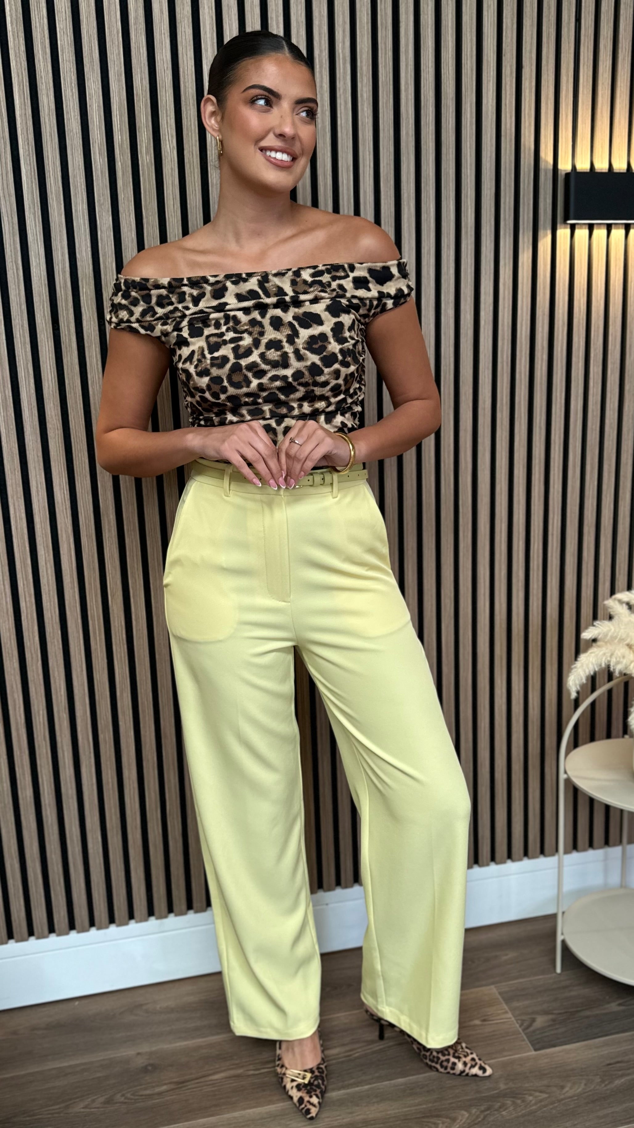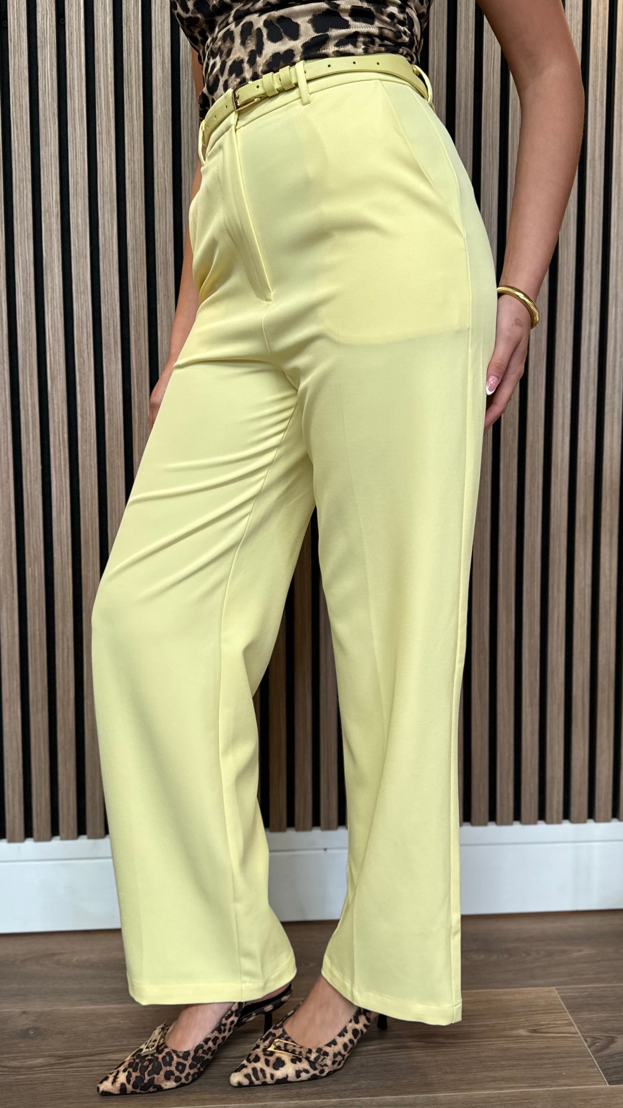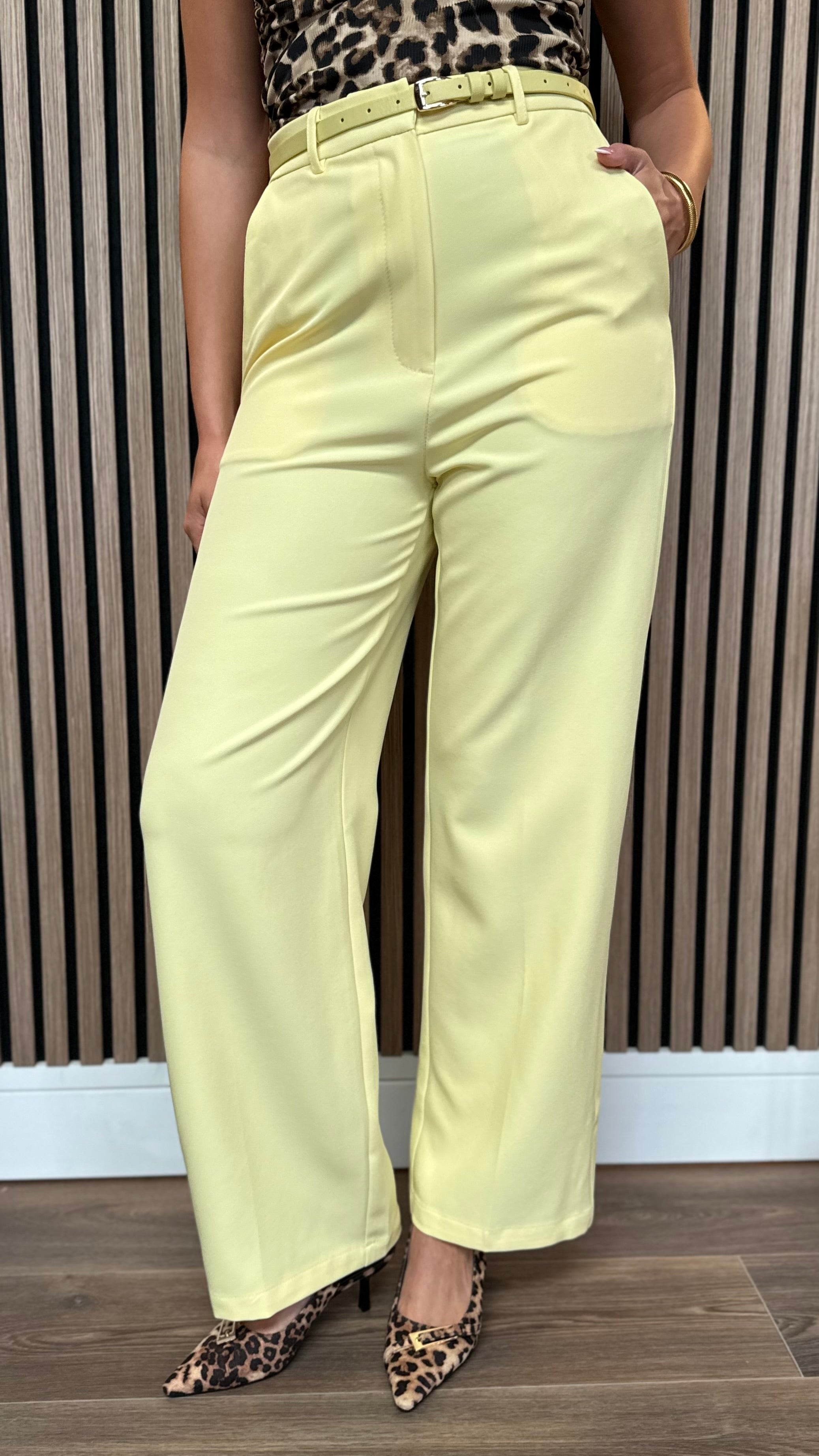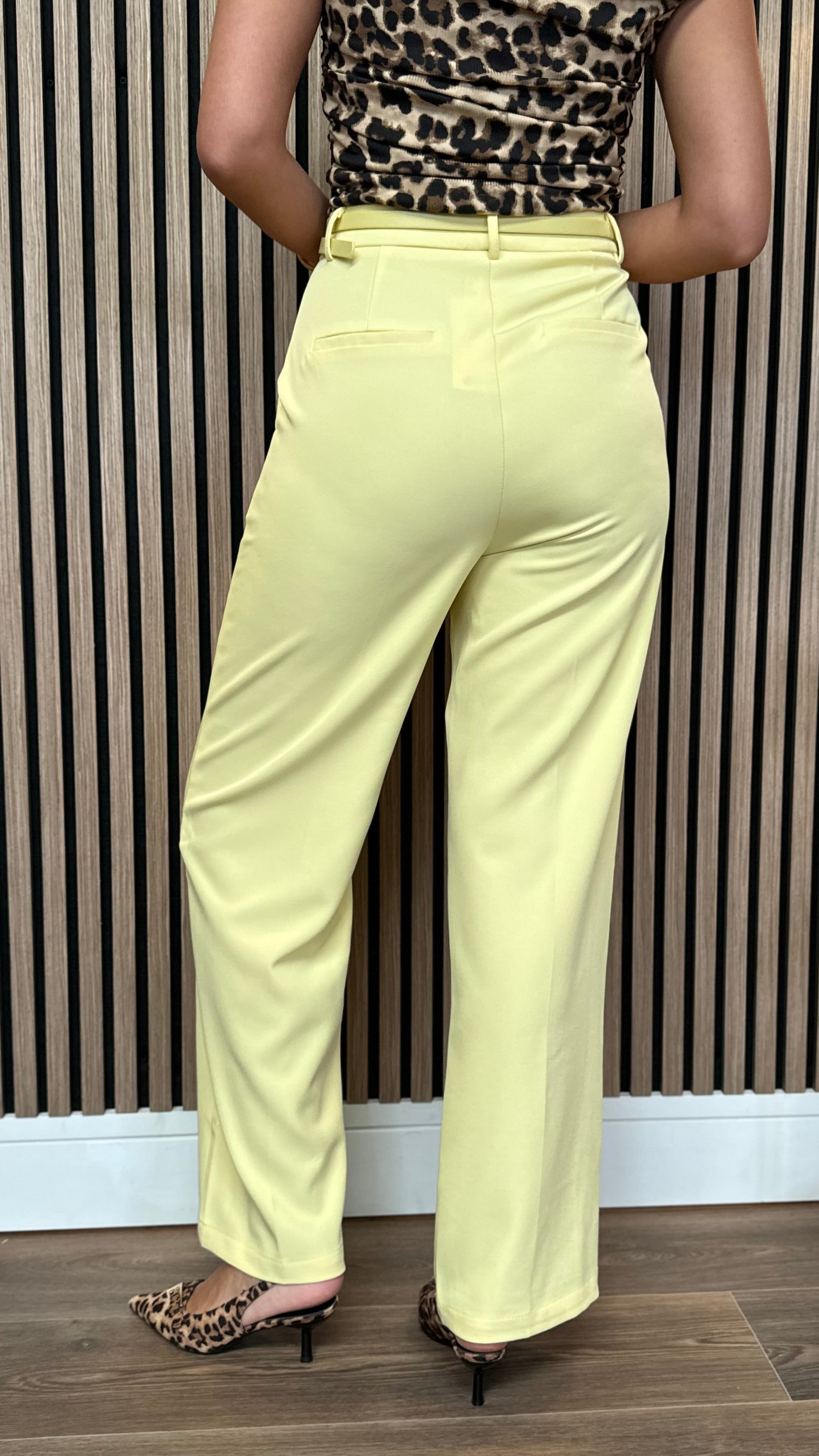 Elegantly crafted yellow trousers featuring a refined straight leg silhouette. These tailored Kalie trousers offer timeless sophistication with a contemporary edge. Perfect for elevating your professional wardrobe or adding polished charm to casual ensembles.