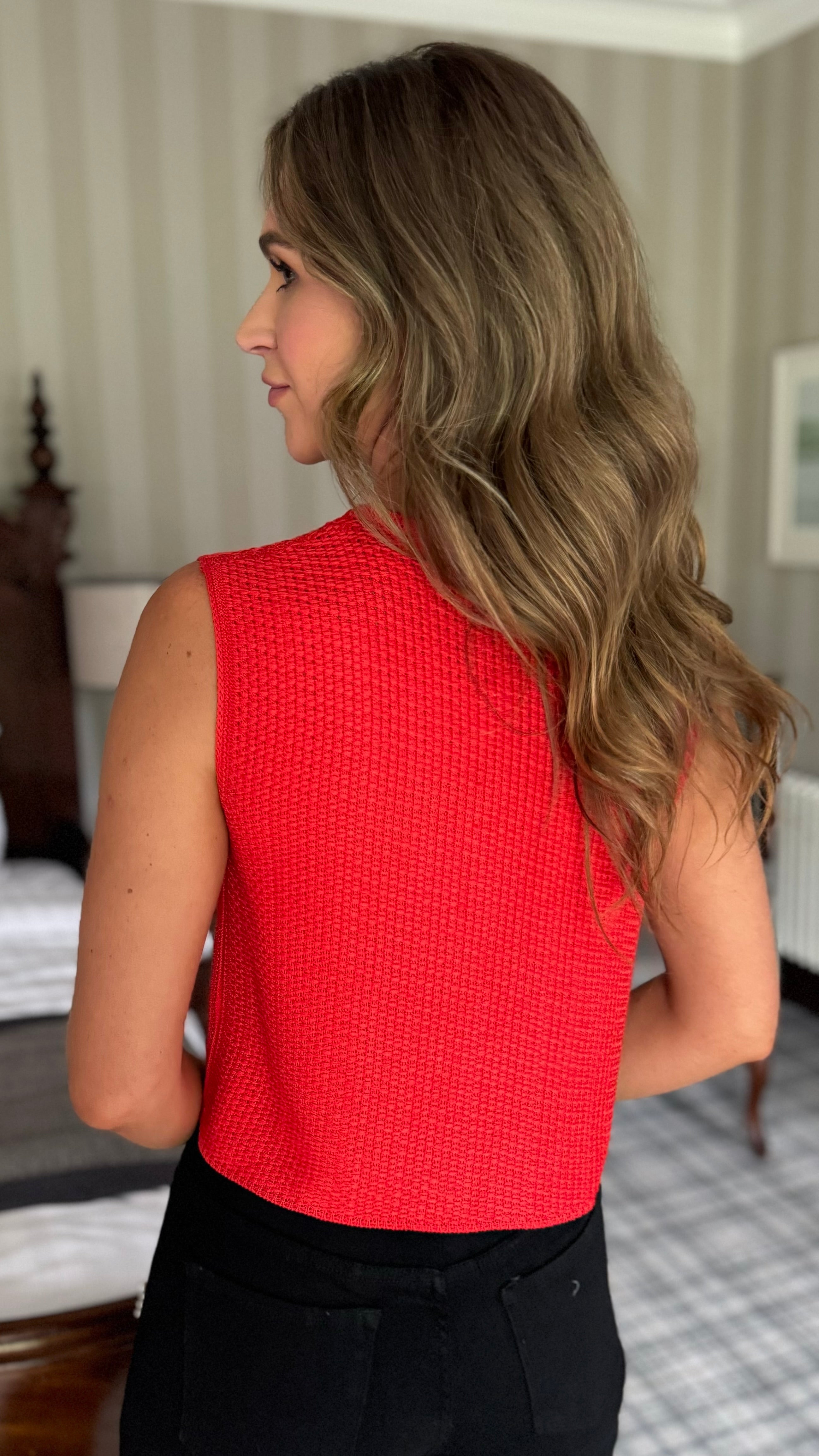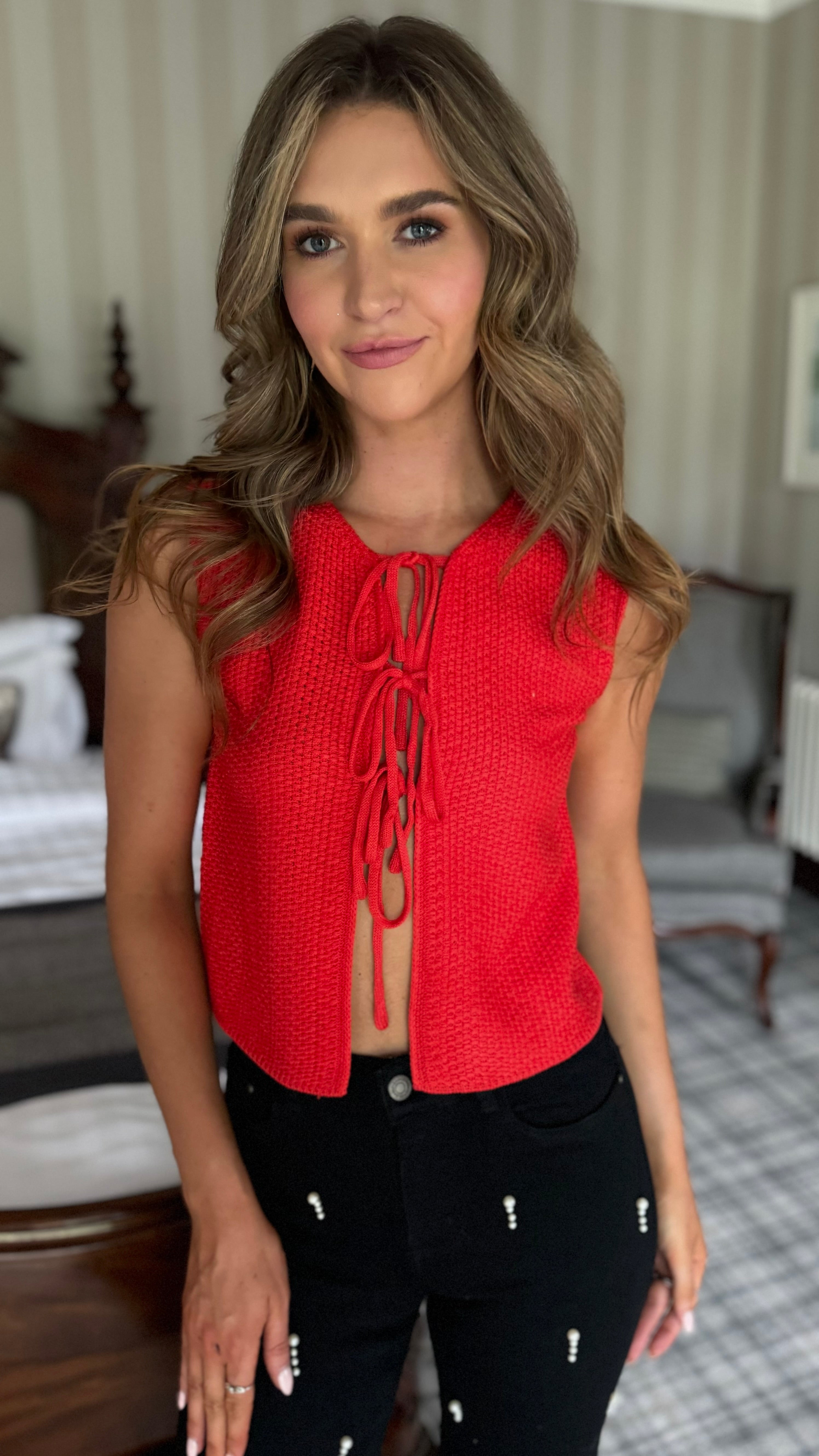 Add a pop of fun to your outfit with the Kallie Red Knitted Tie Detail Waistcoat! 🎀 This vibrant red waistcoat features a charming tie detail that lets you play with your style. Cosy knitted fabric keeps you comfy while turning heads. Perfect for layering and adding a splash of colour to any look! 🔥✨