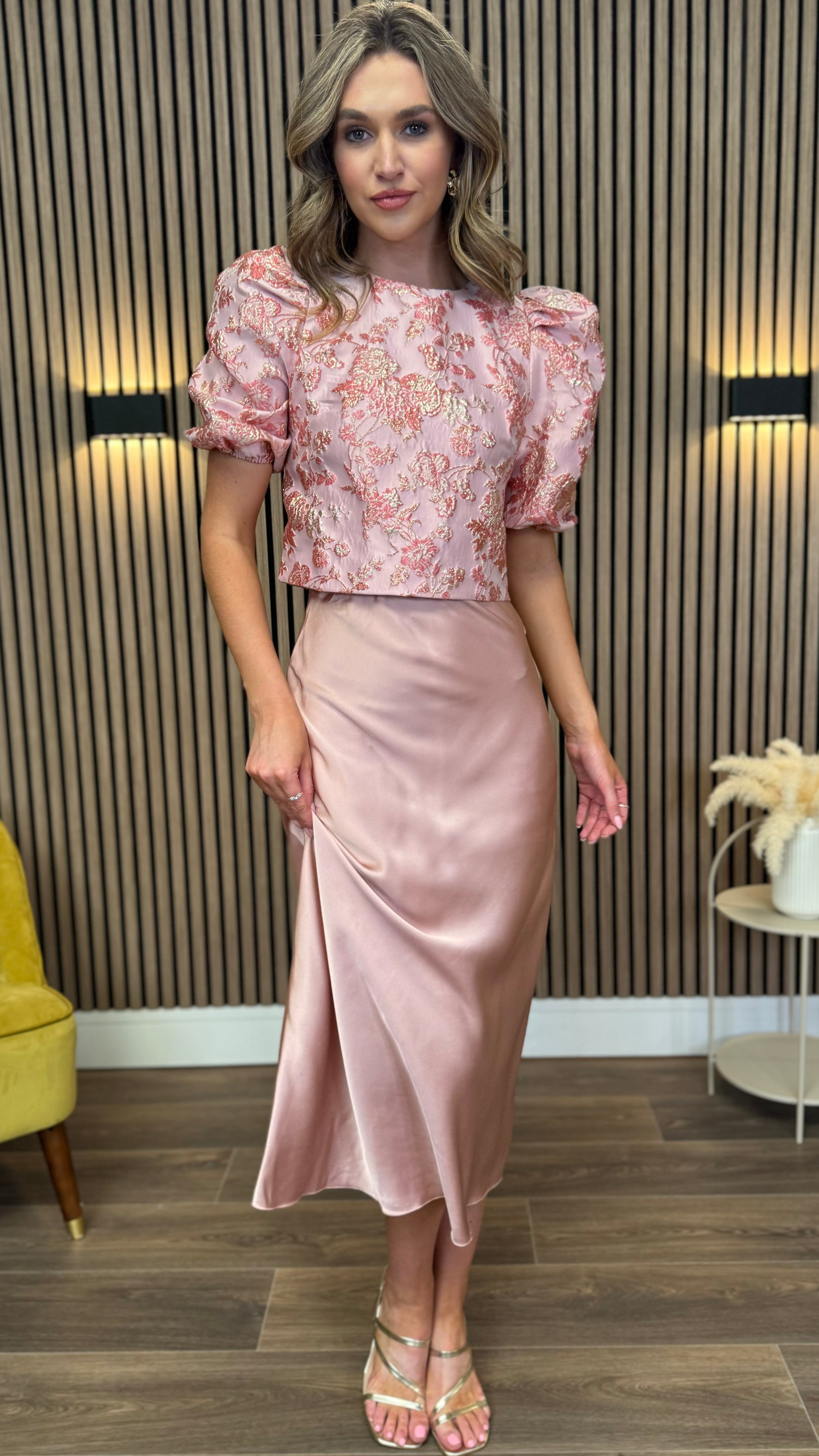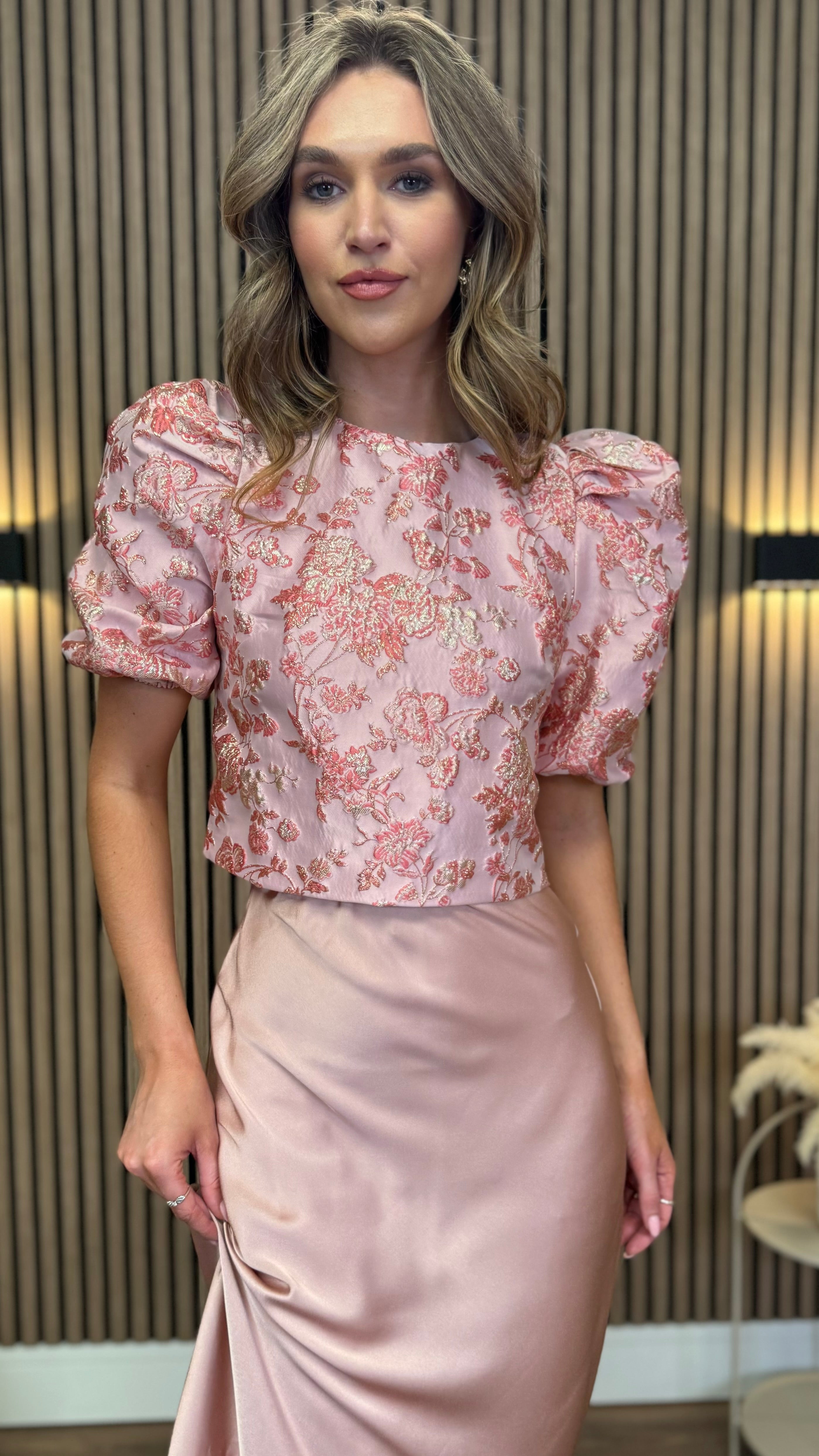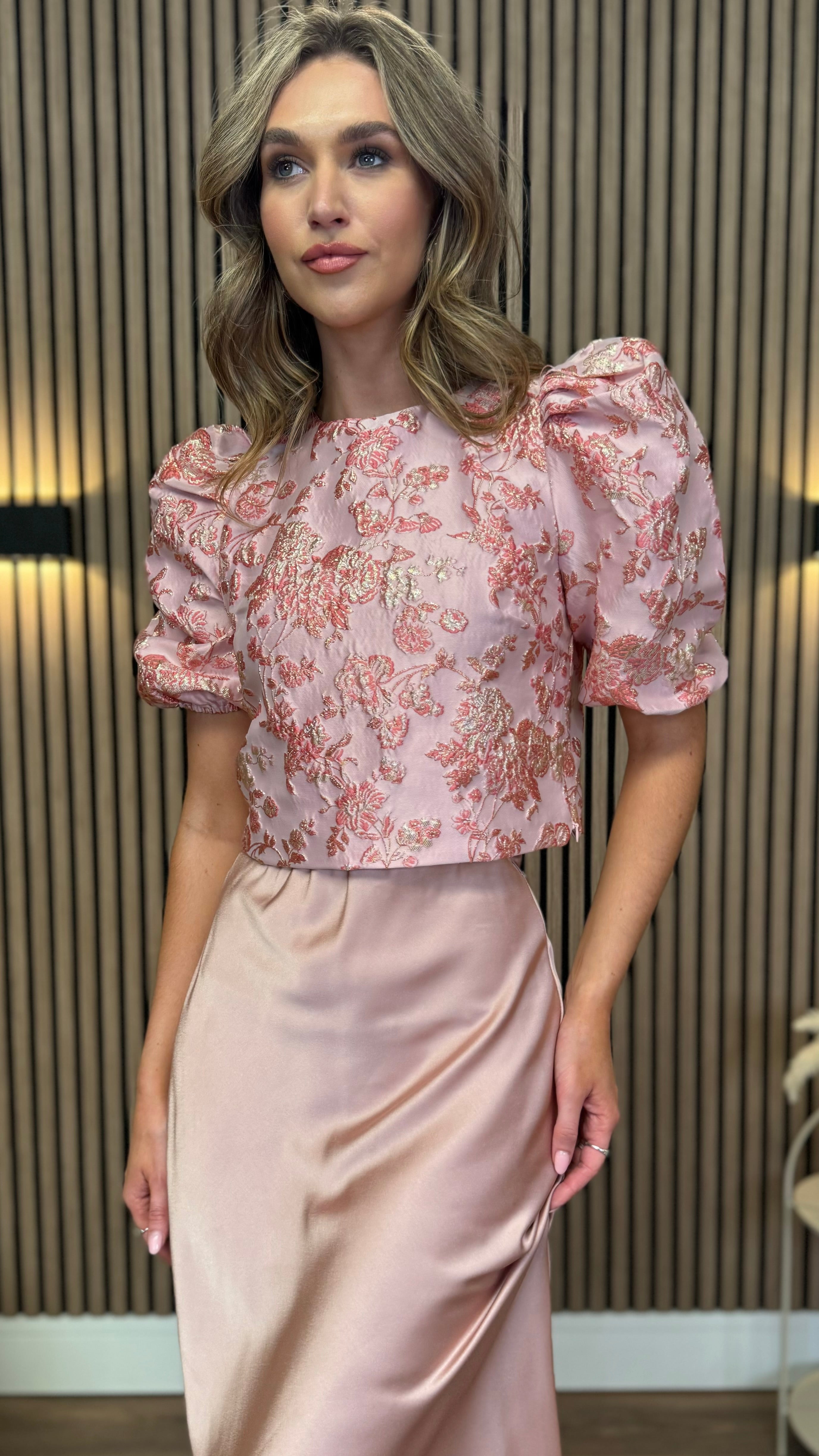 Keeley Pink & Gold Floral Printed Puff Sleeve Top