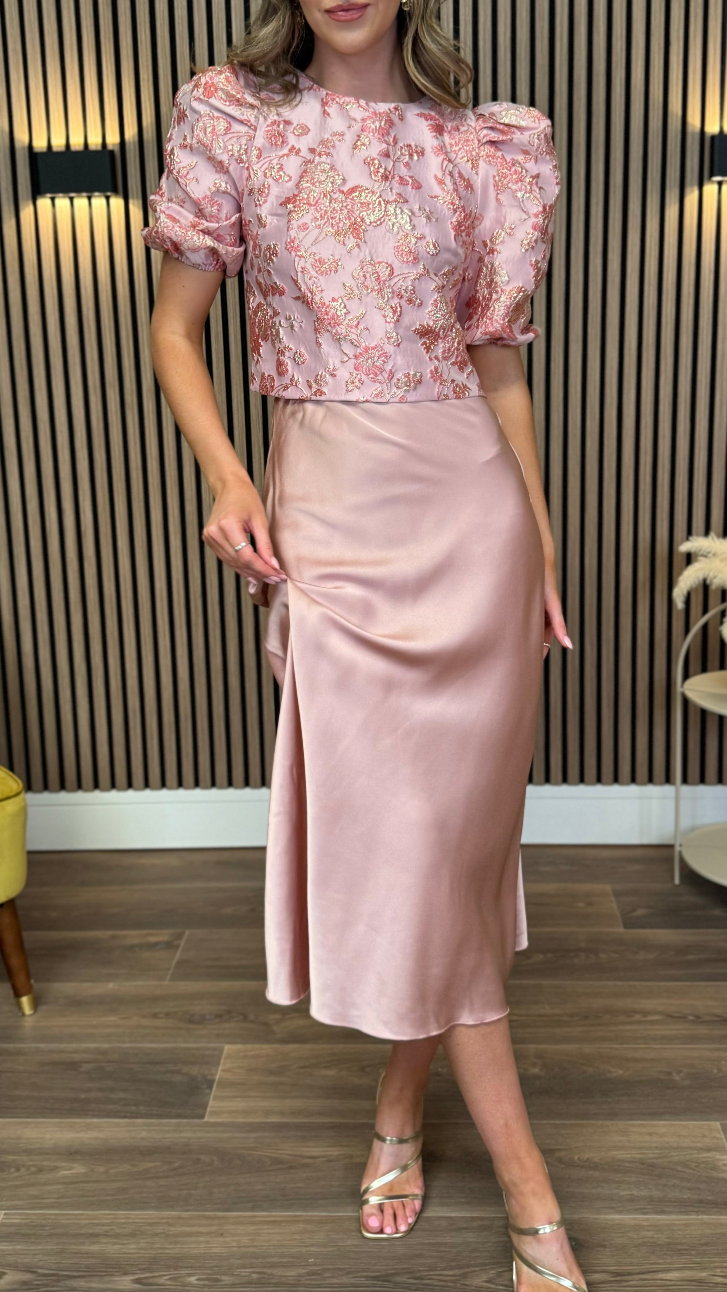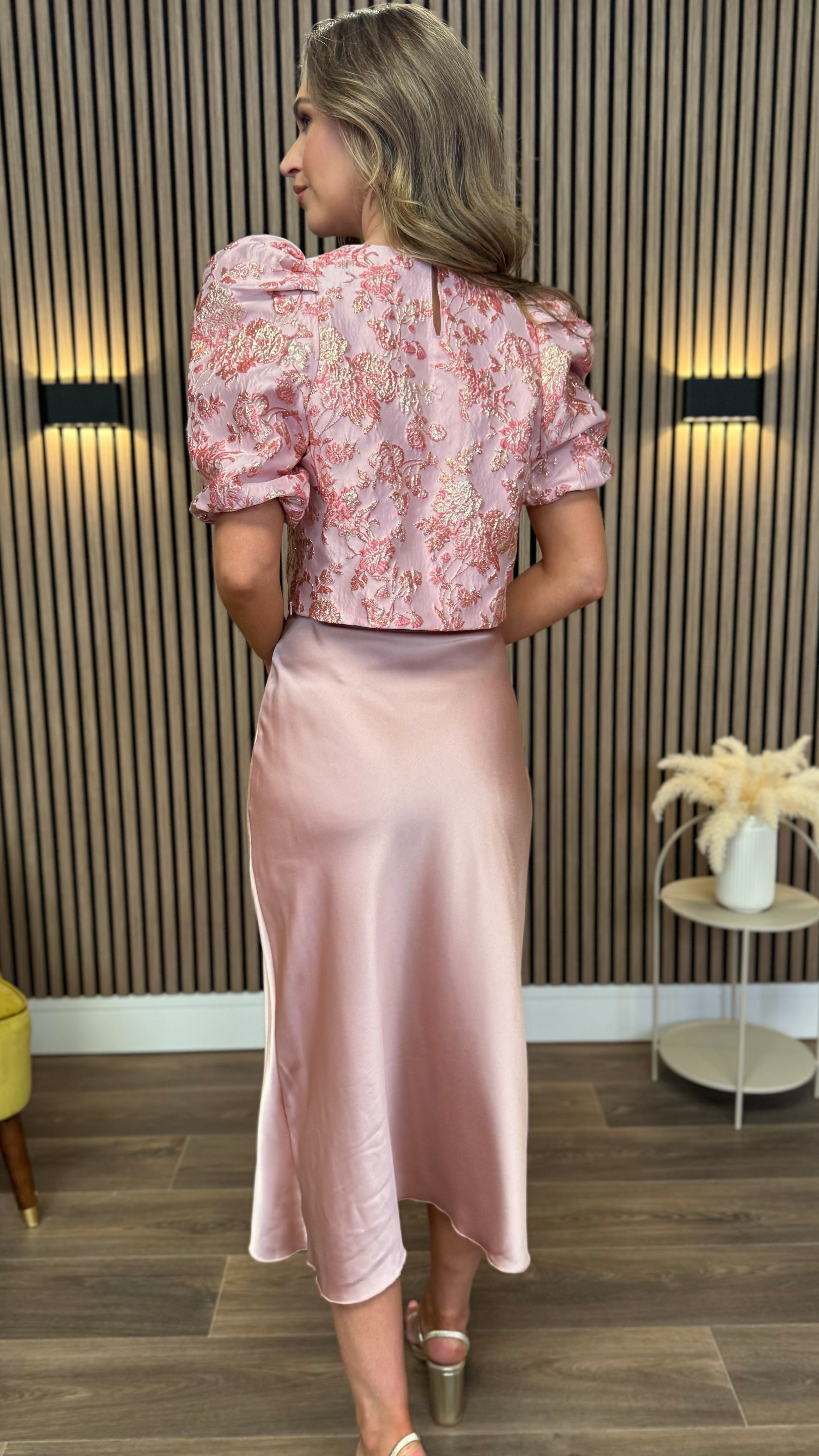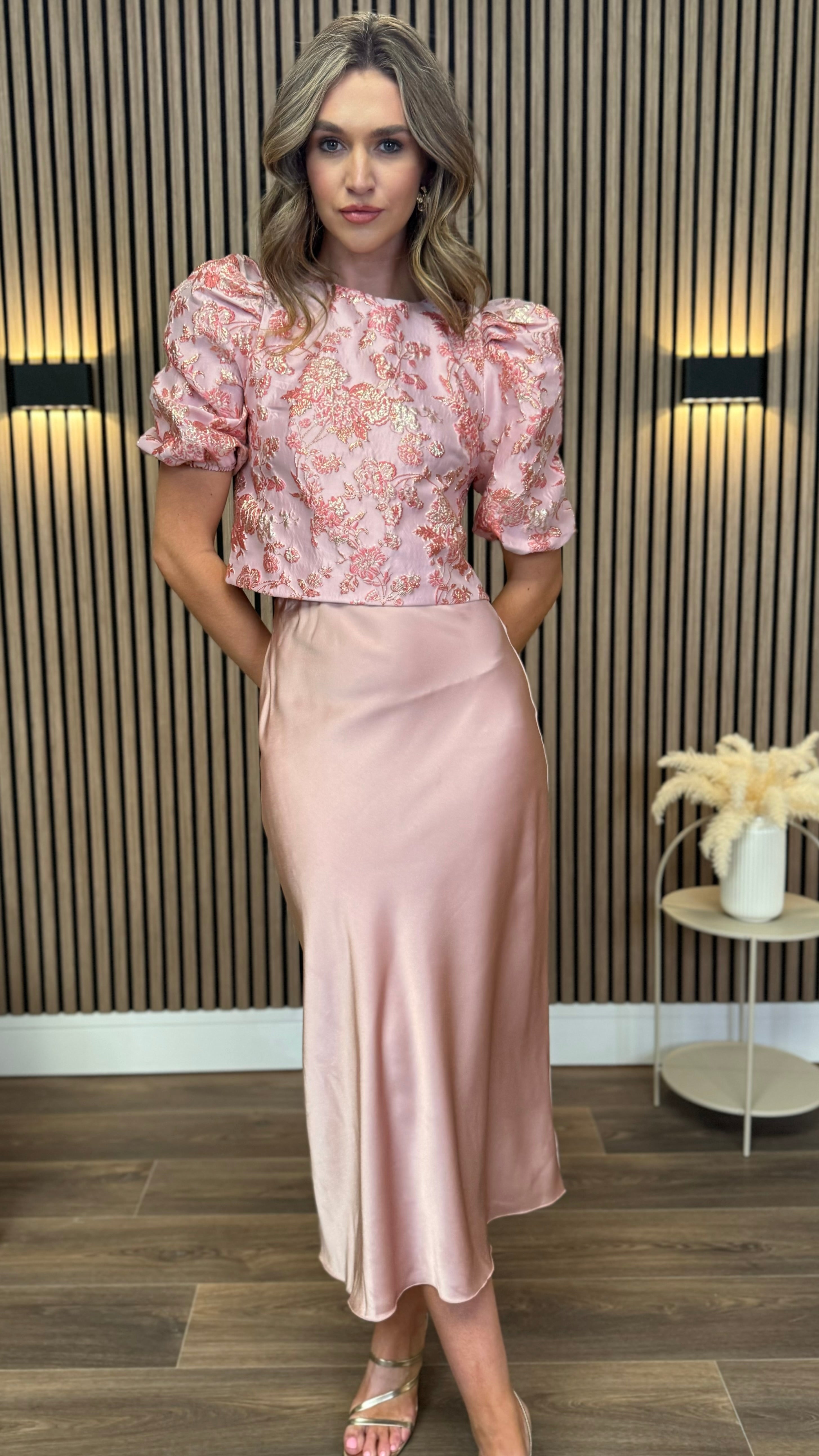 Keeley Pink & Gold Floral Printed Puff Sleeve Top