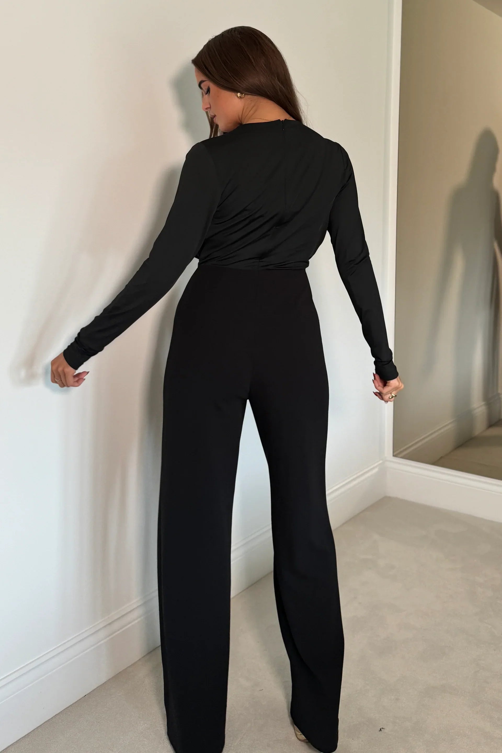 Kella Black Cowl Neck Long Sleeve Jumpsuit