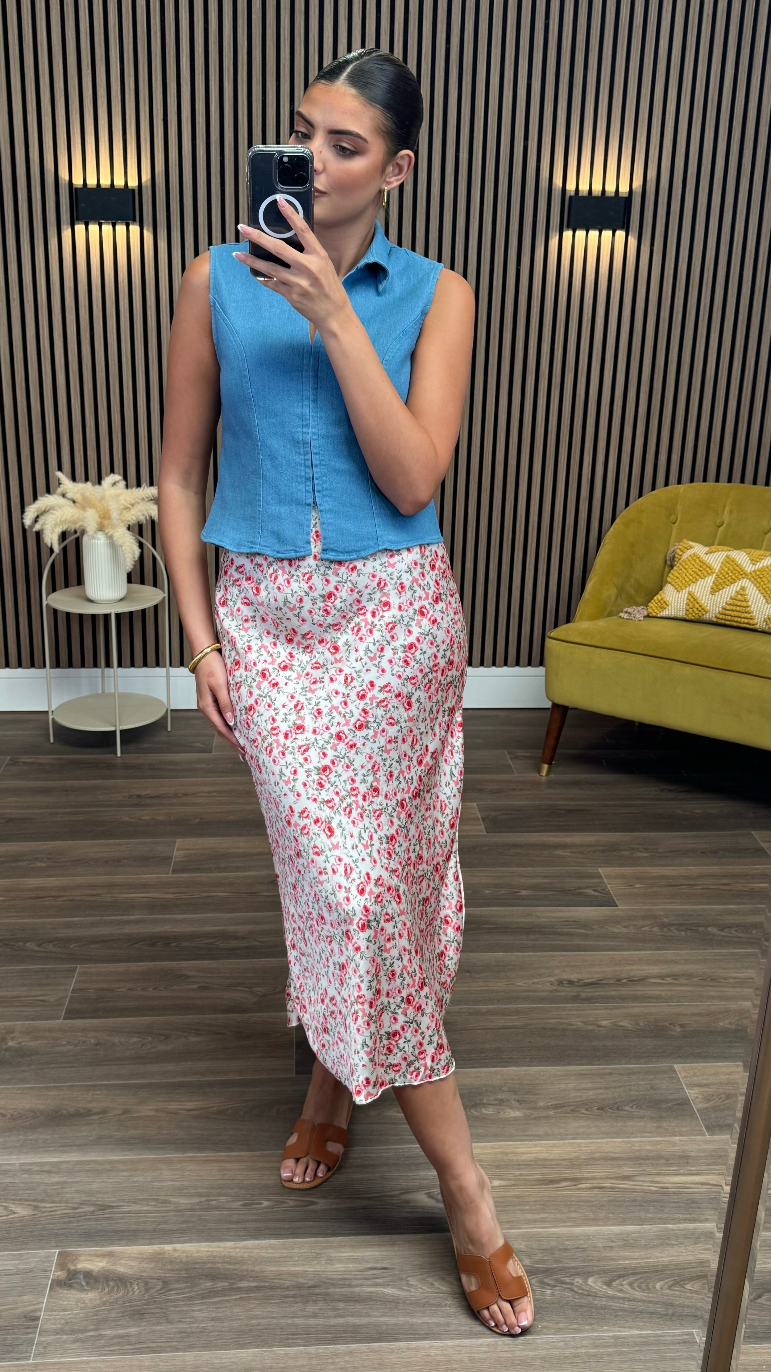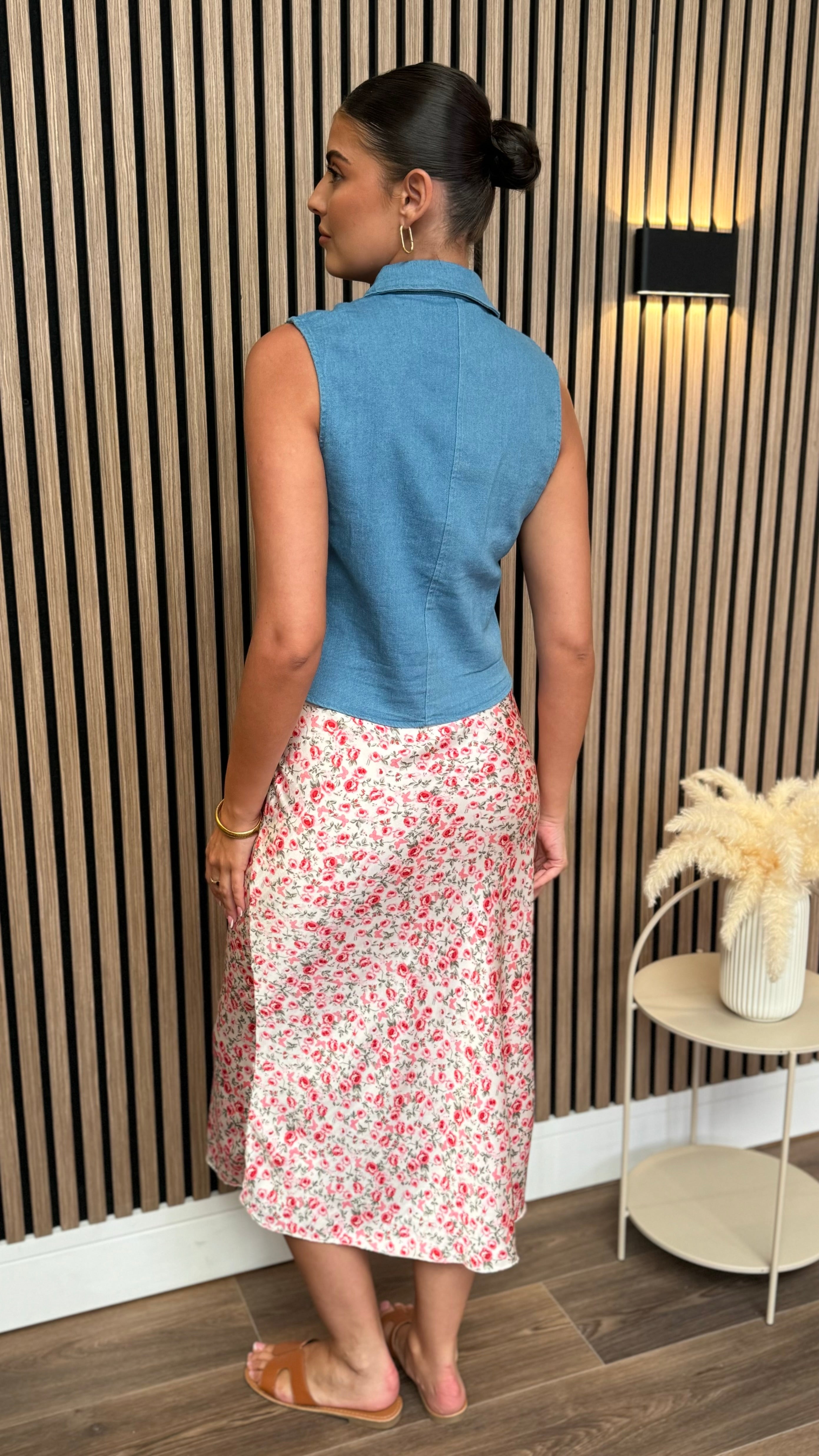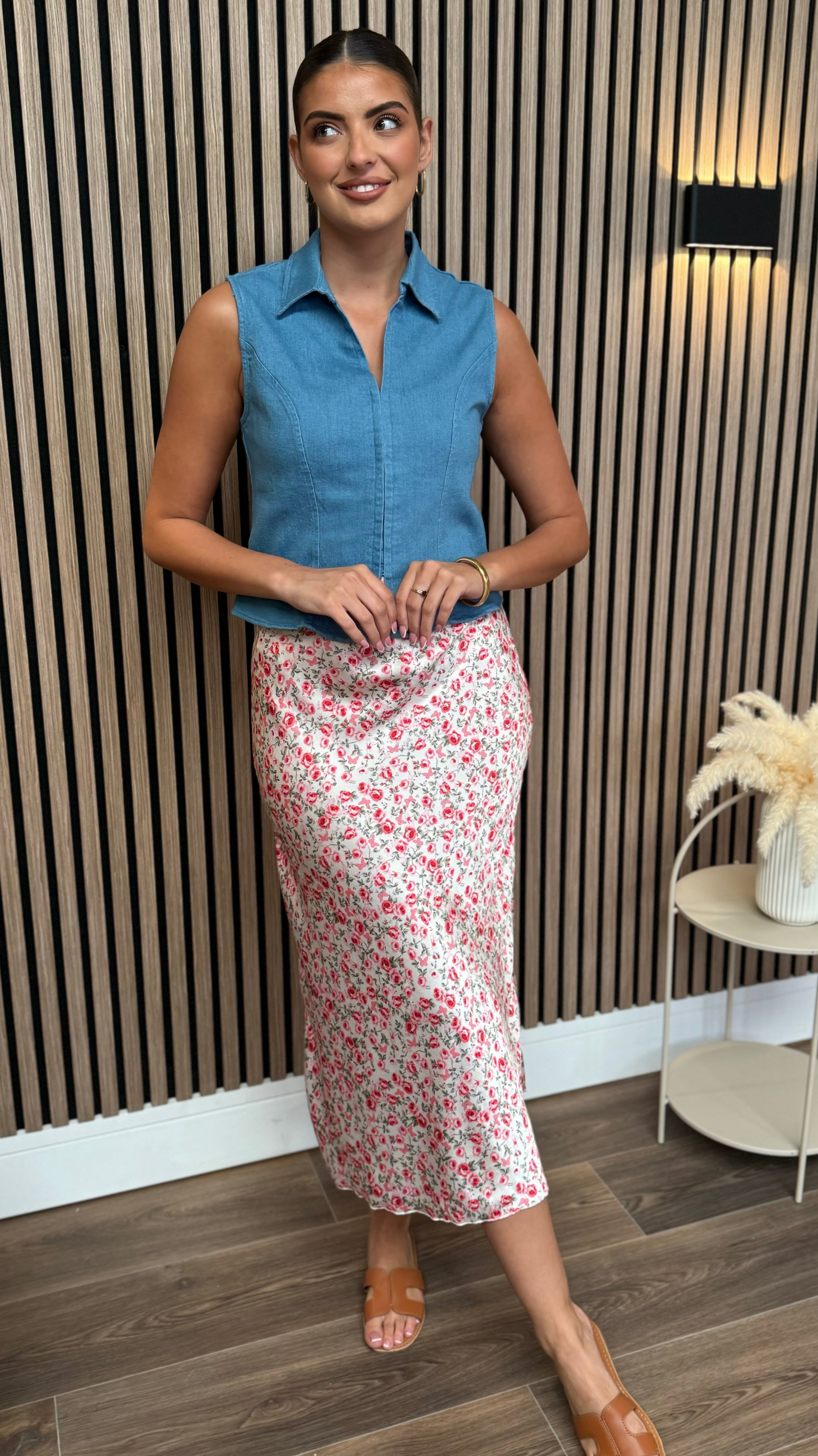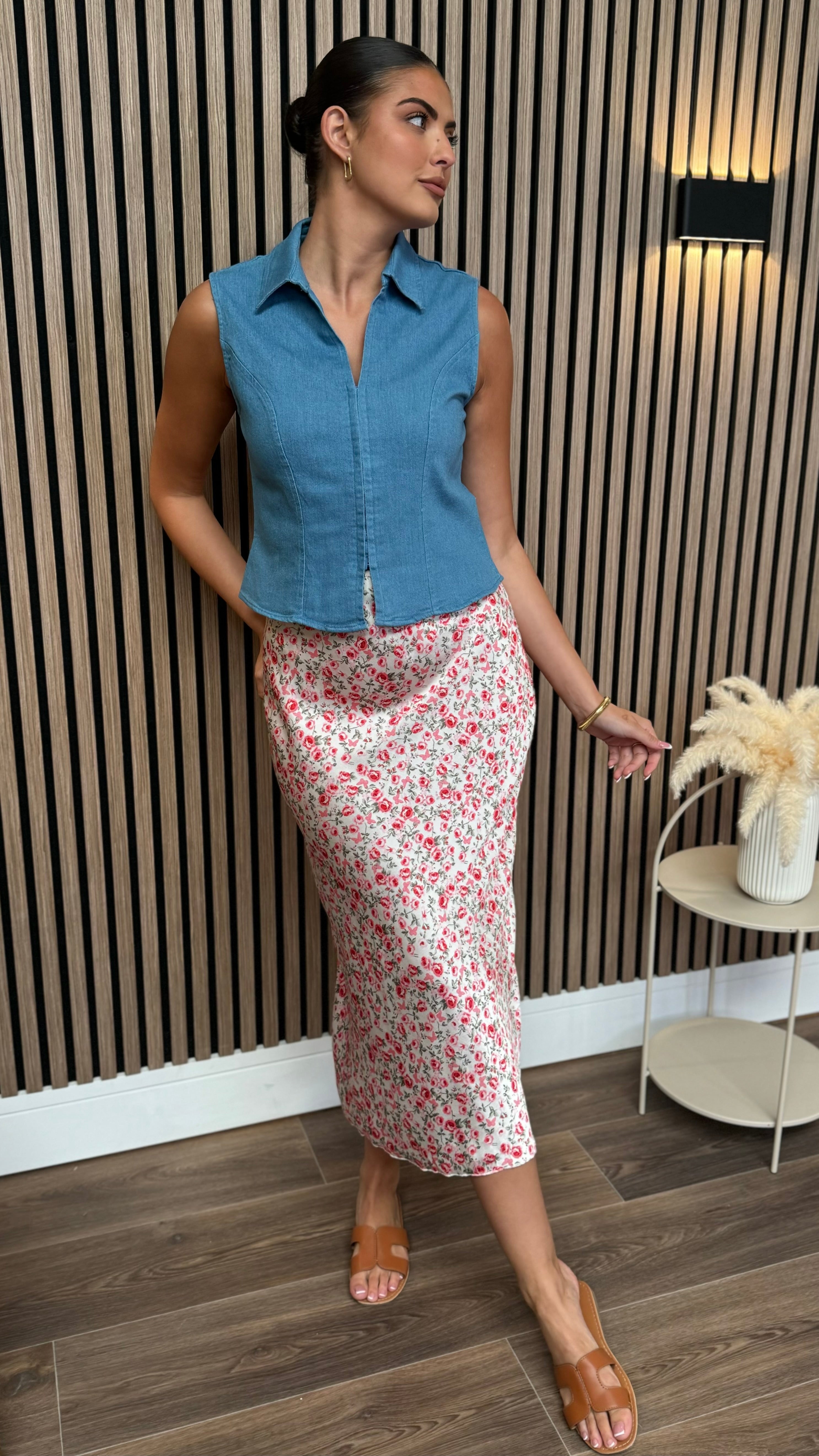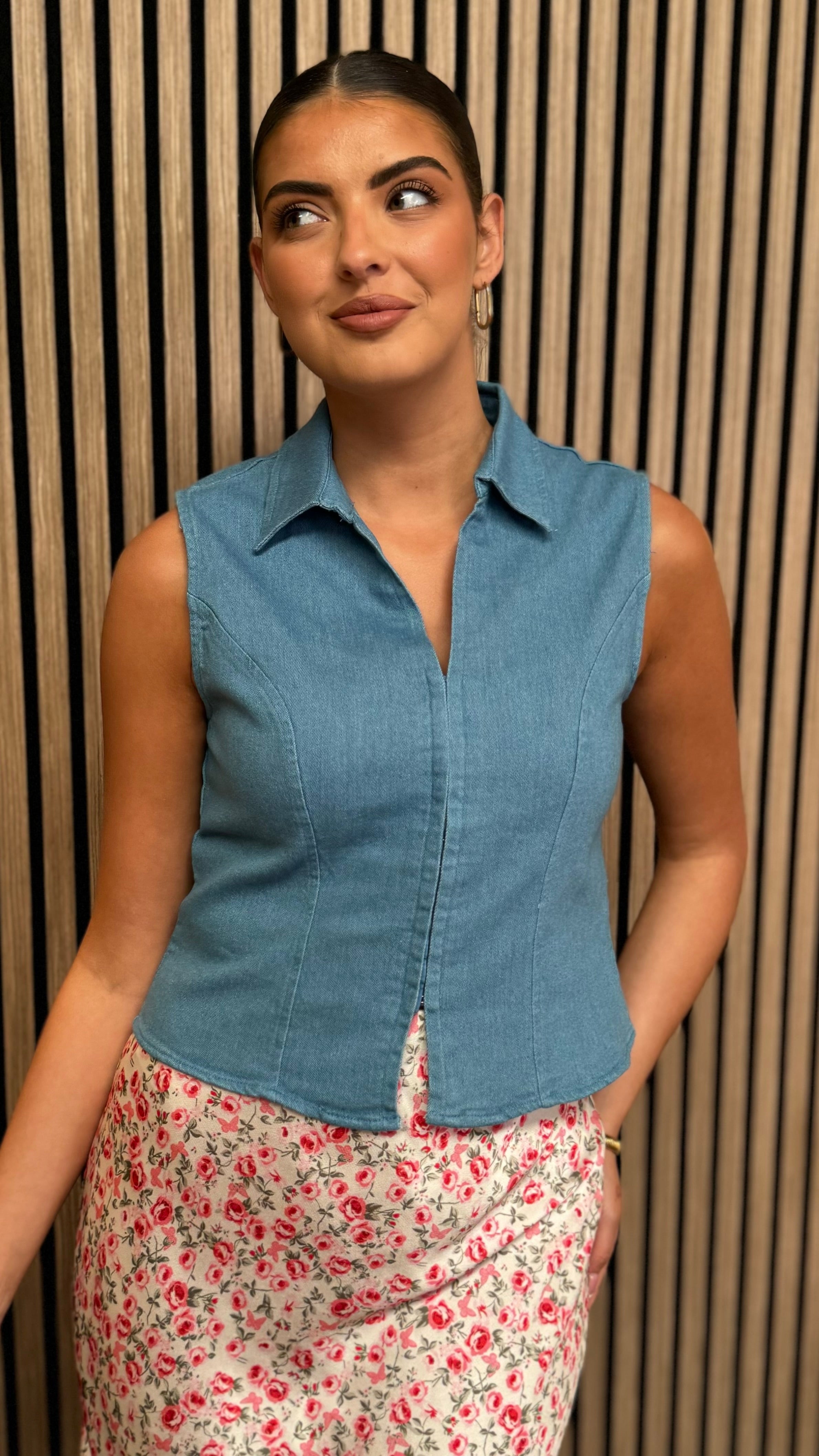 This Kirsty Blue Denim Waistcoat features elegant corset detailing for a refined silhouette. Crafted from quality blue denim, it offers versatile styling options while the structured design provides a flattering fit. A sophisticated addition to your wardrobe that transitions effortlessly from day to evening wear.