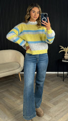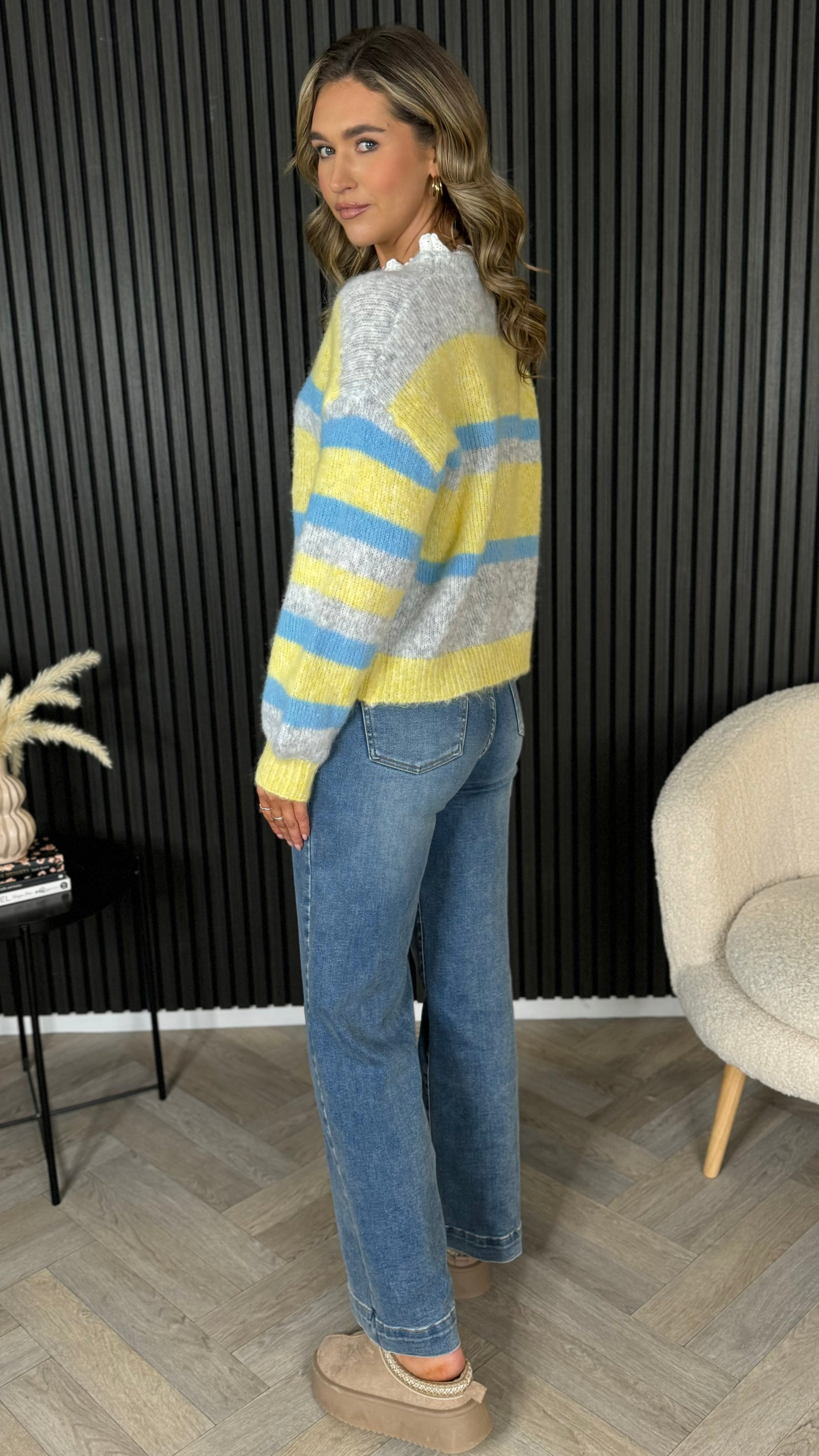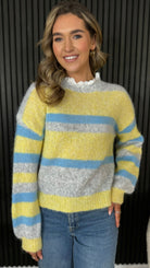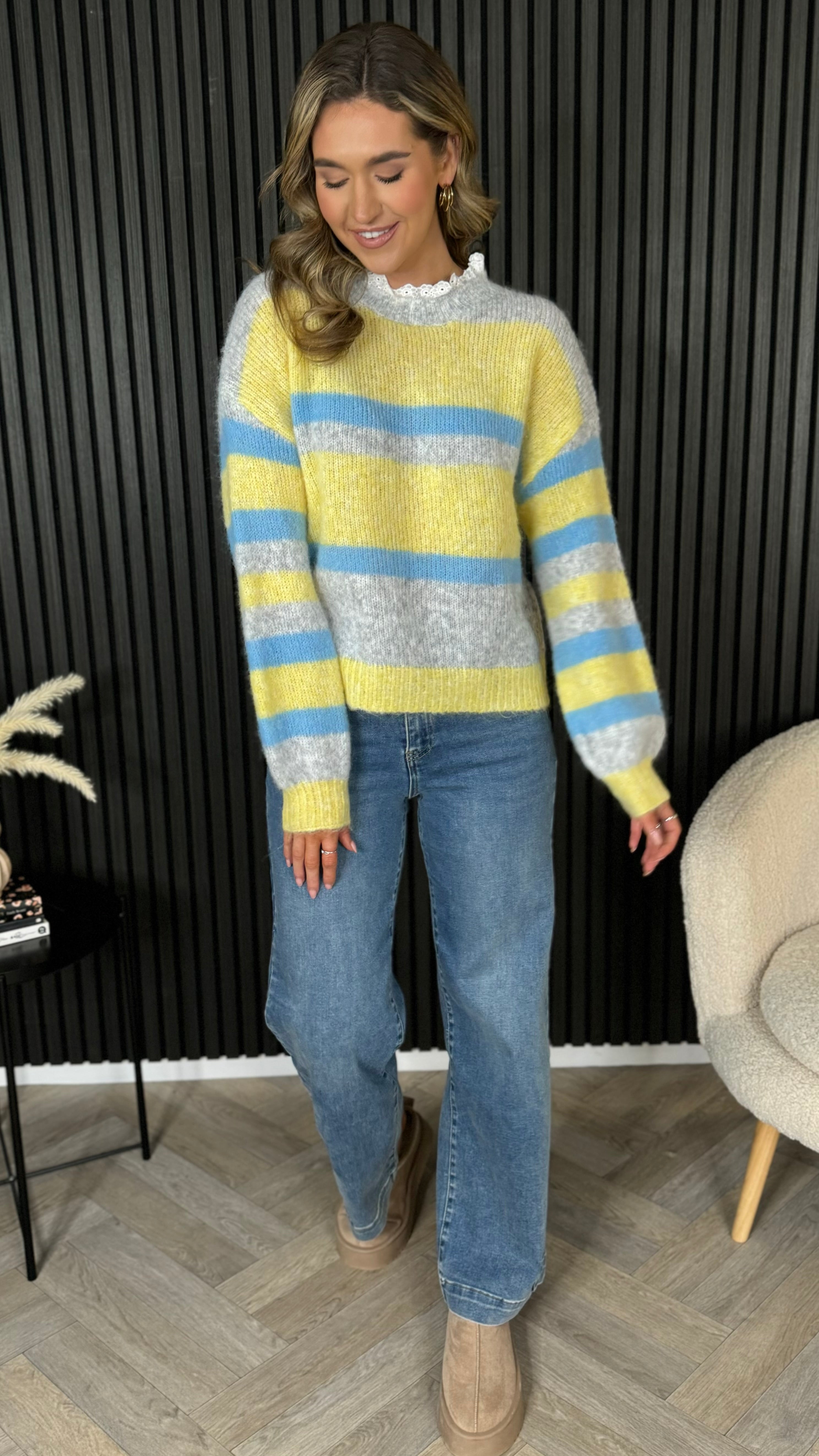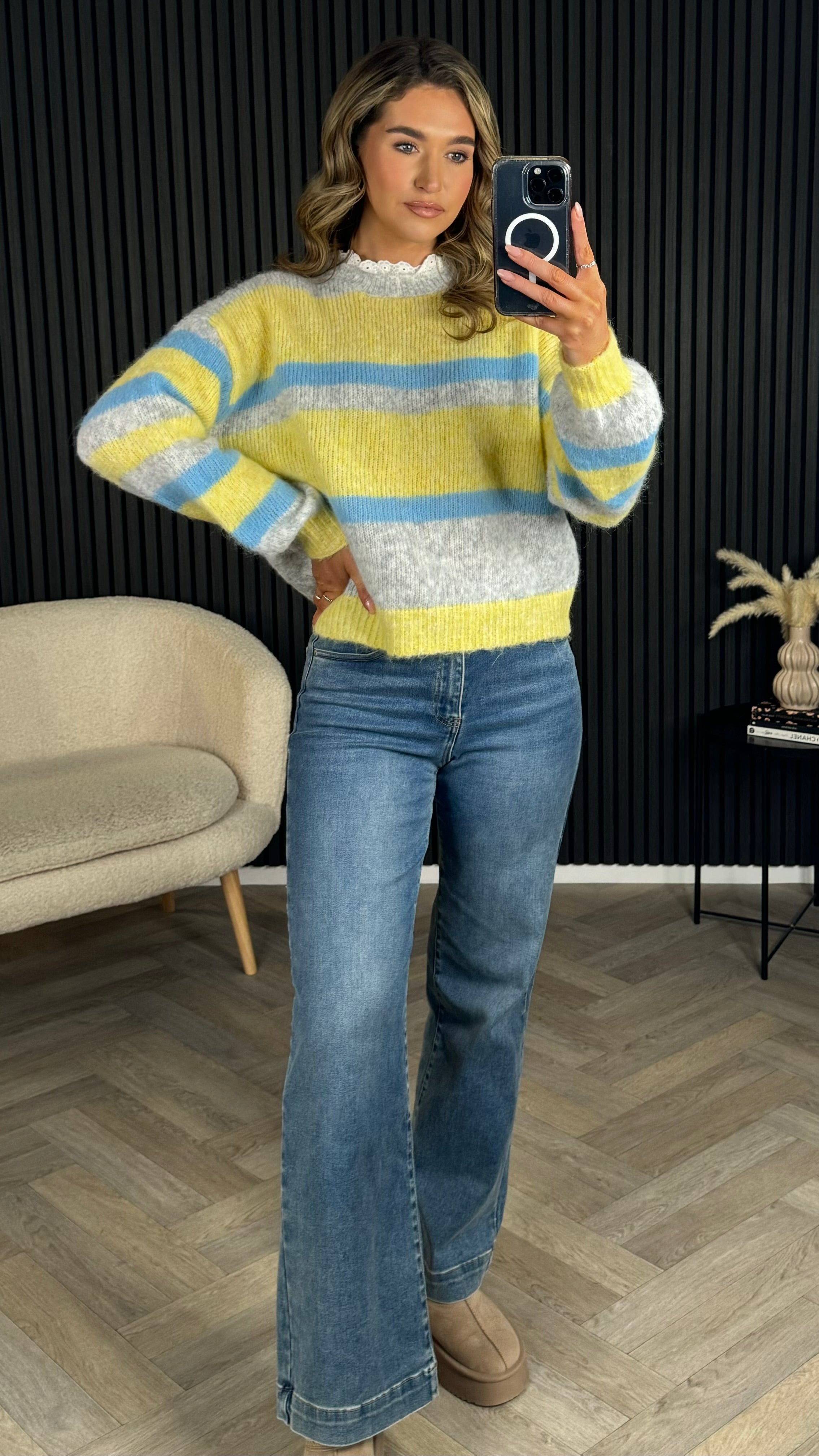Kirsty Blue & Yellow Lace Neck Stripe Jumper