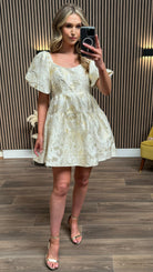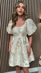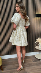 Laurina Gold & Beige Puff Sleeve Mini Dress