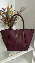Add a touch of chic with the Leelah Burgundy Tote Bag, featuring a stylish gold clasp detail that catches the eye. Switch up your look effortlessly with its optional longer strap, perfect for hands-free days or a quick style upgrade. Compact yet roomy, it’s your go-to companion for all-day adventures.