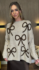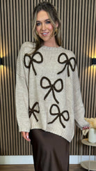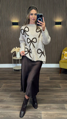 Leigh-Anne Beige & Brown Bow Design Jumper