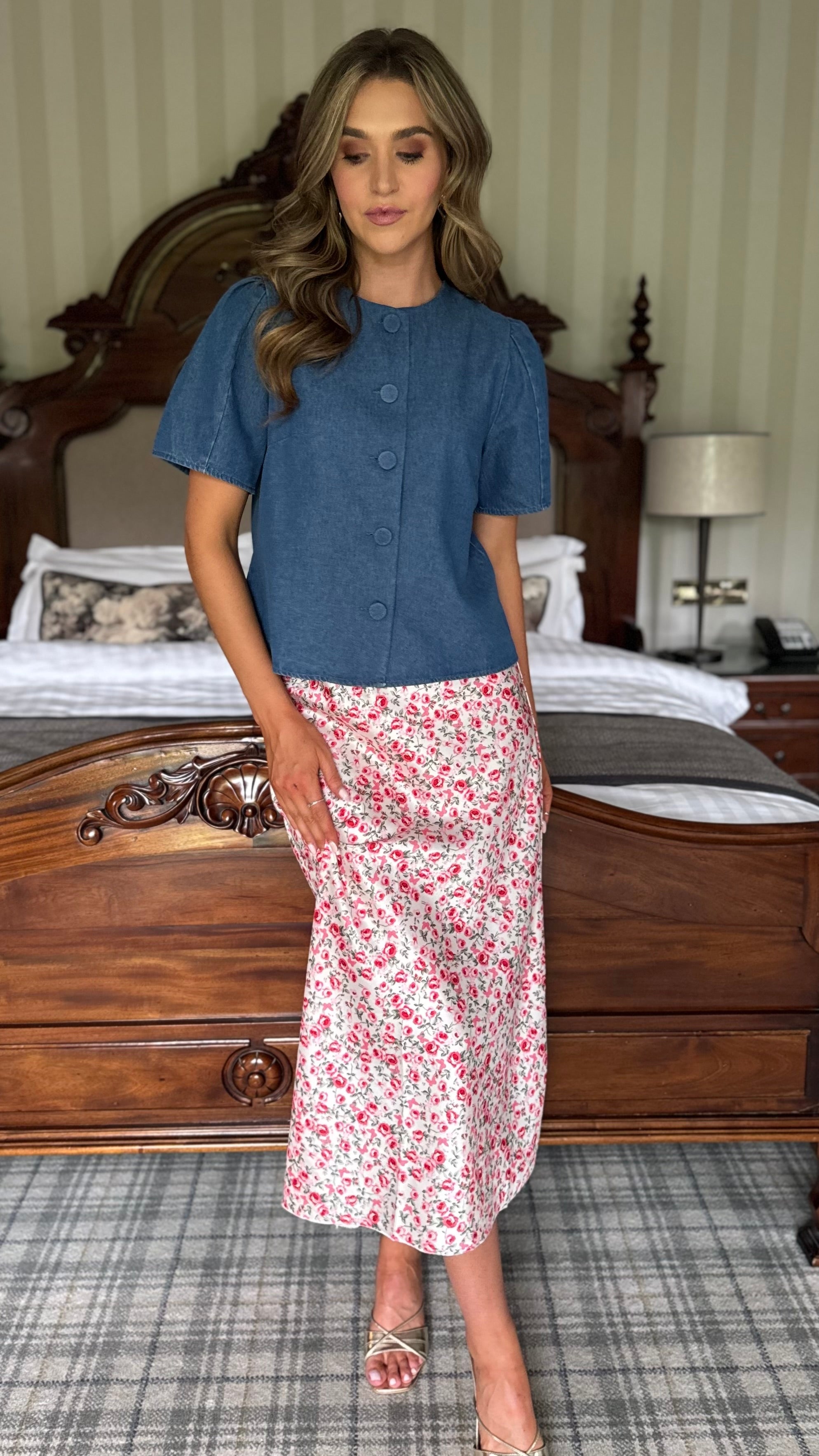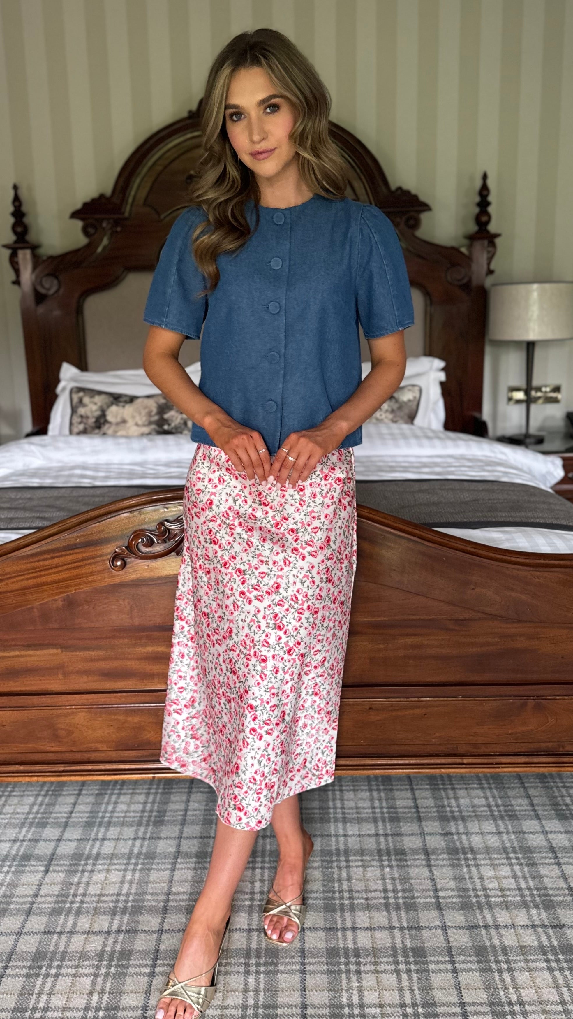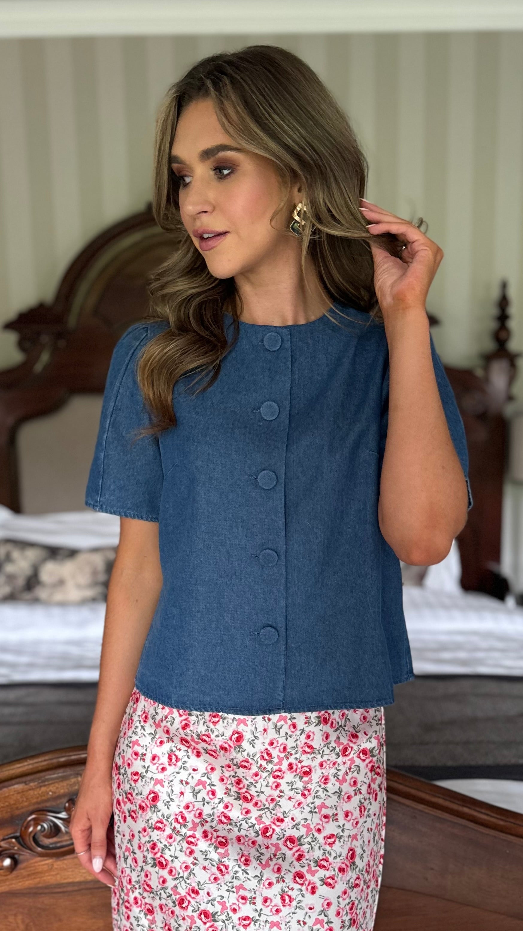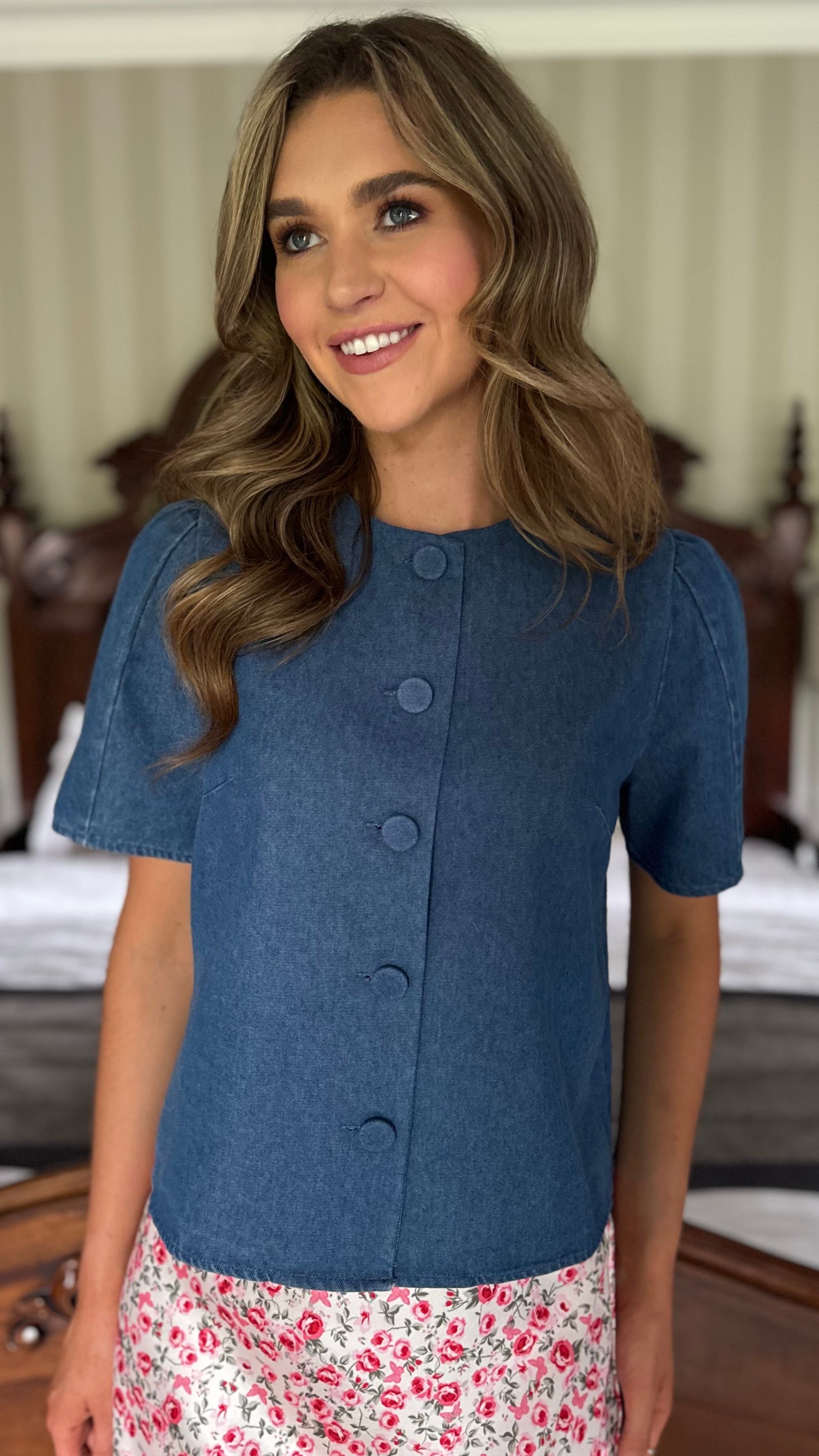 Discover refined style with the Leighton Denim Short Sleeve Button Up Top 👔. Made from high-quality denim, this elegant piece features a sleek button-up design and short sleeves for a polished yet relaxed look. Perfect for elevating your everyday wardrobe with a touch of sophistication and comfort.✨