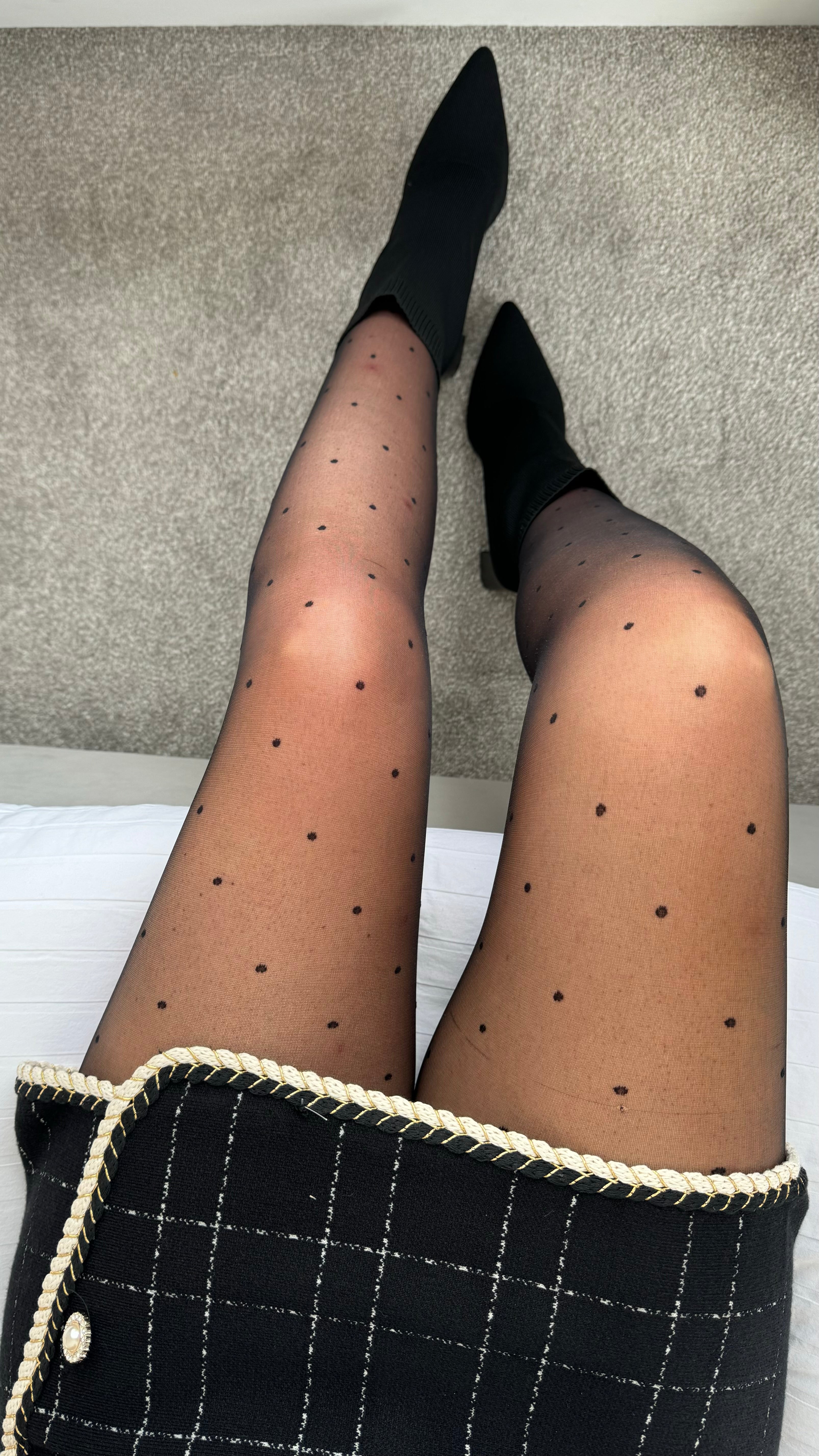 Start your night off sassily with these Liana Polka Dot 20 Denier Black Tights! Sleek and stylish, the dotted design brings a subtle sprinkling of pizzazz to any OOTD! Plus, you get long-lasting quality as these tights feature a 20 Denier fabric. Prepare to be dot-ingly handsome!