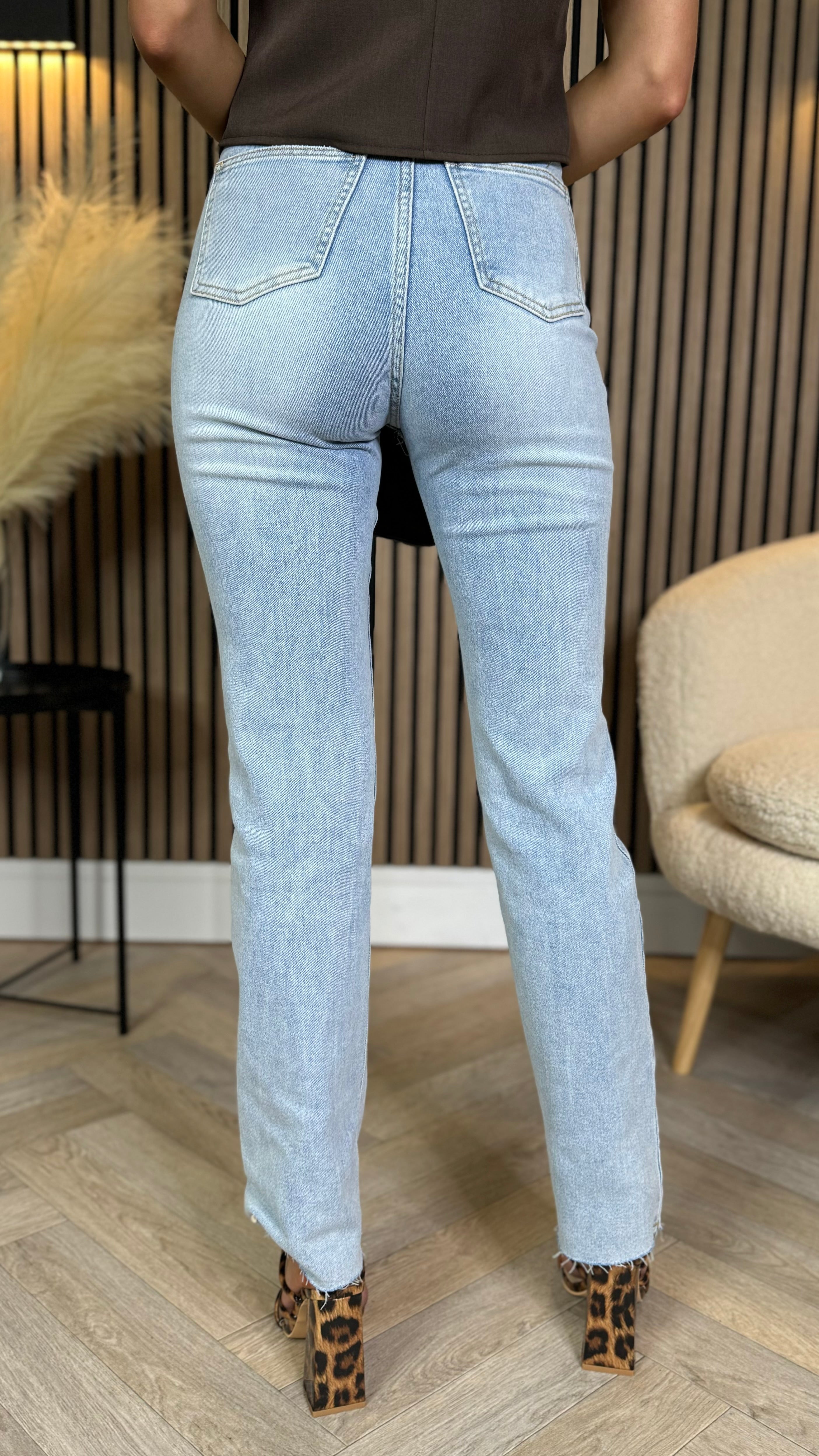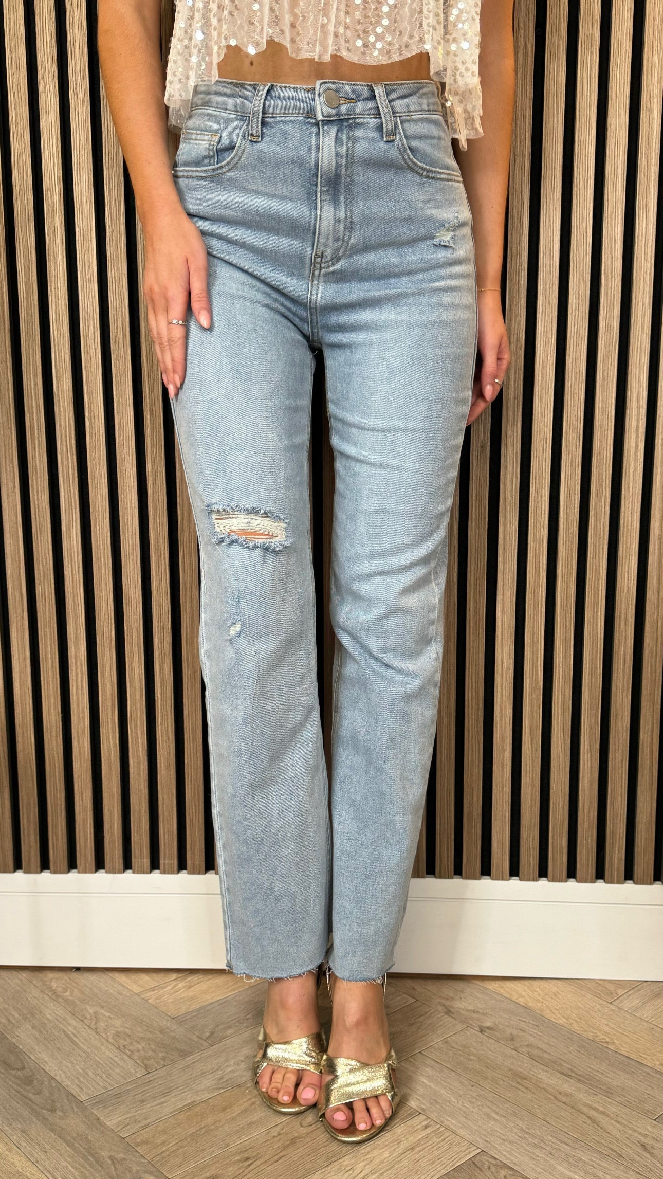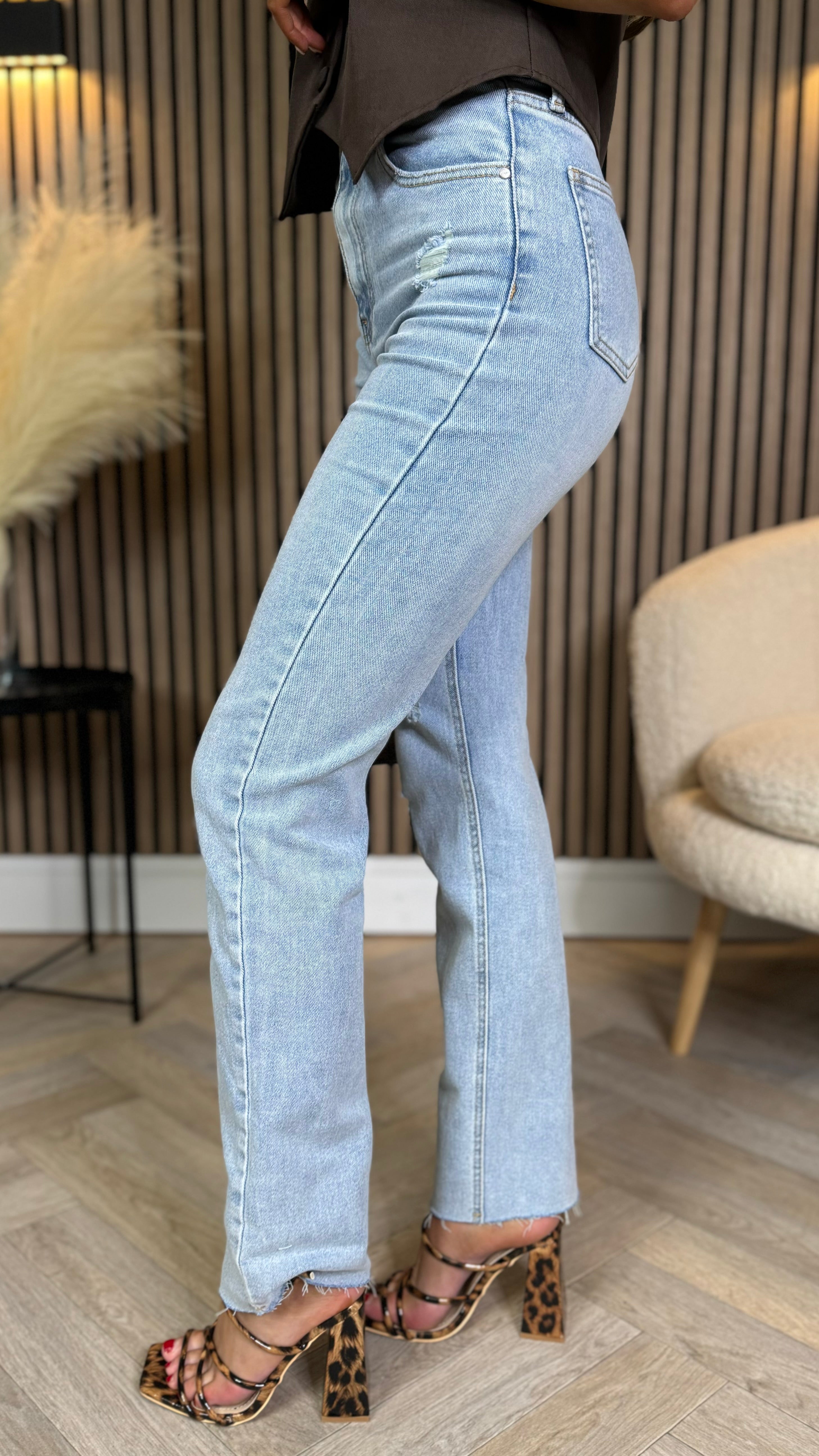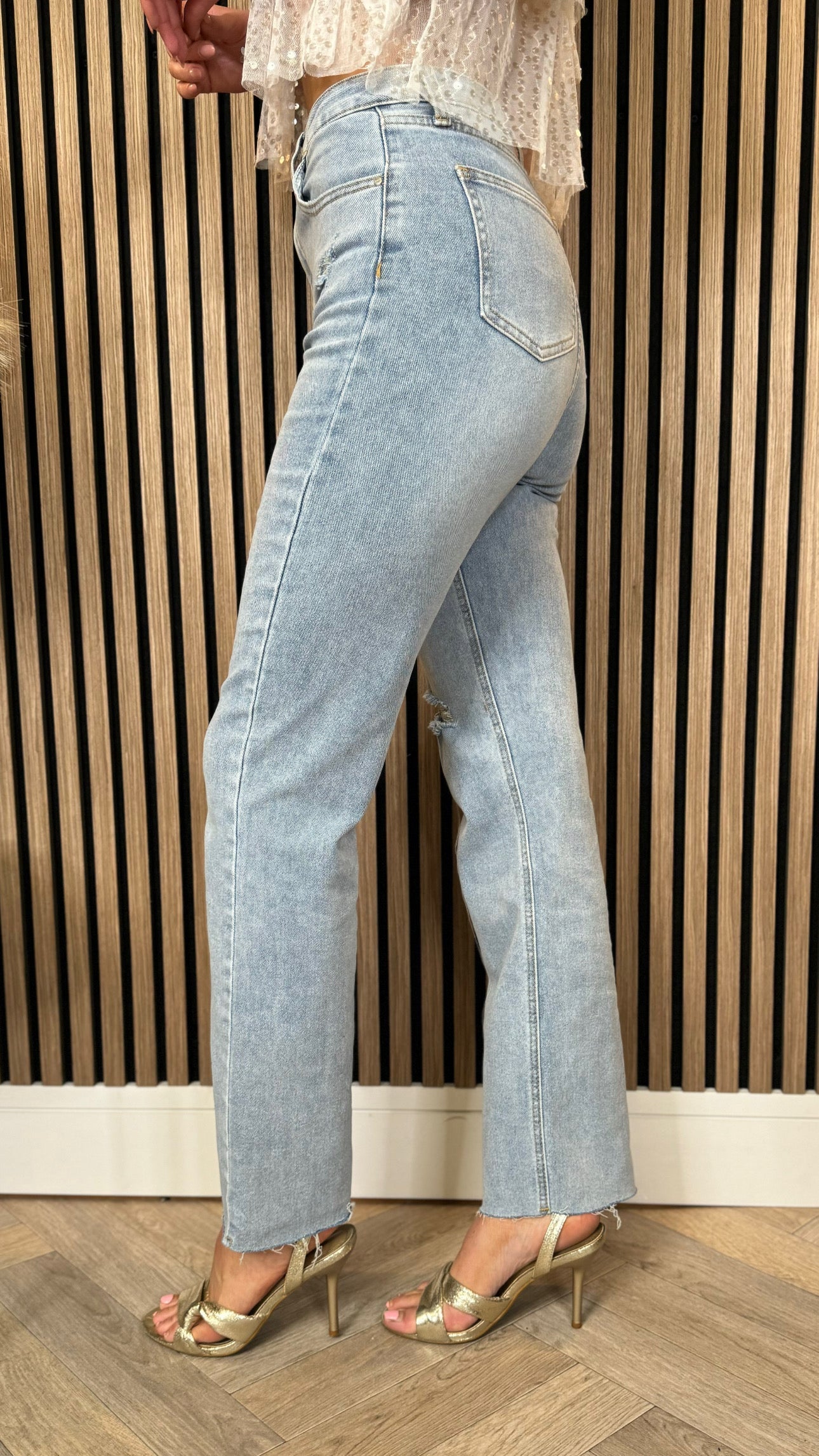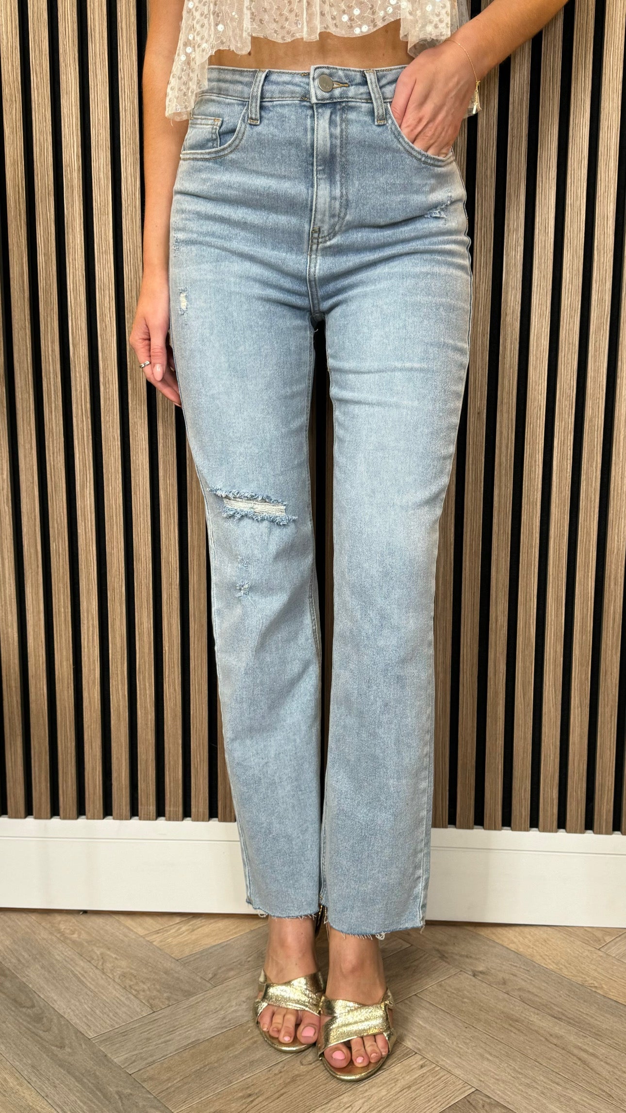 Lincoln Blue Ripped Detail Raw Hem Jeans