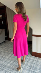 Lira Pink Bow Detail Short Sleeve Midi Dress